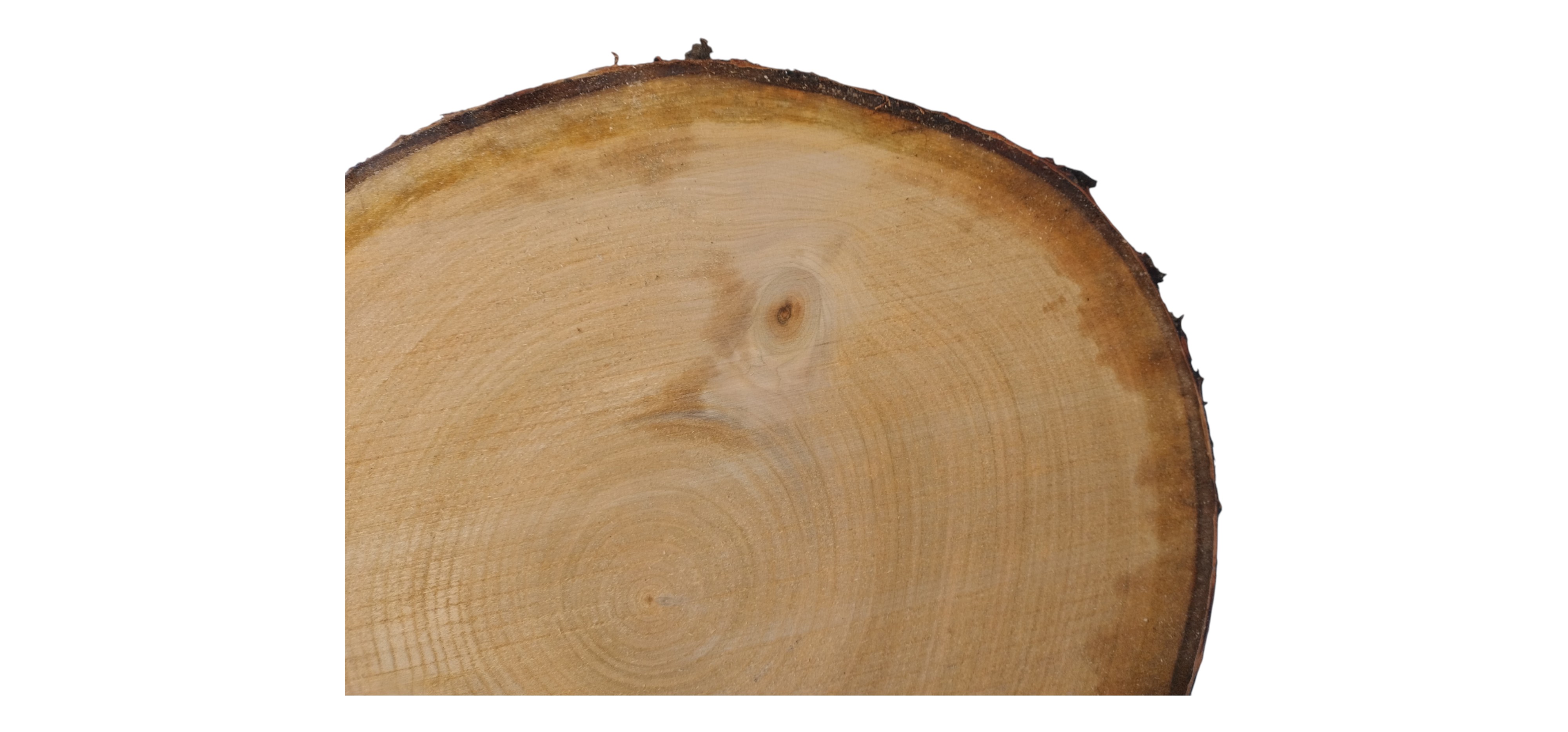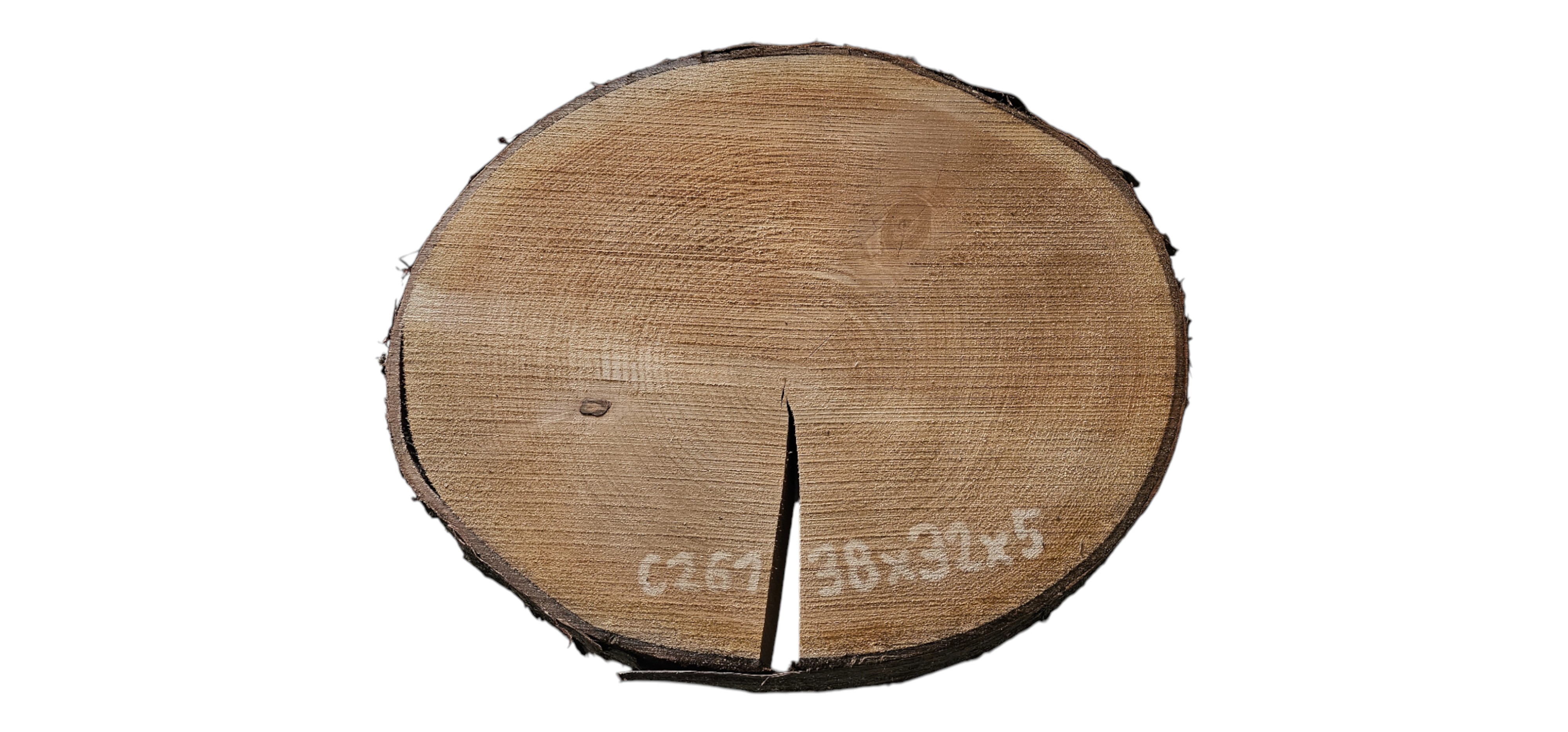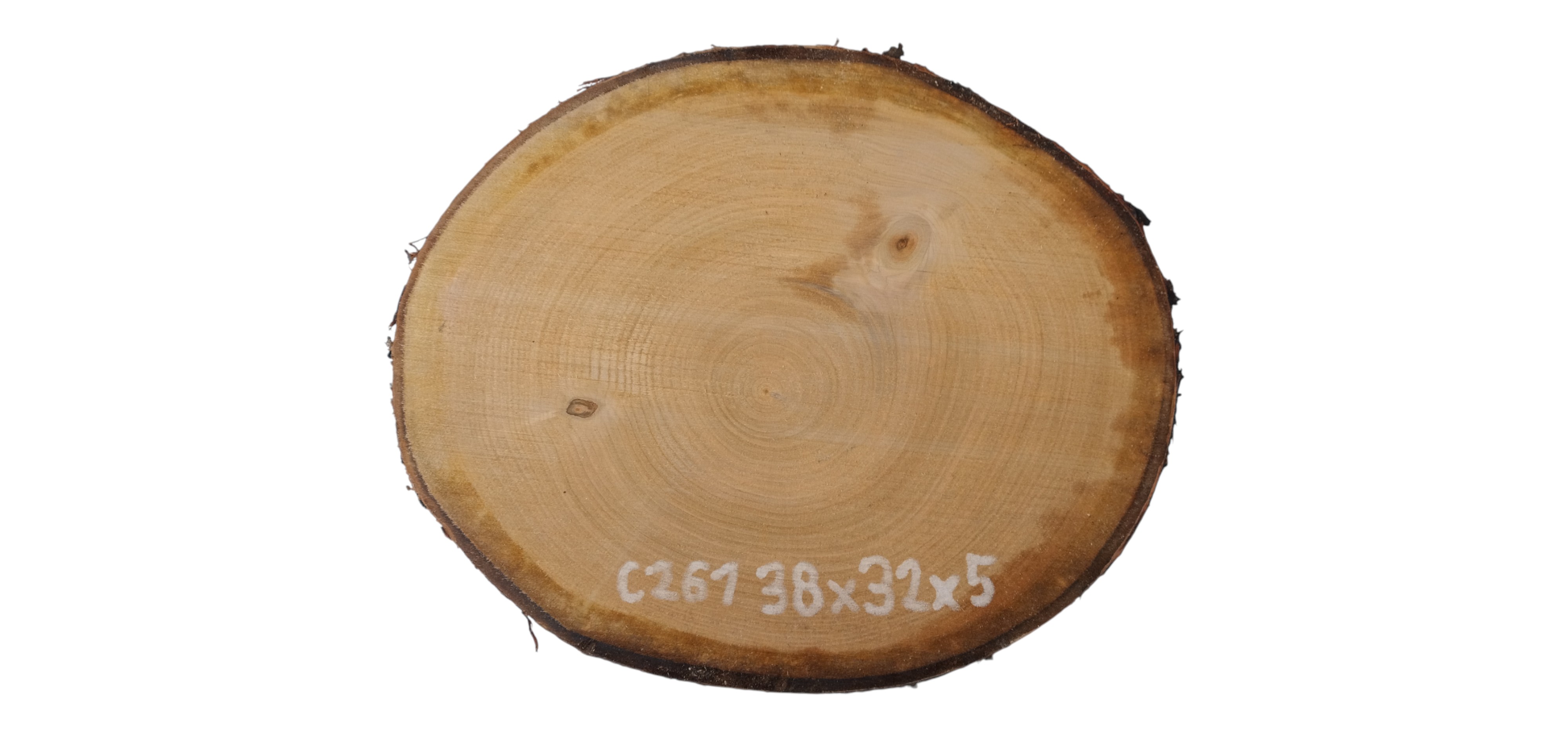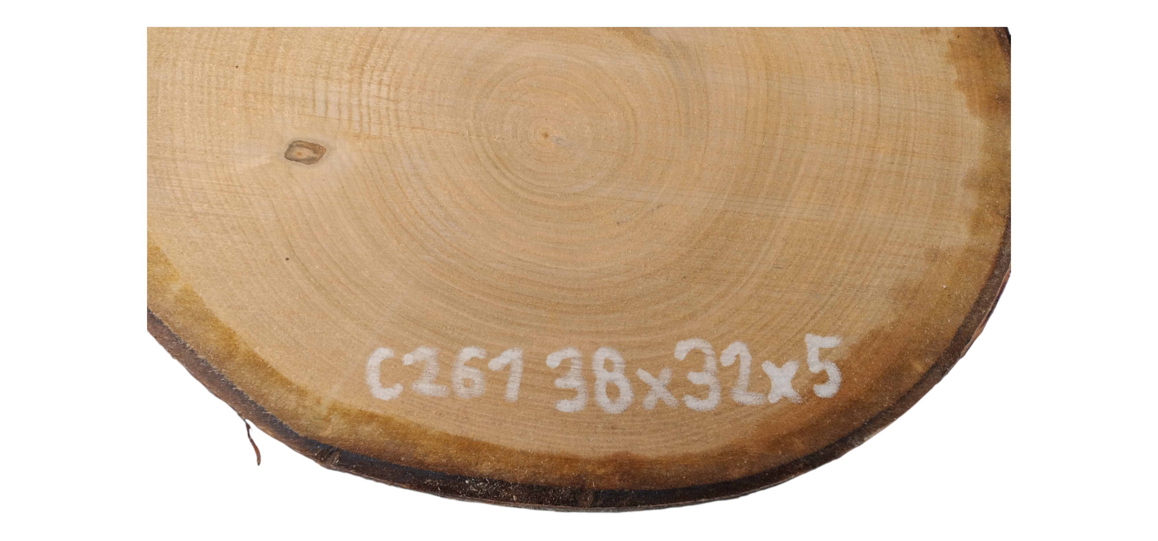 Zdjęcia robimy od razu po przecięciu, żeby jak najlepiej pokazać w jaki sposób można wyprowadzić plaster i podkreślić jego strukturę. W procesie suszenia naturalną rzeczą są pęknięcia materiału powstałe w skutek oddawania wilgoci oraz powierzchowna zmiana barwy. Zdjęcie nr 2 w galerii przedstawia stan plastra z grudnia 2025 – wtedy została zmierzona podana wilgotność.