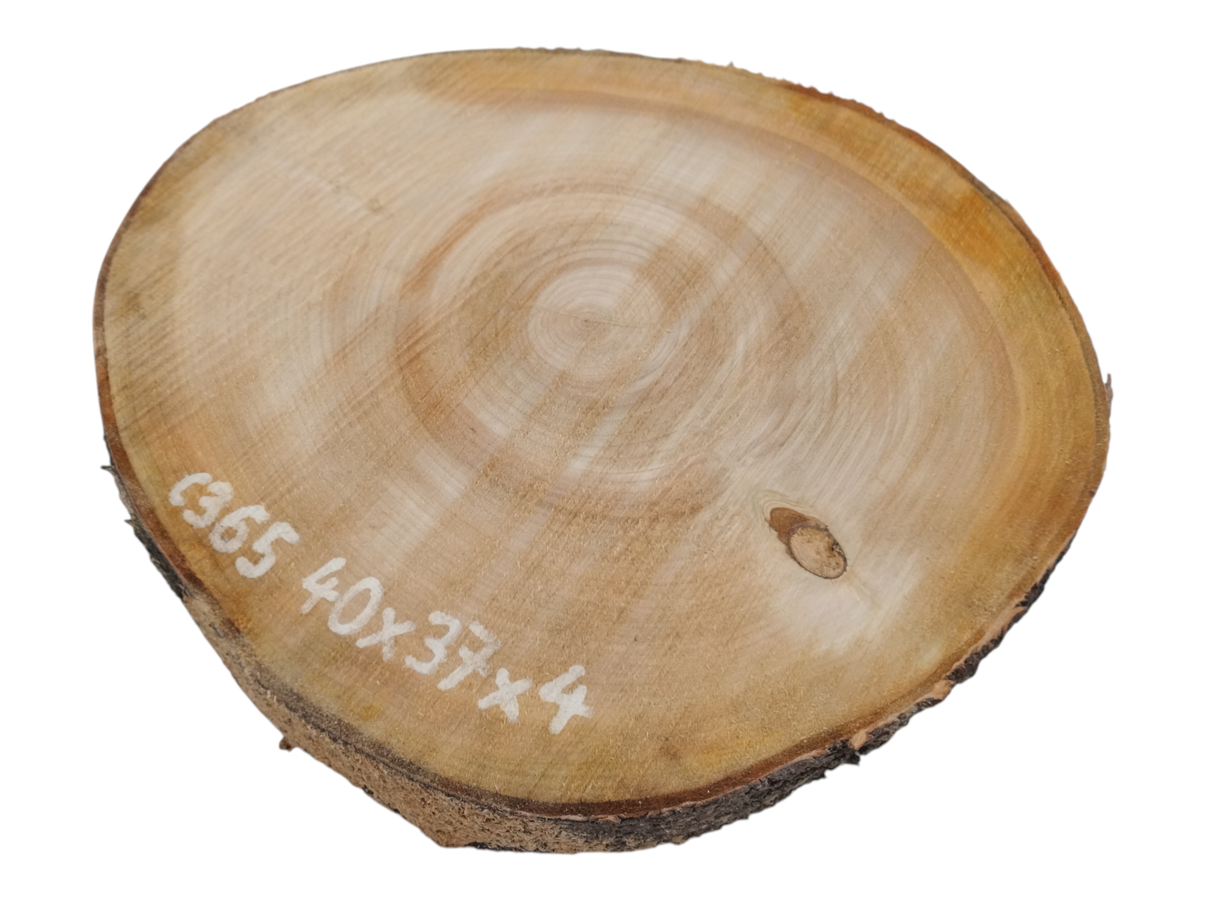 Zdjęcia robimy od razu po przecięciu, żeby jak najlepiej pokazać w jaki sposób można wyprowadzić plaster i podkreślić jego strukturę. W procesie suszenia naturalną rzeczą są pęknięcia materiału powstałe w skutek oddawania wilgoci oraz powierzchowna zmiana barwy. Zdjęcie nr 2 w galerii przedstawia stan plastra z lutego 2026 – wtedy została zmierzona podana wilgotność.