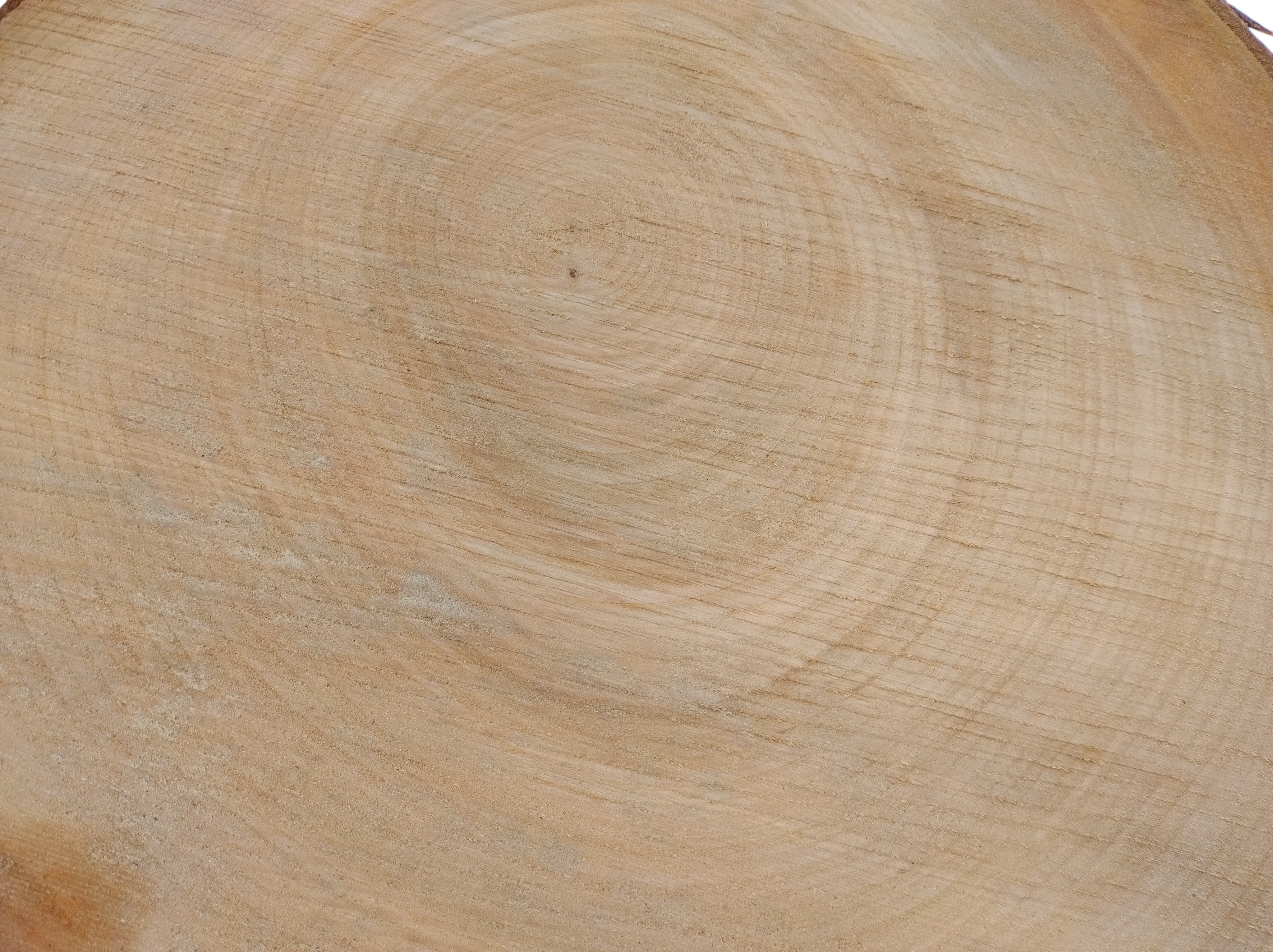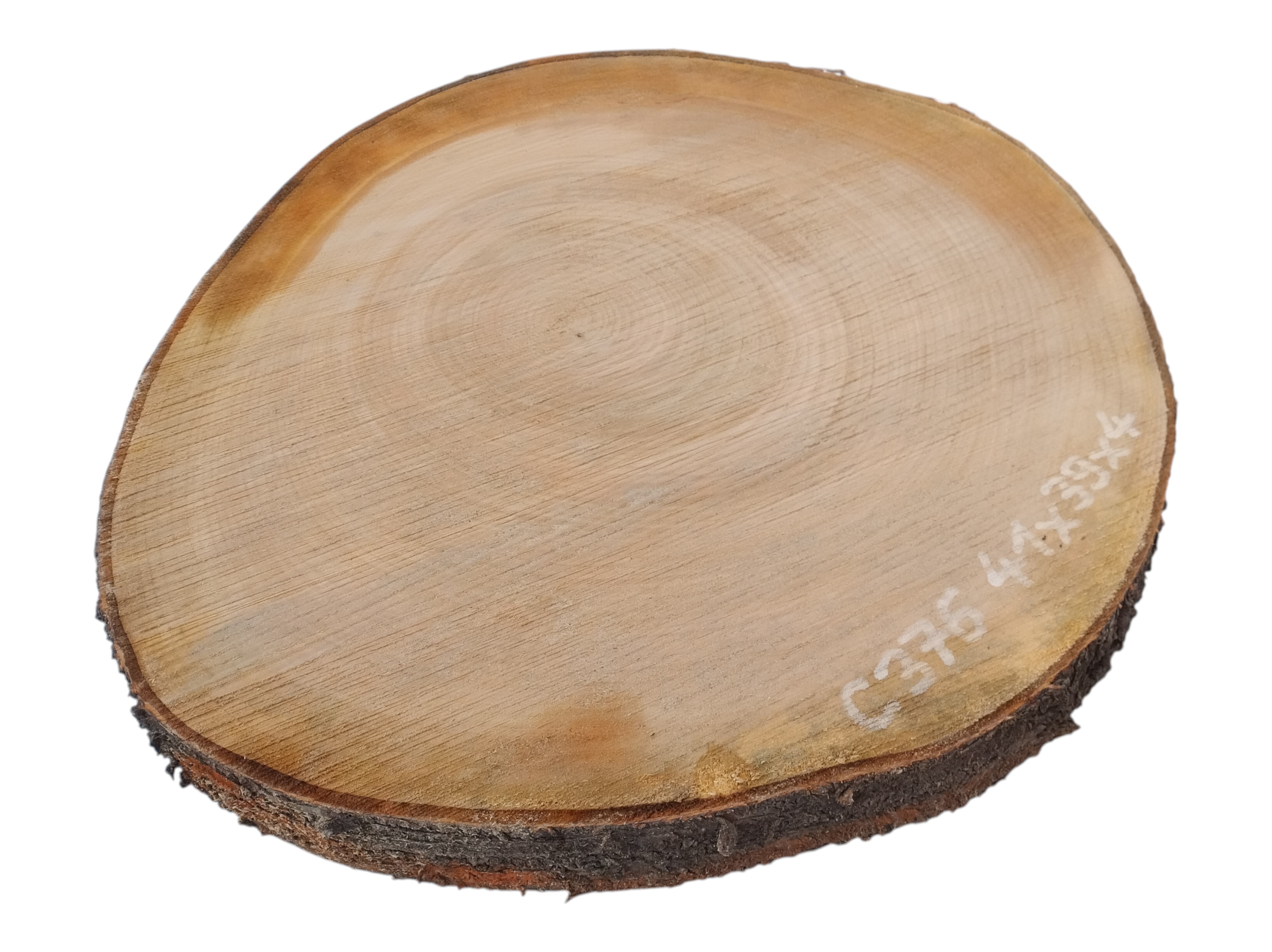 Zdjęcia robimy od razu po przecięciu, żeby jak najlepiej pokazać w jaki sposób można wyprowadzić plaster i podkreślić jego strukturę. W procesie suszenia naturalną rzeczą są pęknięcia materiału powstałe w skutek oddawania wilgoci oraz powierzchowna zmiana barwy. Zdjęcie nr 2 w galerii przedstawia stan plastra z lutego 2026 – wtedy została zmierzona podana wilgotność.