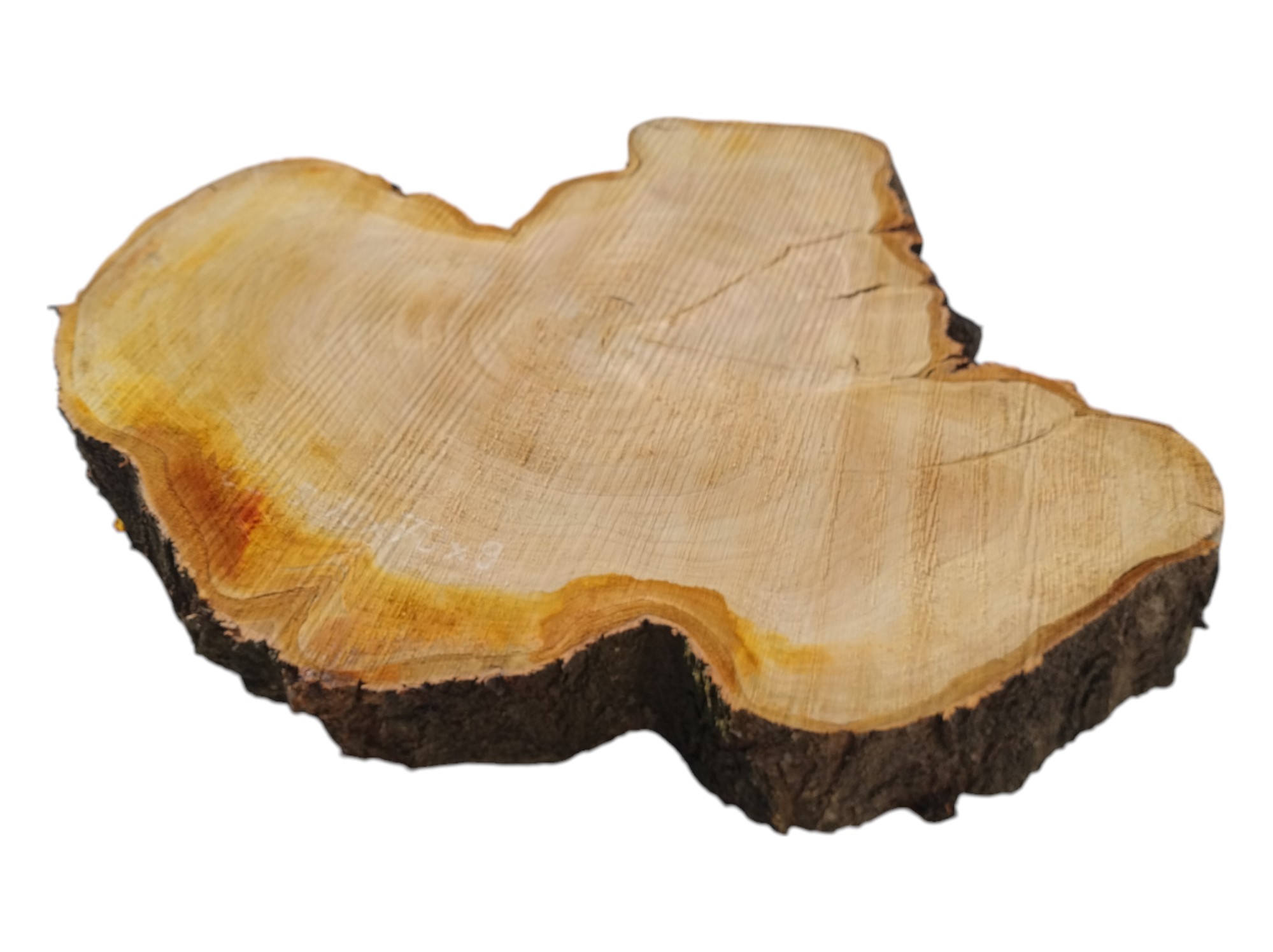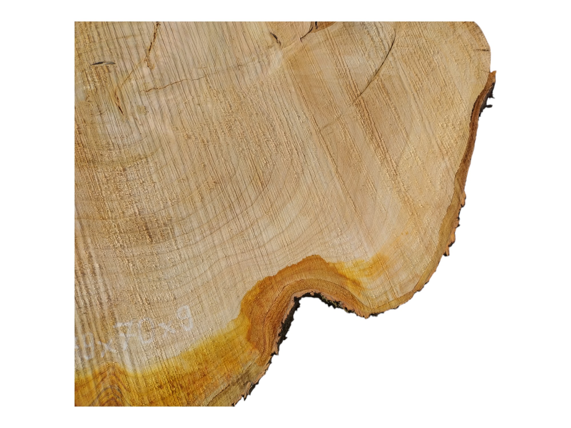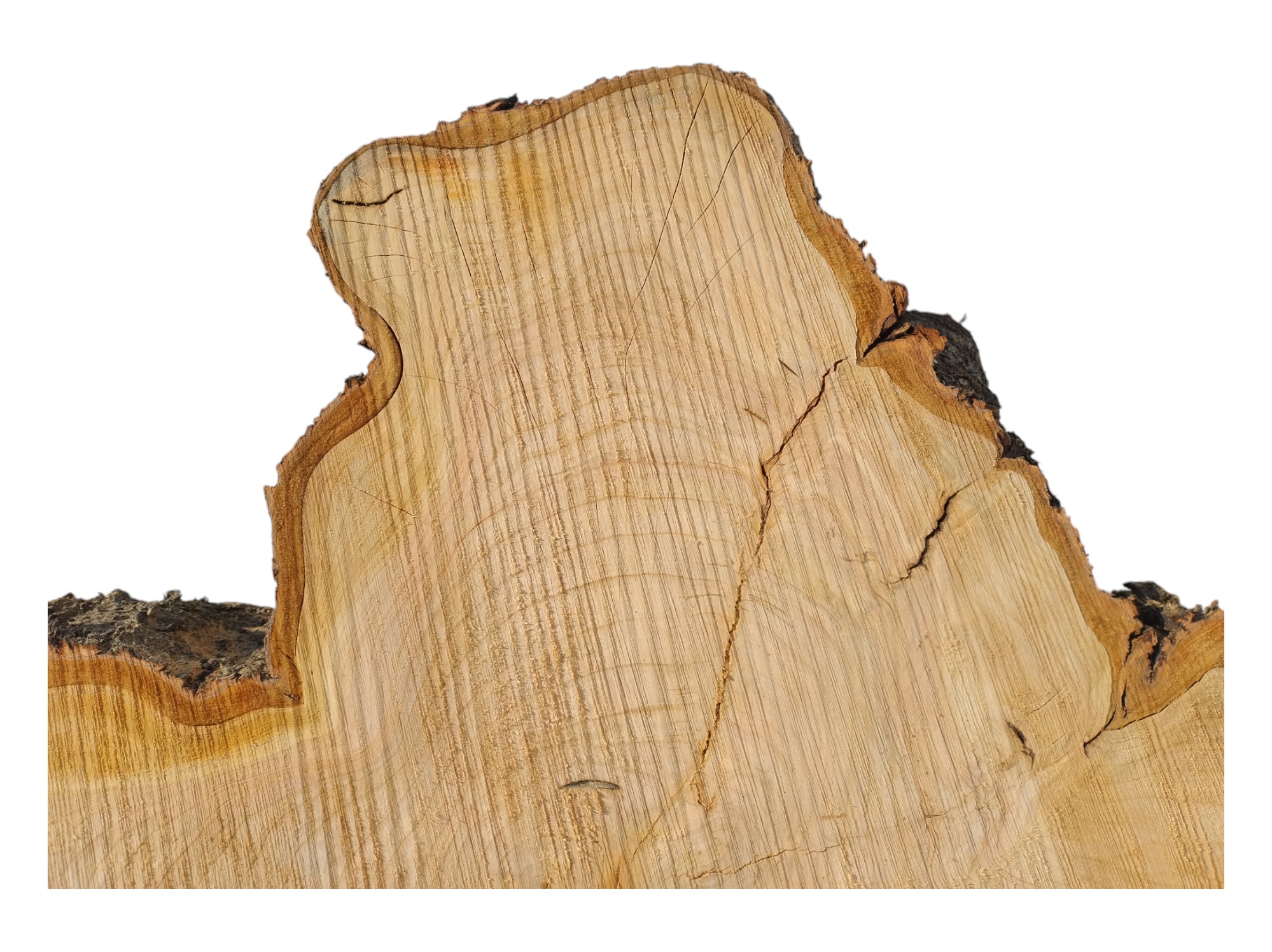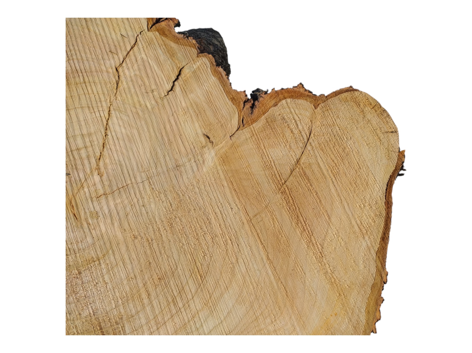 Zdjęcia robimy od razu po przecięciu, żeby jak najlepiej pokazać w jaki sposób można wyprowadzić plaster i podkreślić jego strukturę. W procesie suszenia naturalną rzeczą są pęknięcia materiału powstałe w skutek oddawania wilgoci oraz powierzchowna zmiana barwy. Zdjęcie nr 2 w galerii prezentuje aktualny stan plastra - po wyjęciu z suszarni.