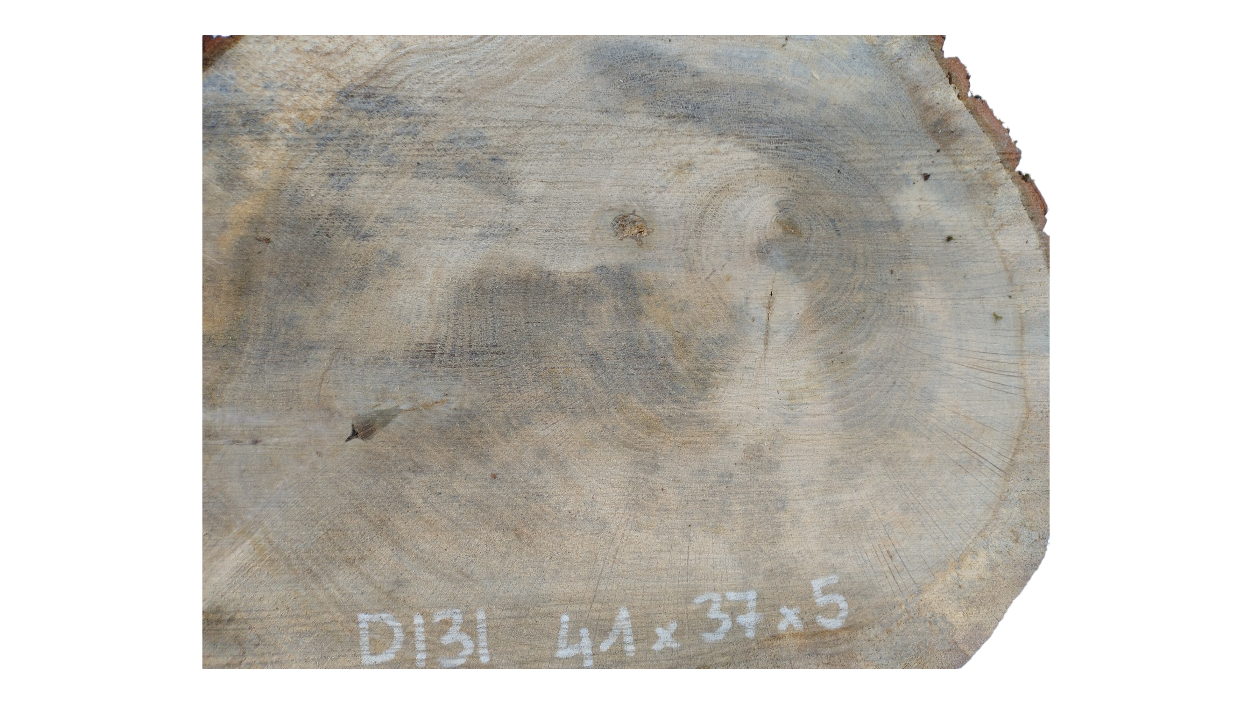 Zdjęcia robimy od razu po przecięciu, żeby jak najlepiej pokazać w jaki sposób można wyprowadzić plaster i podkreślić jego strukturę. W procesie suszenia naturalną rzeczą są pęknięcia materiału powstałe w skutek oddawania wilgoci oraz powierzchowna zmiana barwy. Zdjęcie nr 2 w galerii prezentuje stan plastra z lutego 2024 – wtedy również została zmierzona podana wilgotność.