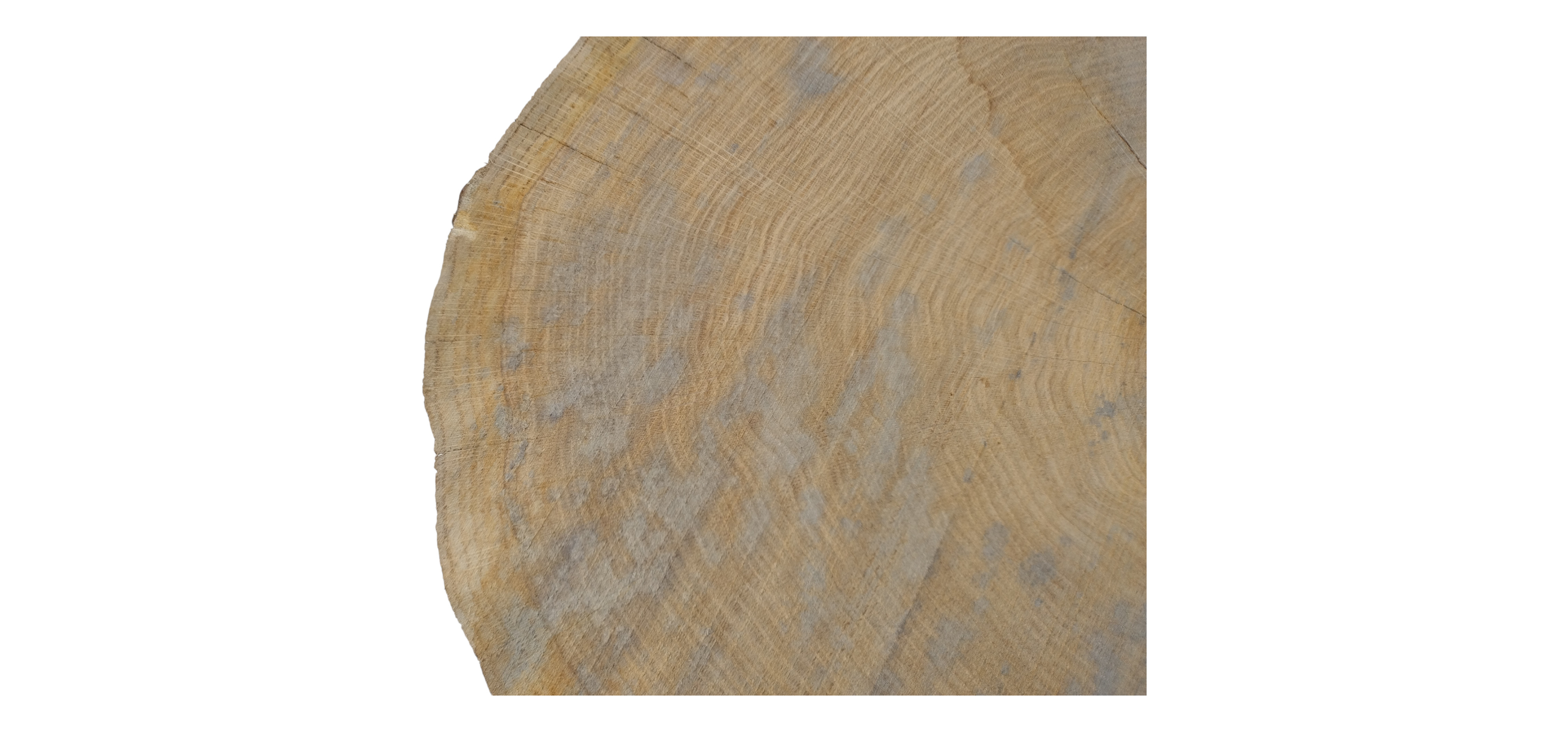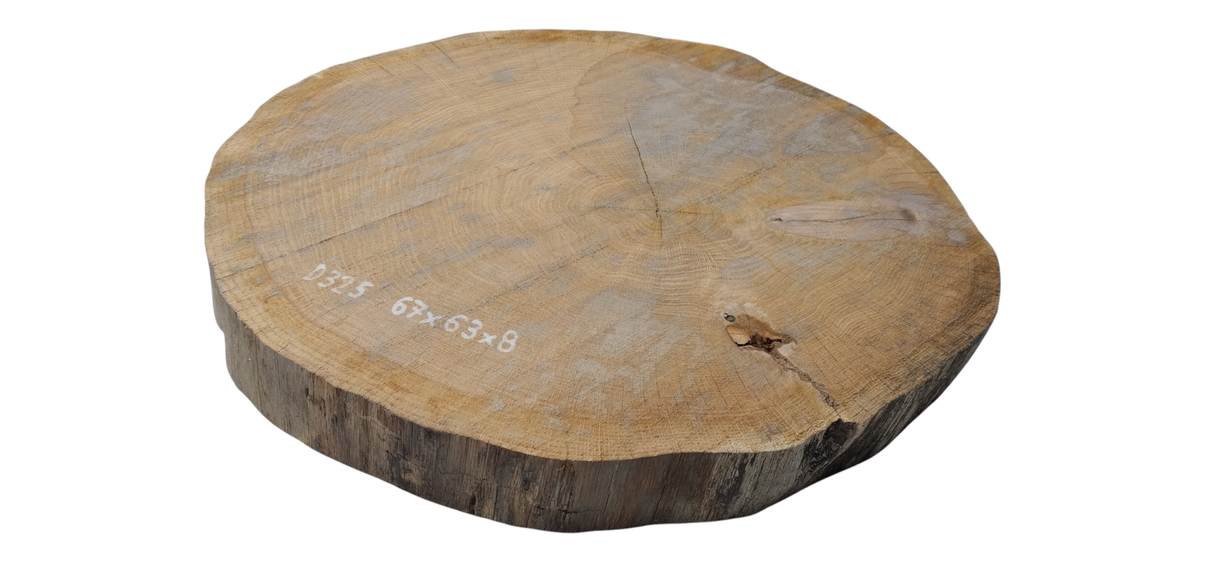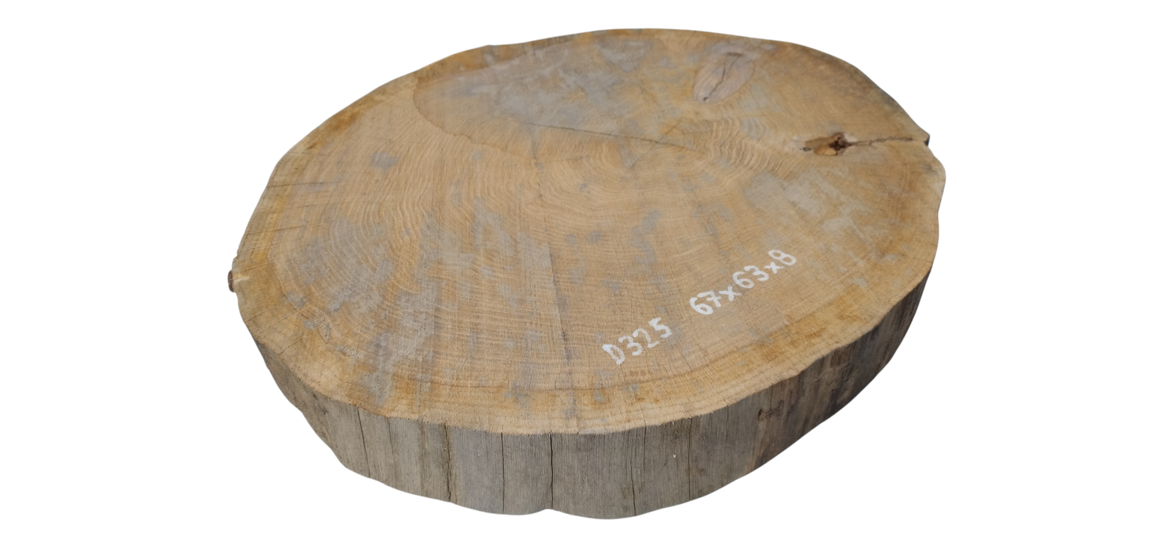 Zdjęcia robimy od razu po przecięciu, żeby jak najlepiej pokazać w jaki sposób można wyprowadzić plaster i podkreślić jego strukturę. W procesie suszenia naturalną rzeczą są pęknięcia materiału powstałe w skutek oddawania wilgoci oraz powierzchowna zmiana barwy. Zdjęcie nr 2 w galerii przedstawia stan plastra z grudnia 2025 – wtedy została zmierzona podana wilgotność.