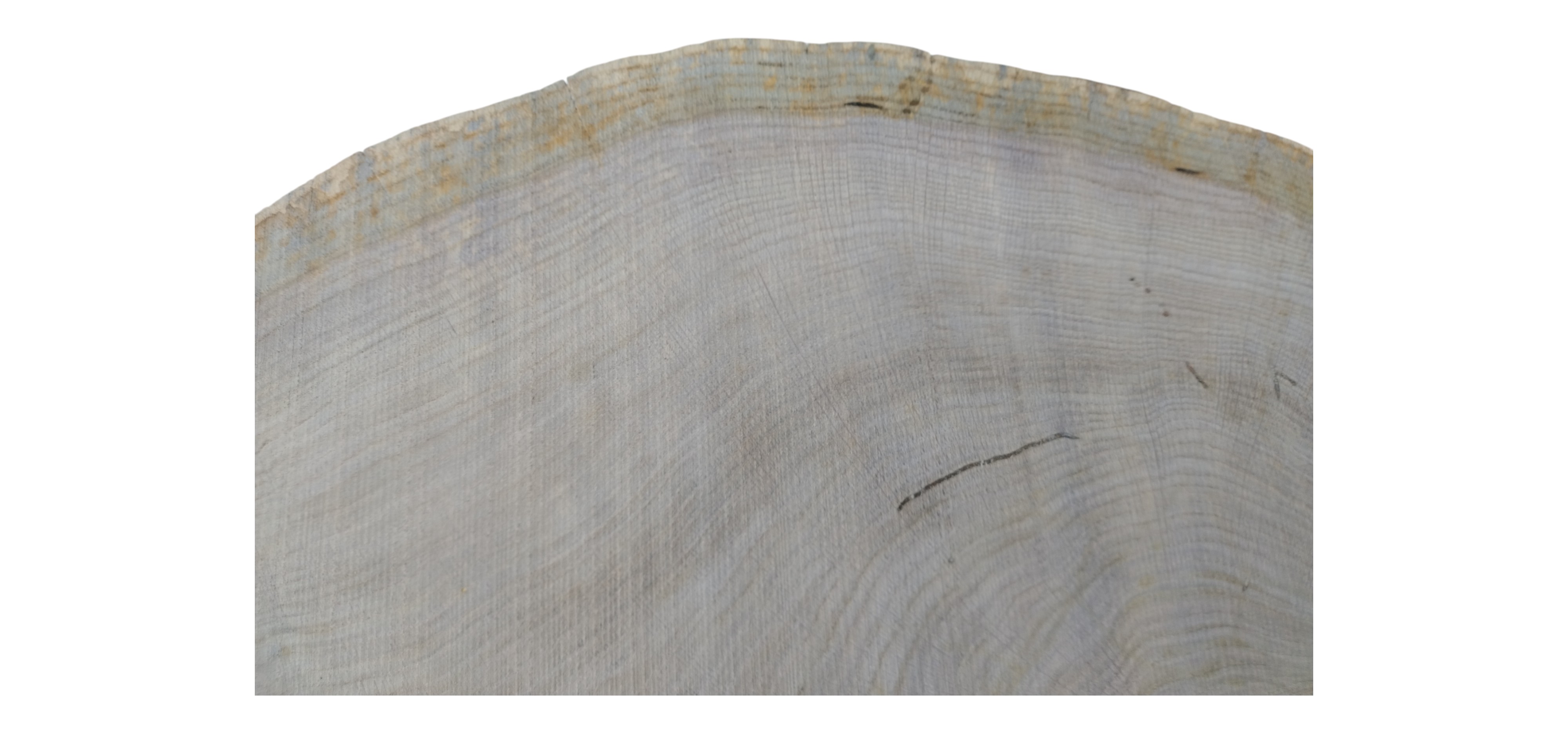Zdjęcia robimy od razu po przecięciu, żeby jak najlepiej pokazać w jaki sposób można wyprowadzić plaster i podkreślić jego strukturę. W procesie suszenia naturalną rzeczą są pęknięcia materiału powstałe w skutek oddawania wilgoci oraz powierzchowna zmiana barwy. Zdjęcie nr 2 w galerii przedstawia stan plastra z grudnia 2025 – wtedy została zmierzona podana wilgotność.