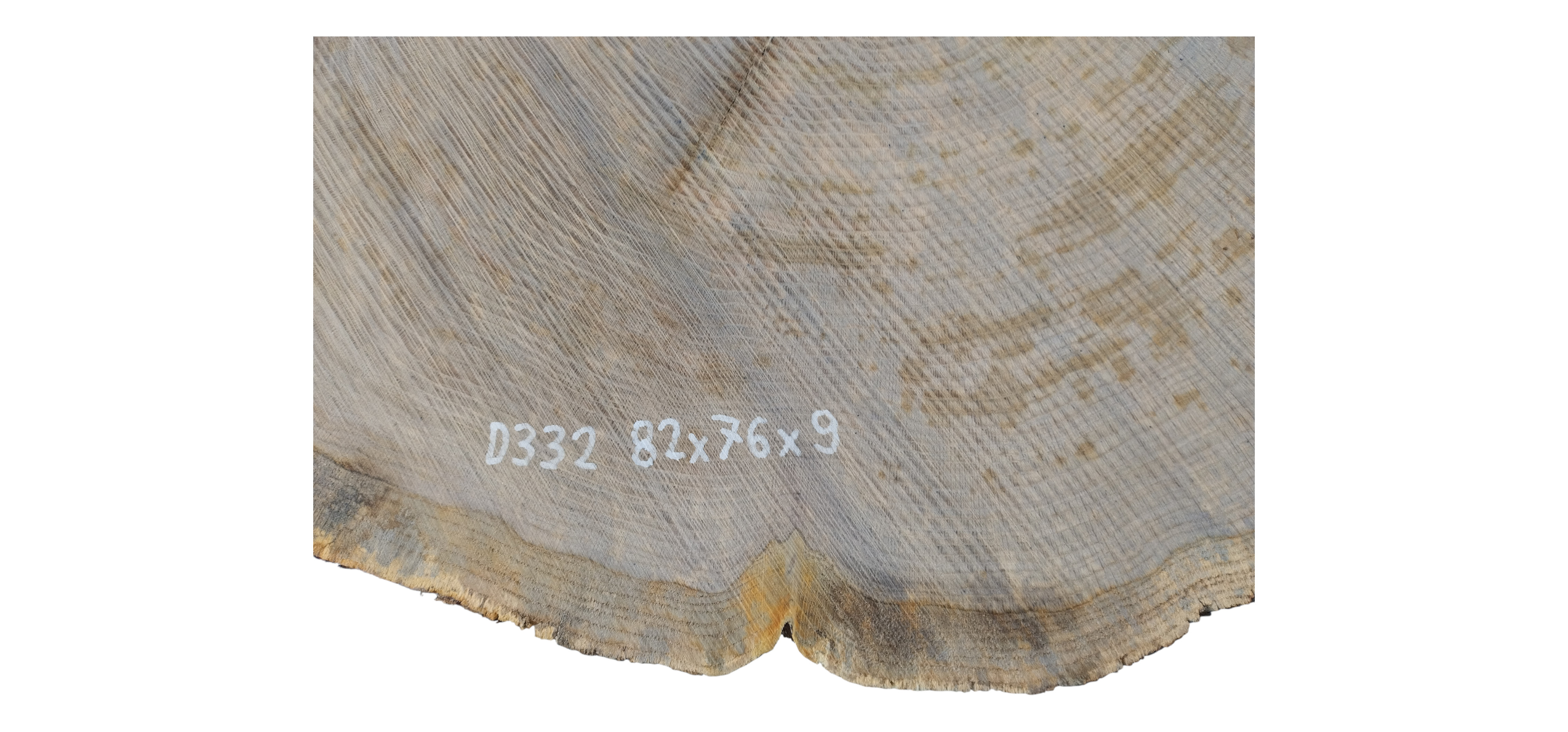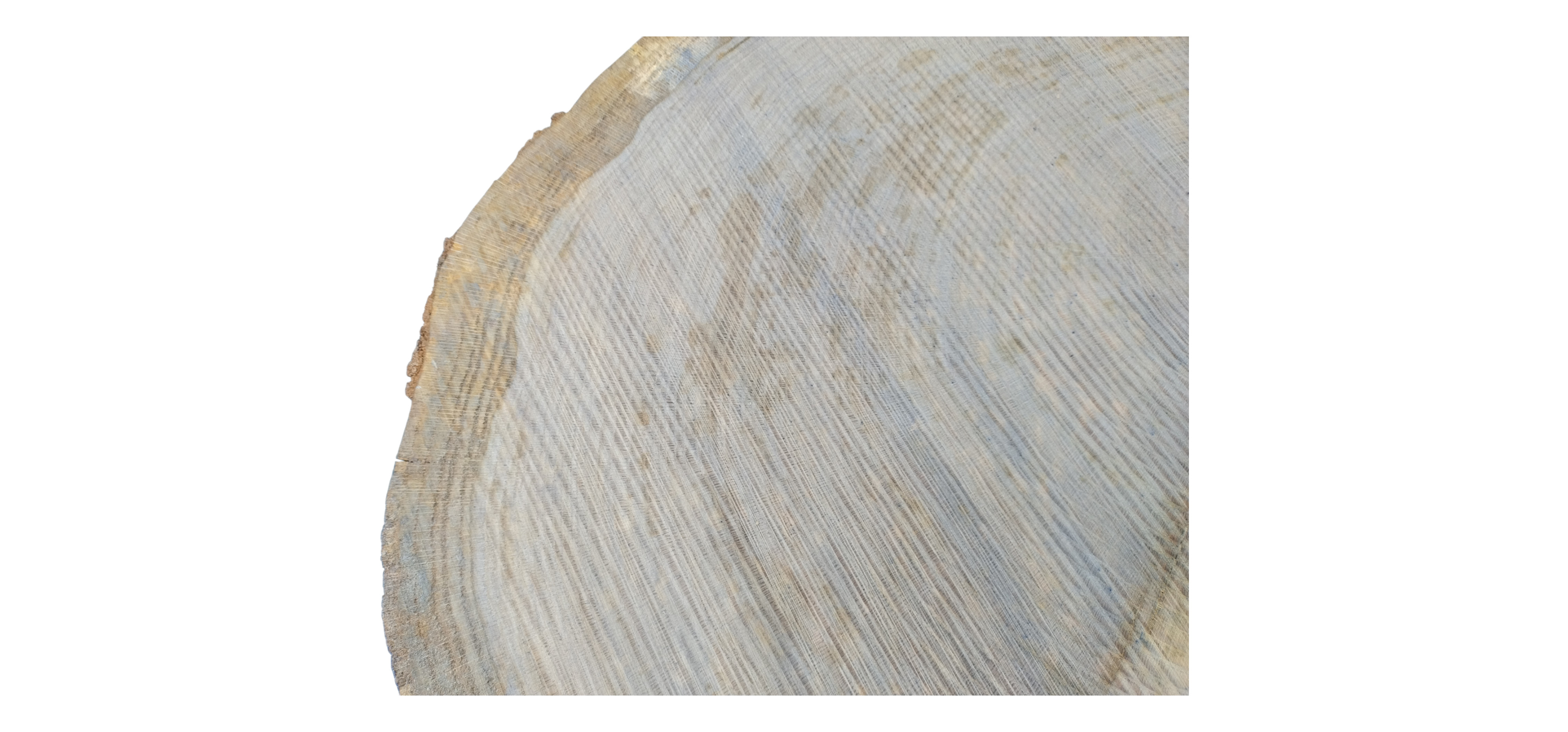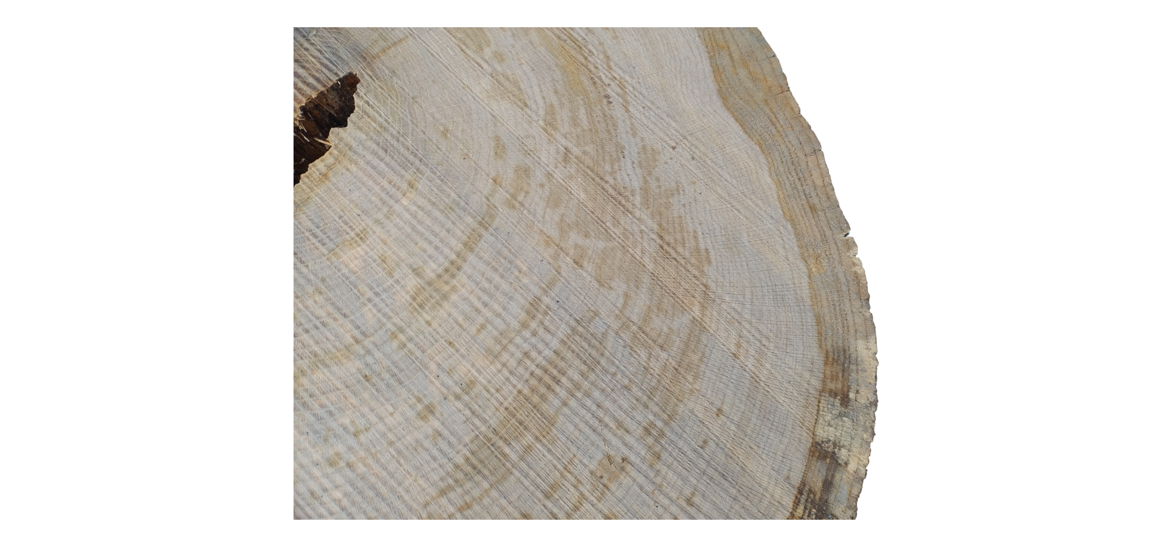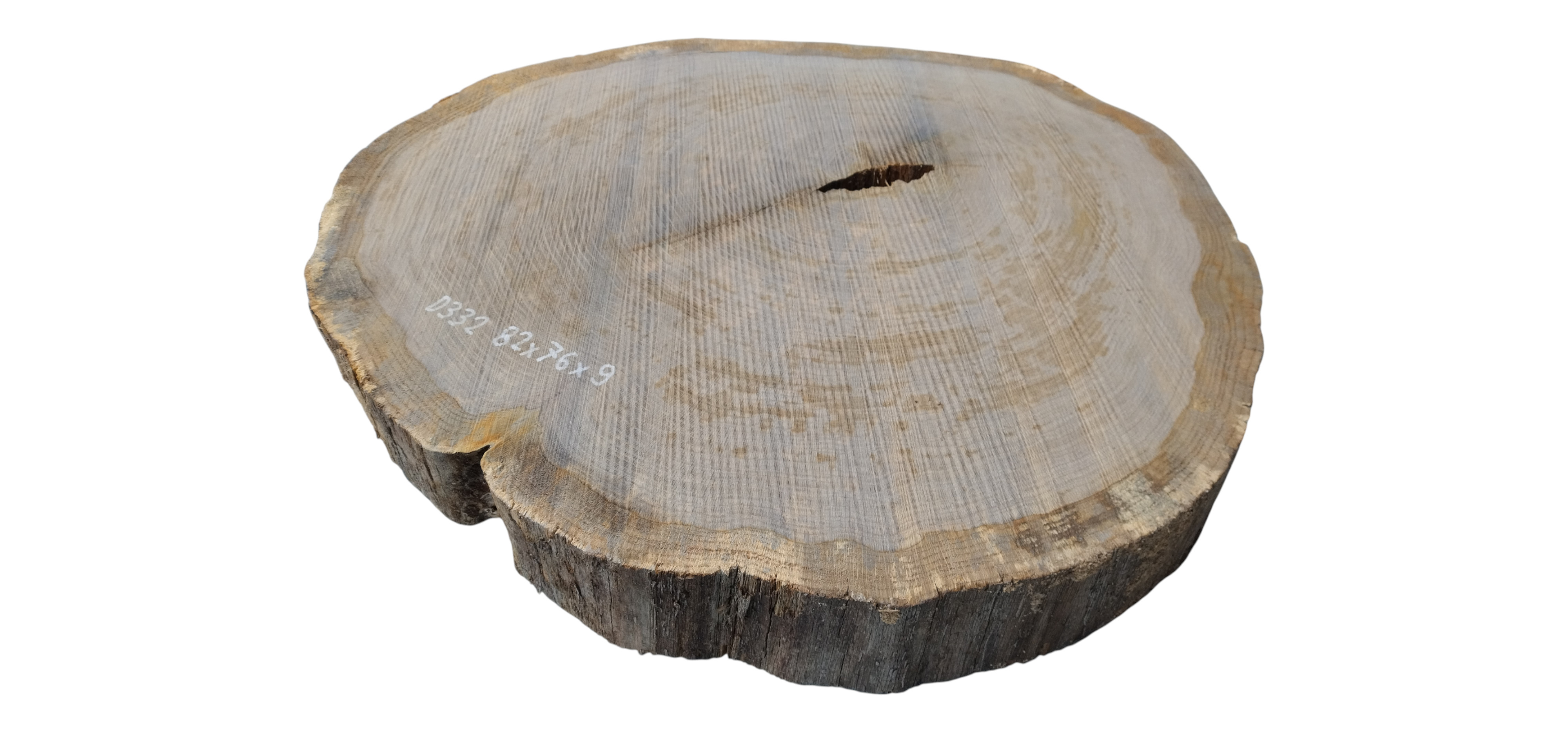 Zdjęcia robimy od razu po przecięciu, żeby jak najlepiej pokazać w jaki sposób można wyprowadzić plaster i podkreślić jego strukturę. W procesie suszenia naturalną rzeczą są pęknięcia materiału powstałe w skutek oddawania wilgoci oraz powierzchowna zmiana barwy. Zdjęcie nr 2 w galerii przedstawia stan plastra z grudnia 2025 – wtedy została zmierzona podana wilgotność.