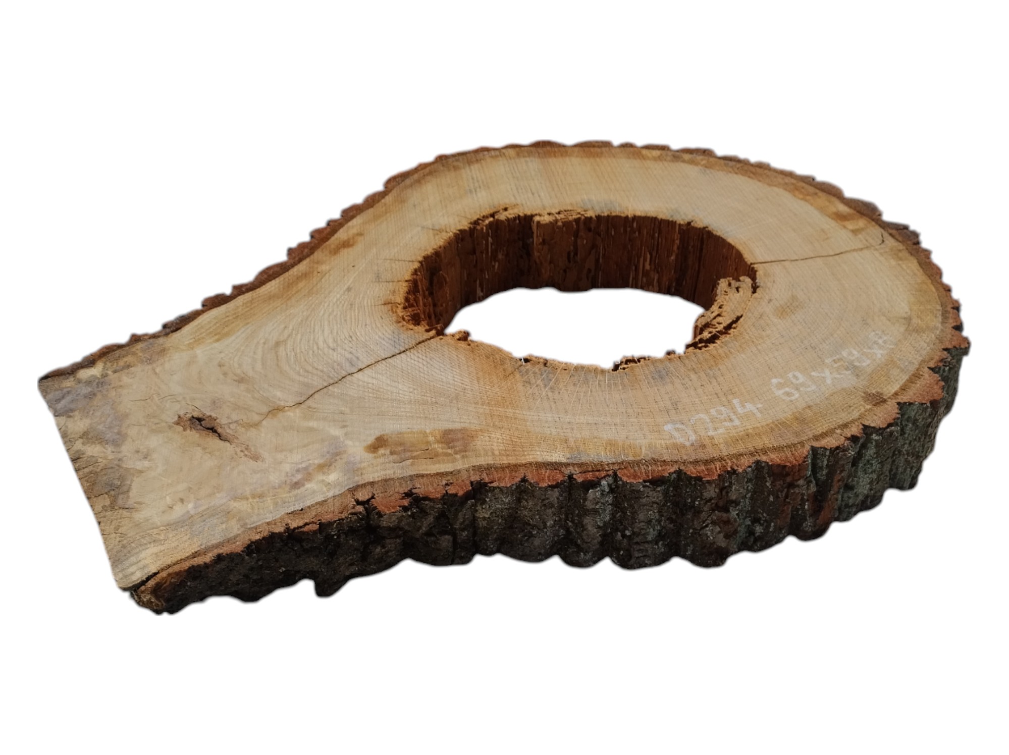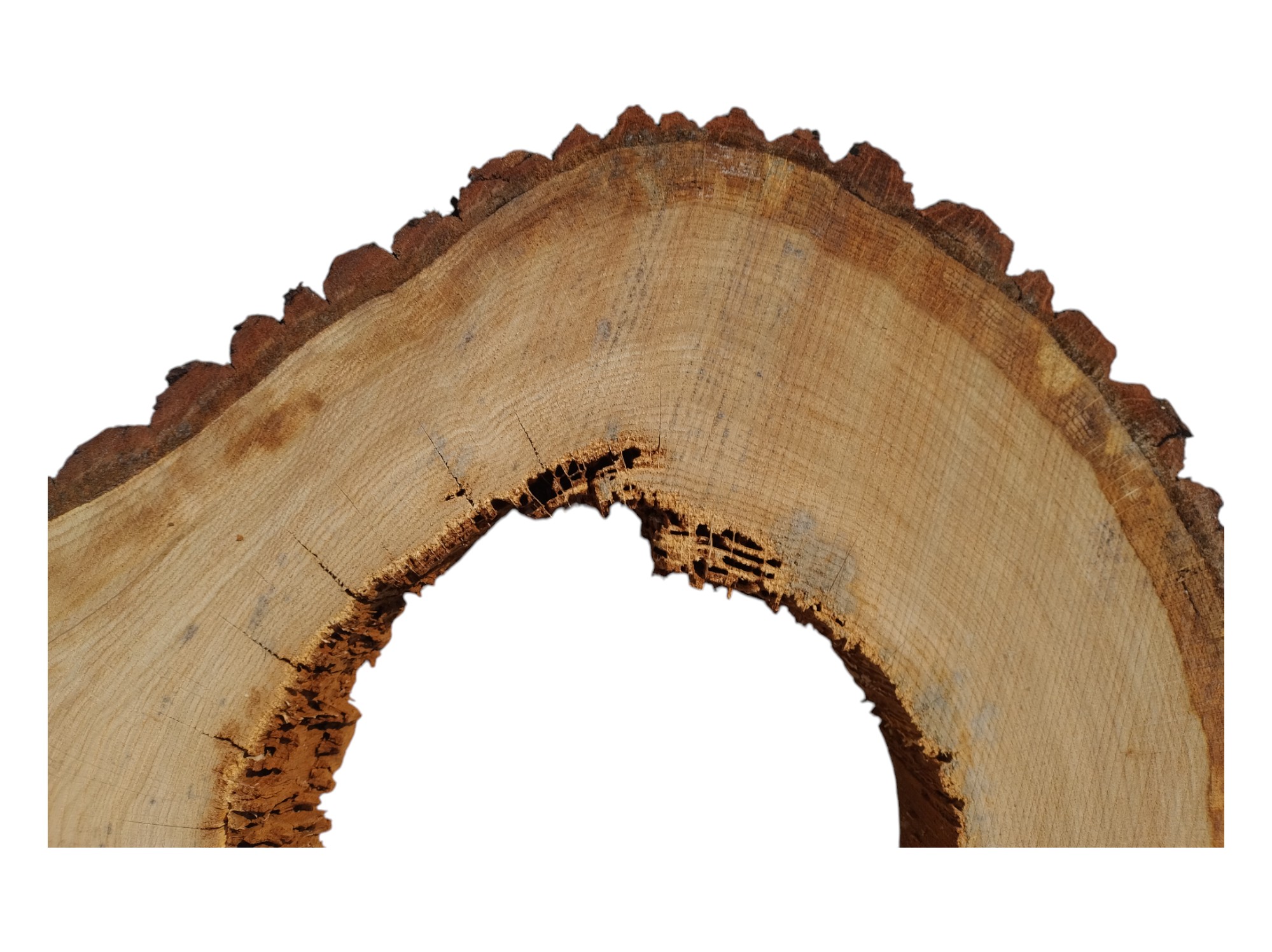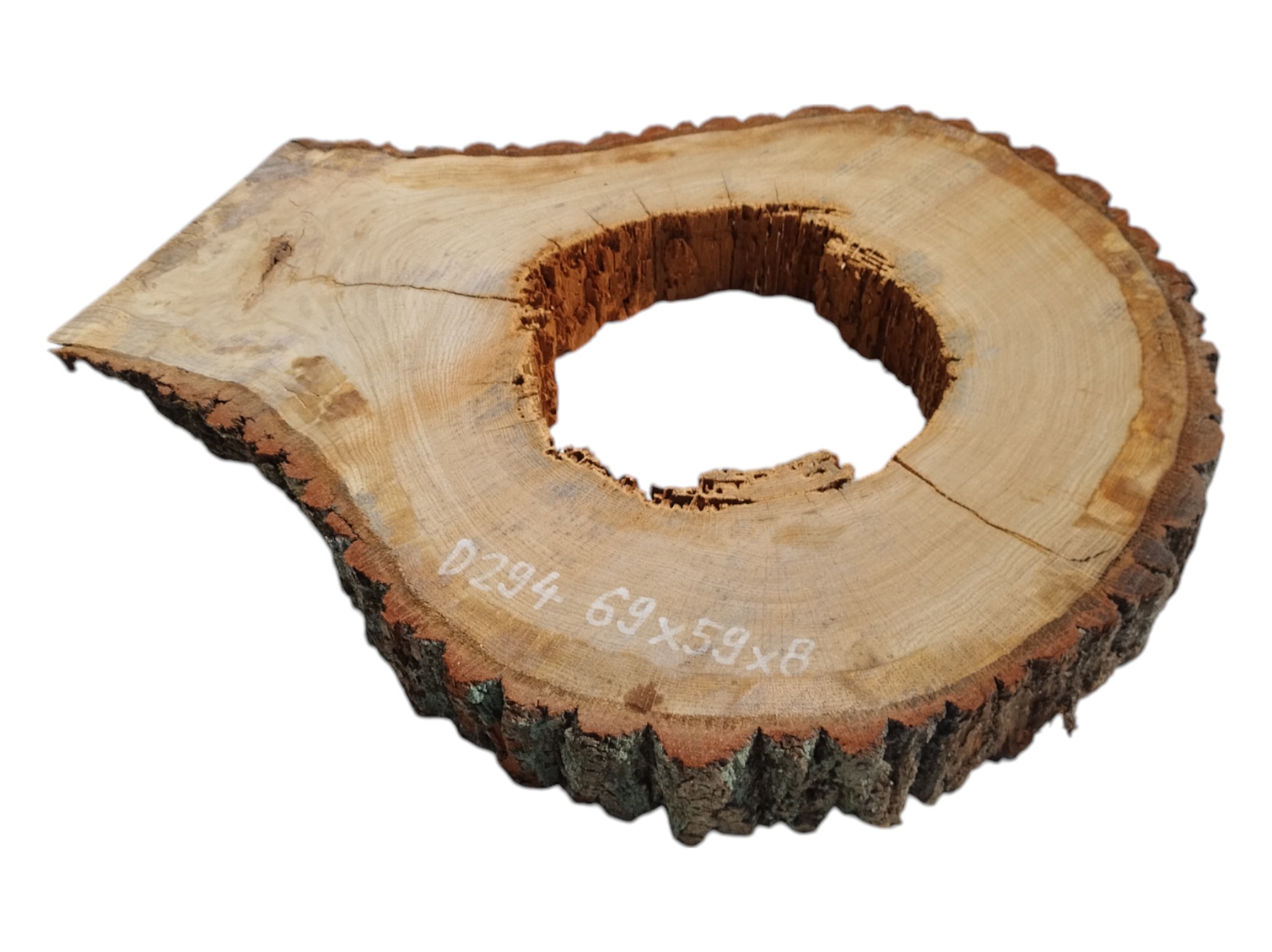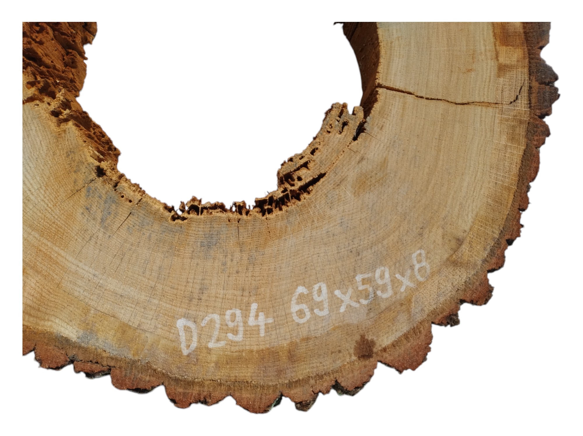 Zdjęcia robimy od razu po przecięciu, żeby jak najlepiej pokazać w jaki sposób można wyprowadzić plaster i podkreślić jego strukturę. W procesie suszenia naturalną rzeczą są pęknięcia materiału powstałe w skutek oddawania wilgoci oraz powierzchowna zmiana barwy. Zdjęcie nr 2 w galerii prezentuje aktualny stan plastra - po wyjęciu z suszarni.