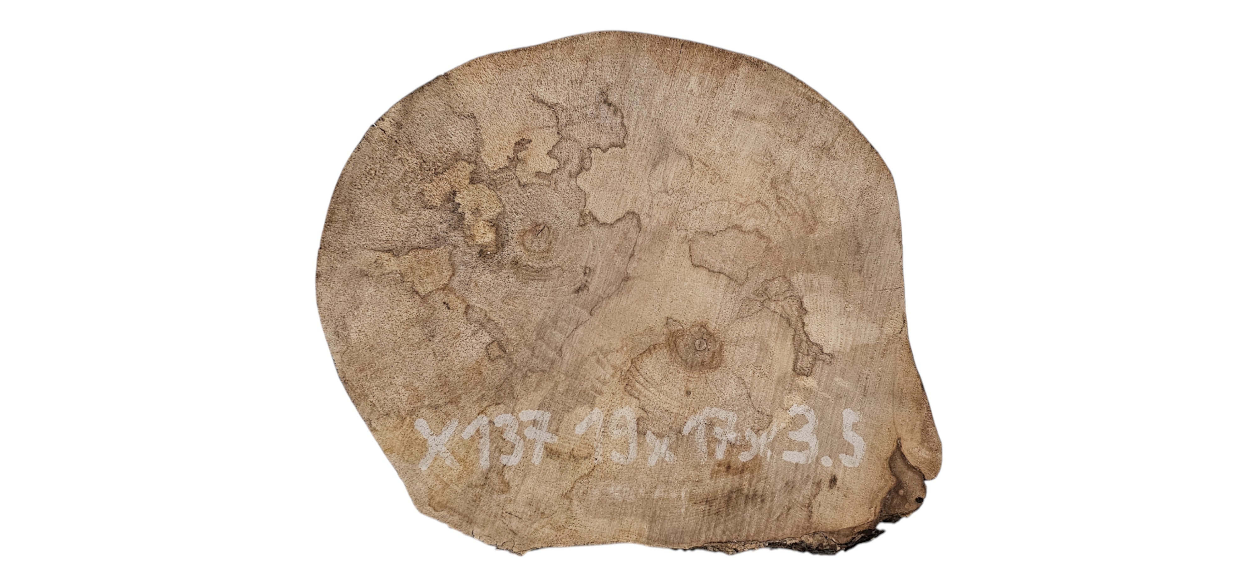 Zdjęcia robimy od razu po przecięciu, żeby jak najlepiej pokazać w jaki sposób można wyprowadzić plaster i podkreślić jego strukturę. W procesie suszenia naturalną rzeczą są pęknięcia materiału powstałe w skutek oddawania wilgoci oraz powierzchowna zmiana barwy. Zdjęcie nr 2 w galerii przedstawia stan plastra z grudnia 2025 – wtedy została zmierzona podana wilgotność.