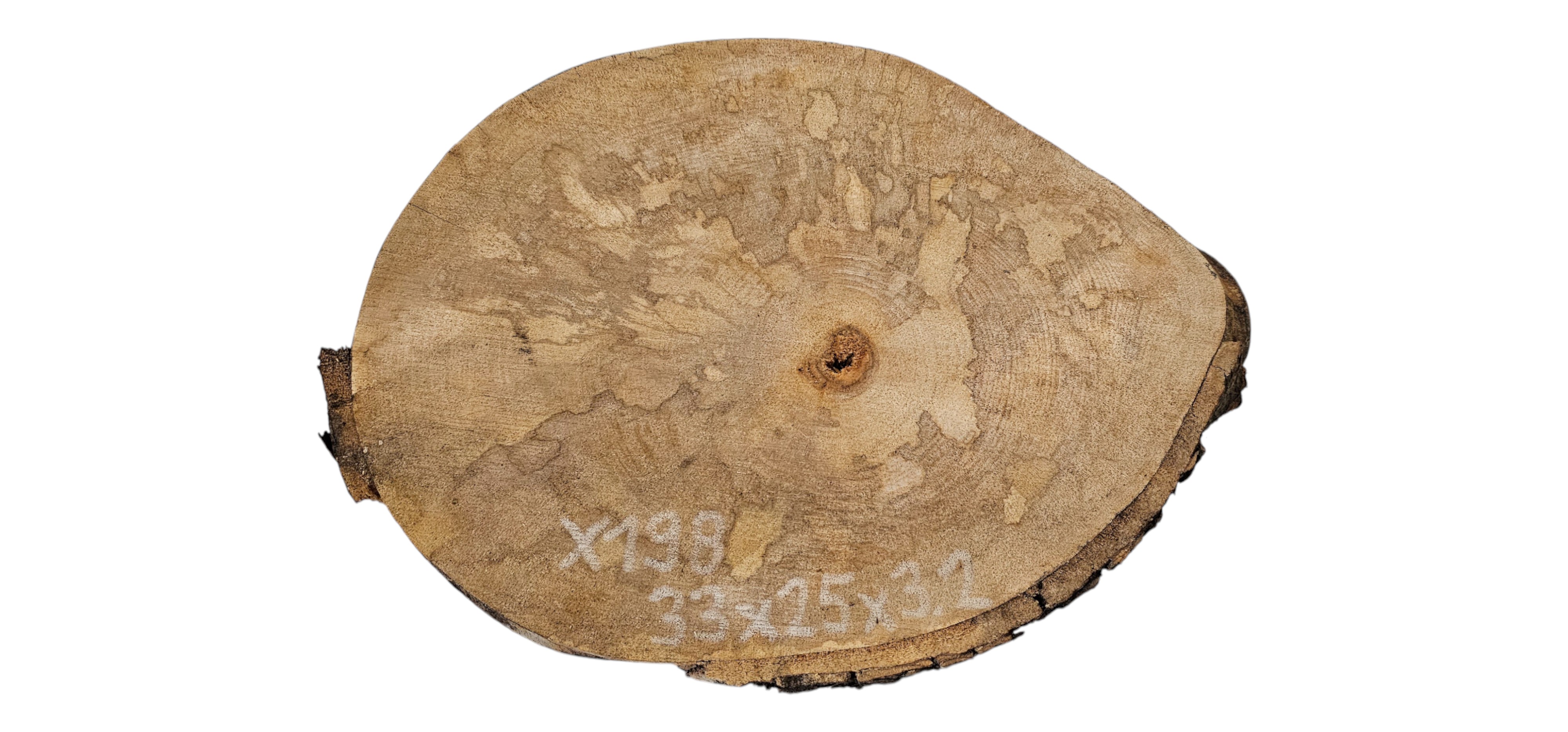 Zdjęcia robimy od razu po przecięciu, żeby jak najlepiej pokazać w jaki sposób można wyprowadzić plaster i podkreślić jego strukturę. W procesie suszenia naturalną rzeczą są pęknięcia materiału powstałe w skutek oddawania wilgoci oraz powierzchowna zmiana barwy. Zdjęcie nr 2 w galerii przedstawia stan plastra z grudnia 2025 – wtedy została zmierzona podana wilgotność.