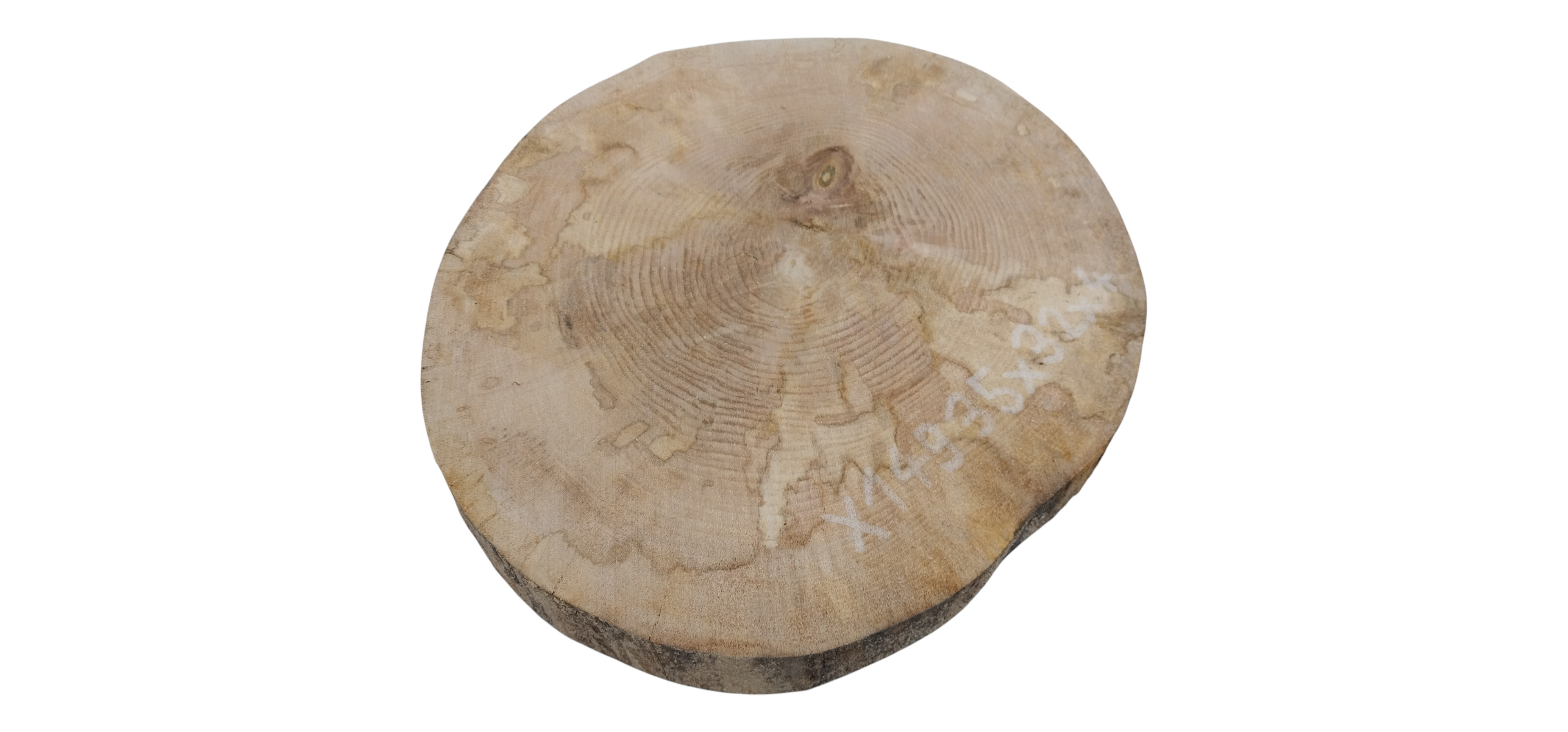 Zdjęcia robimy od razu po przecięciu, żeby jak najlepiej pokazać w jaki sposób można wyprowadzić plaster i podkreślić jego strukturę. W procesie suszenia naturalną rzeczą są pęknięcia materiału powstałe w skutek oddawania wilgoci oraz powierzchowna zmiana barwy. Zdjęcie nr 2 w galerii przedstawia stan plastra z grudnia 2025 – wtedy została zmierzona podana wilgotność.