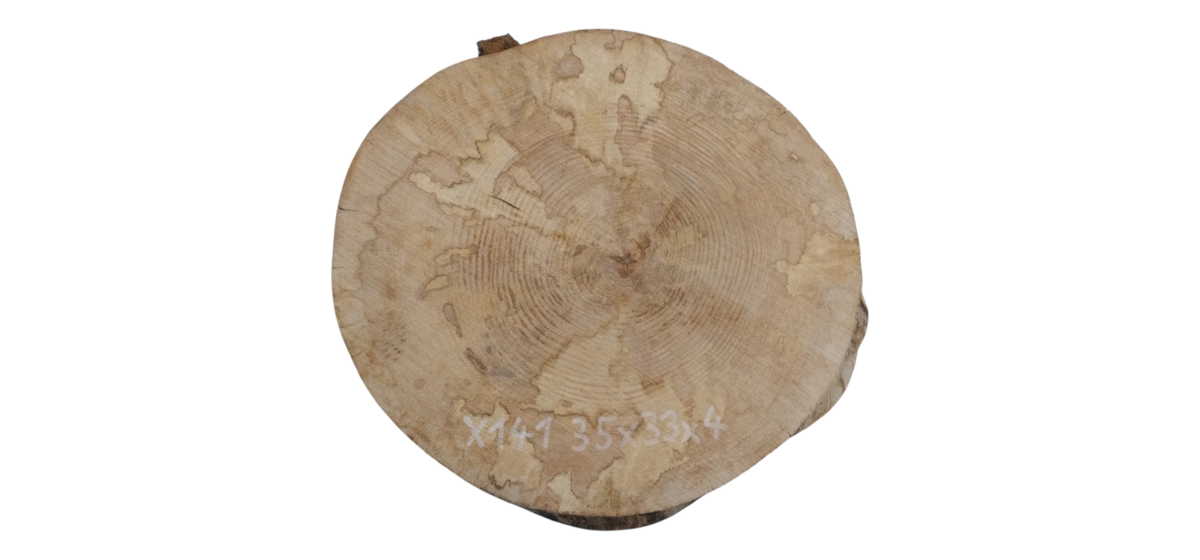 Zdjęcia robimy od razu po przecięciu, żeby jak najlepiej pokazać w jaki sposób można wyprowadzić plaster i podkreślić jego strukturę. W procesie suszenia naturalną rzeczą są pęknięcia materiału powstałe w skutek oddawania wilgoci oraz powierzchowna zmiana barwy. Zdjęcie nr 2 w galerii przedstawia stan plastra z grudnia 2025 – wtedy została zmierzona podana wilgotność.