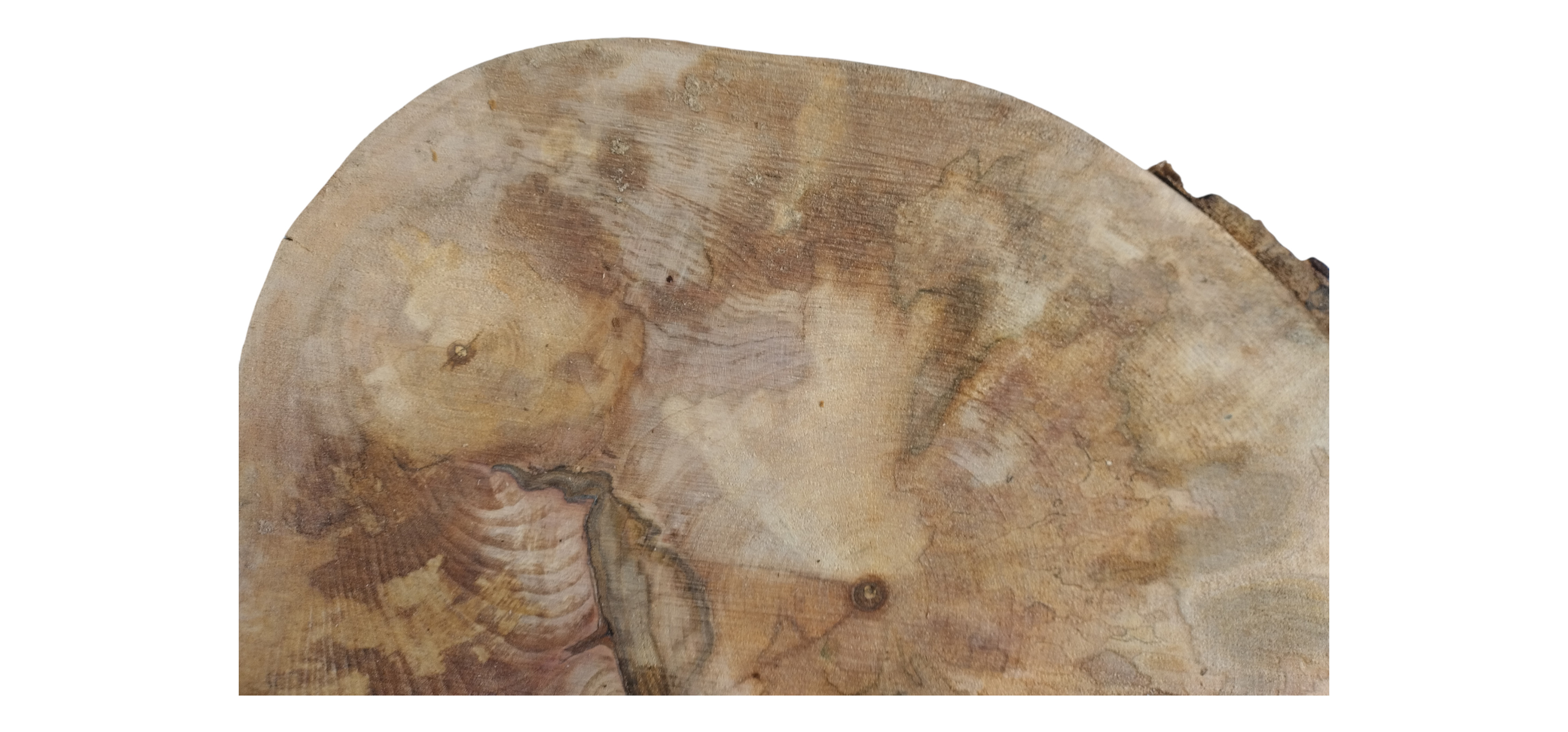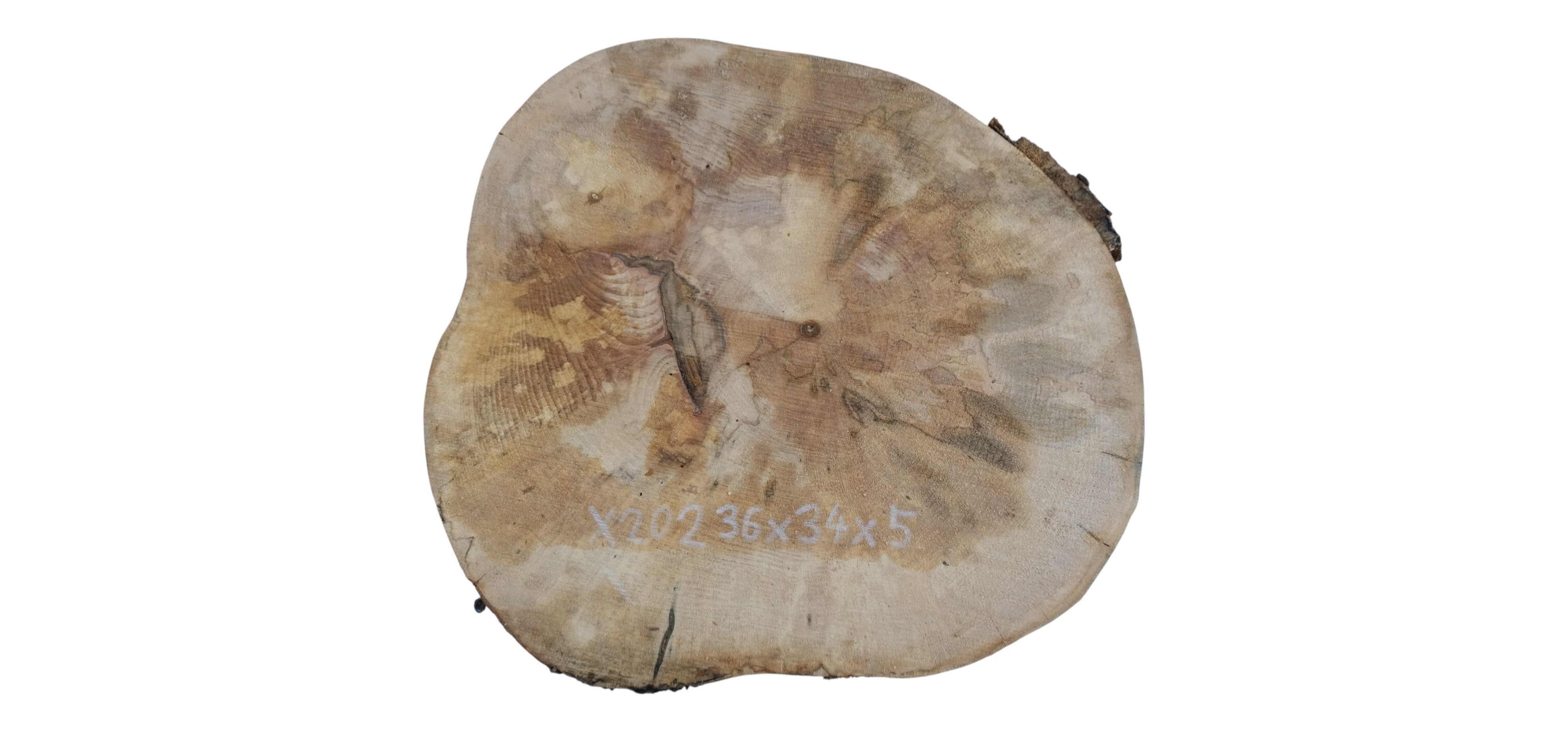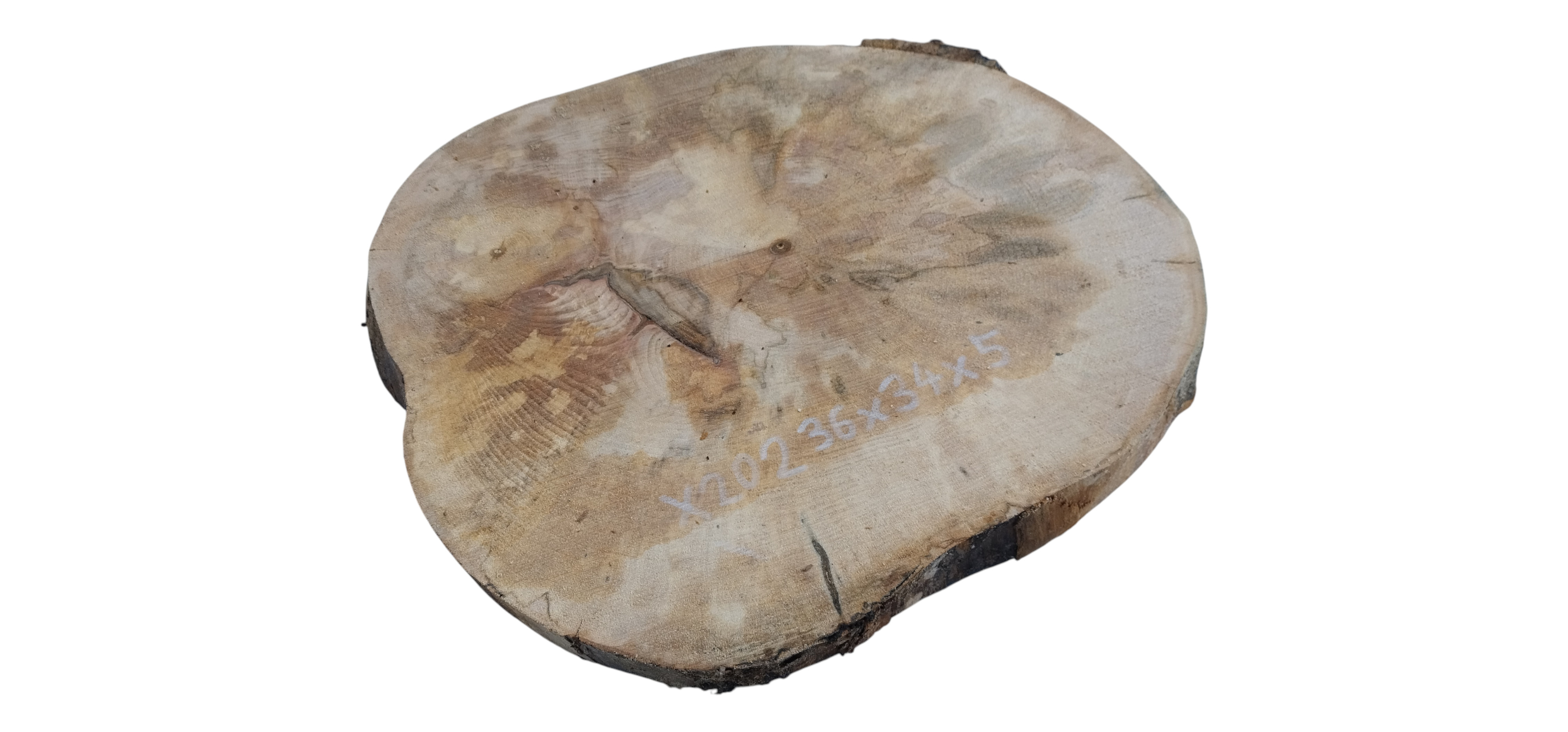 Zdjęcia robimy od razu po przecięciu, żeby jak najlepiej pokazać w jaki sposób można wyprowadzić plaster i podkreślić jego strukturę. W procesie suszenia naturalną rzeczą są pęknięcia materiału powstałe w skutek oddawania wilgoci oraz powierzchowna zmiana barwy. Zdjęcie nr 2 w galerii przedstawia stan plastra z grudnia 2025 – wtedy została zmierzona podana wilgotność.