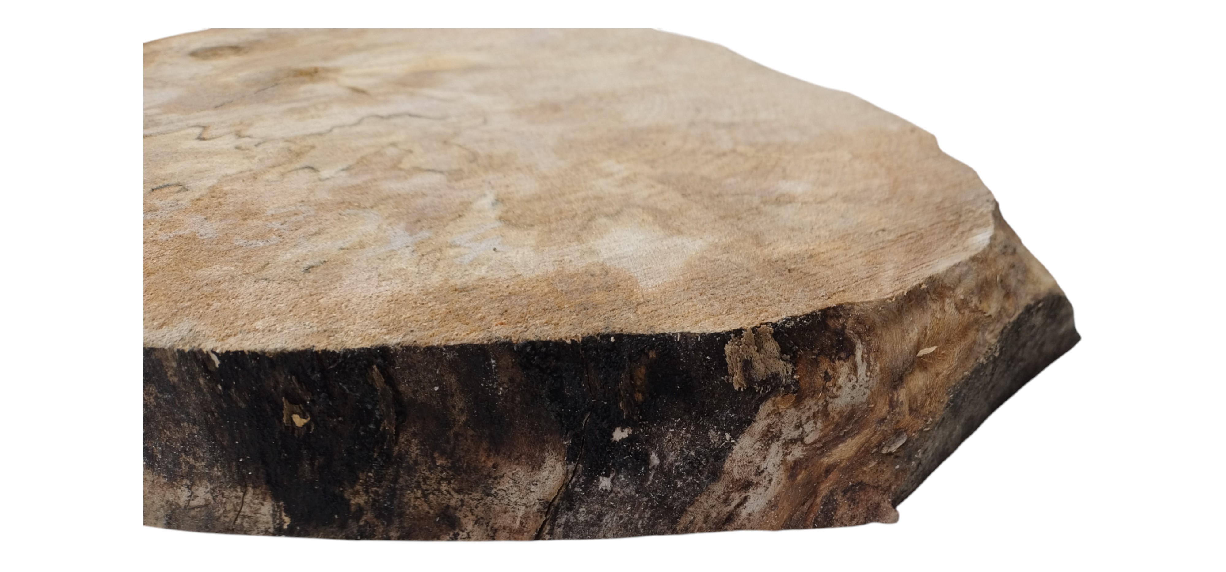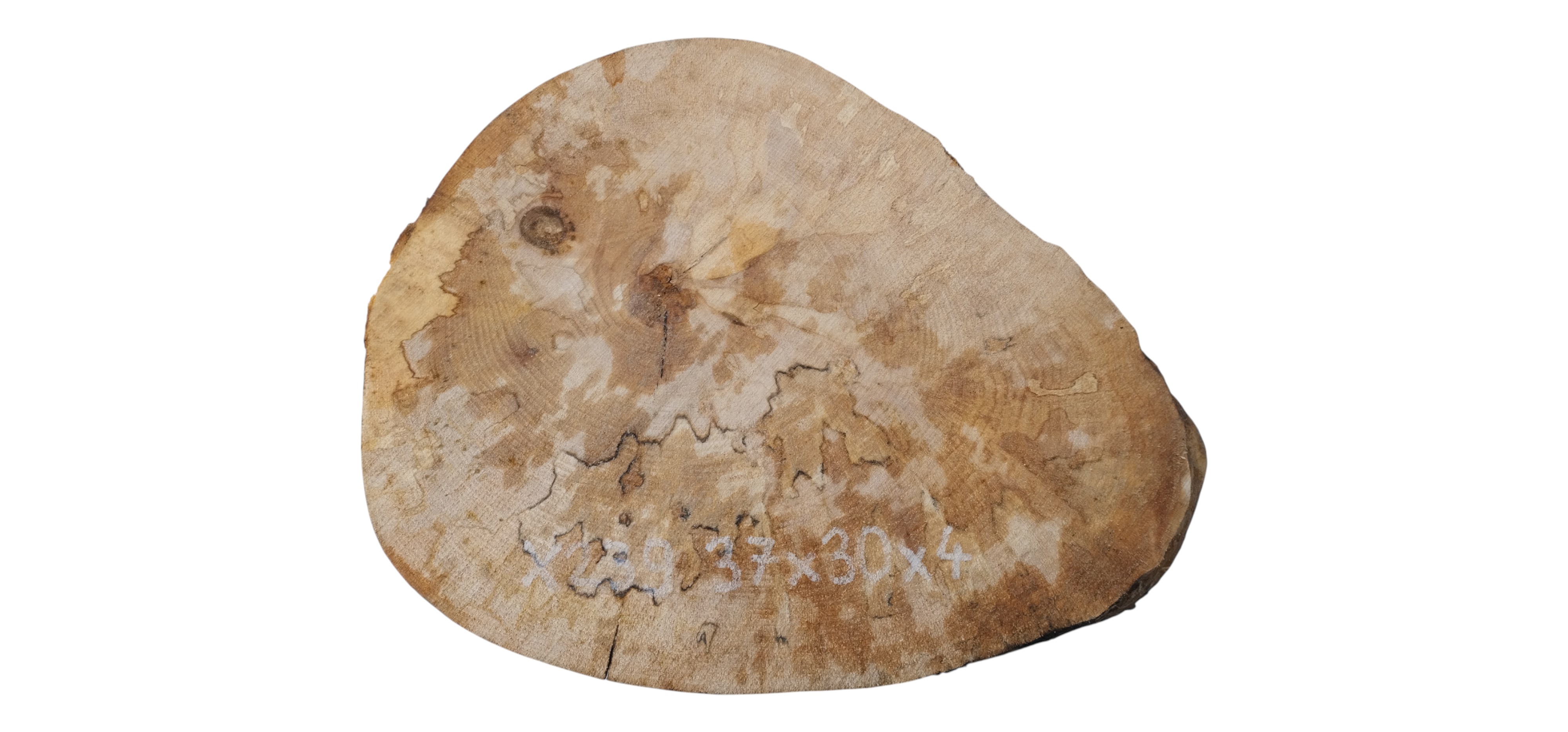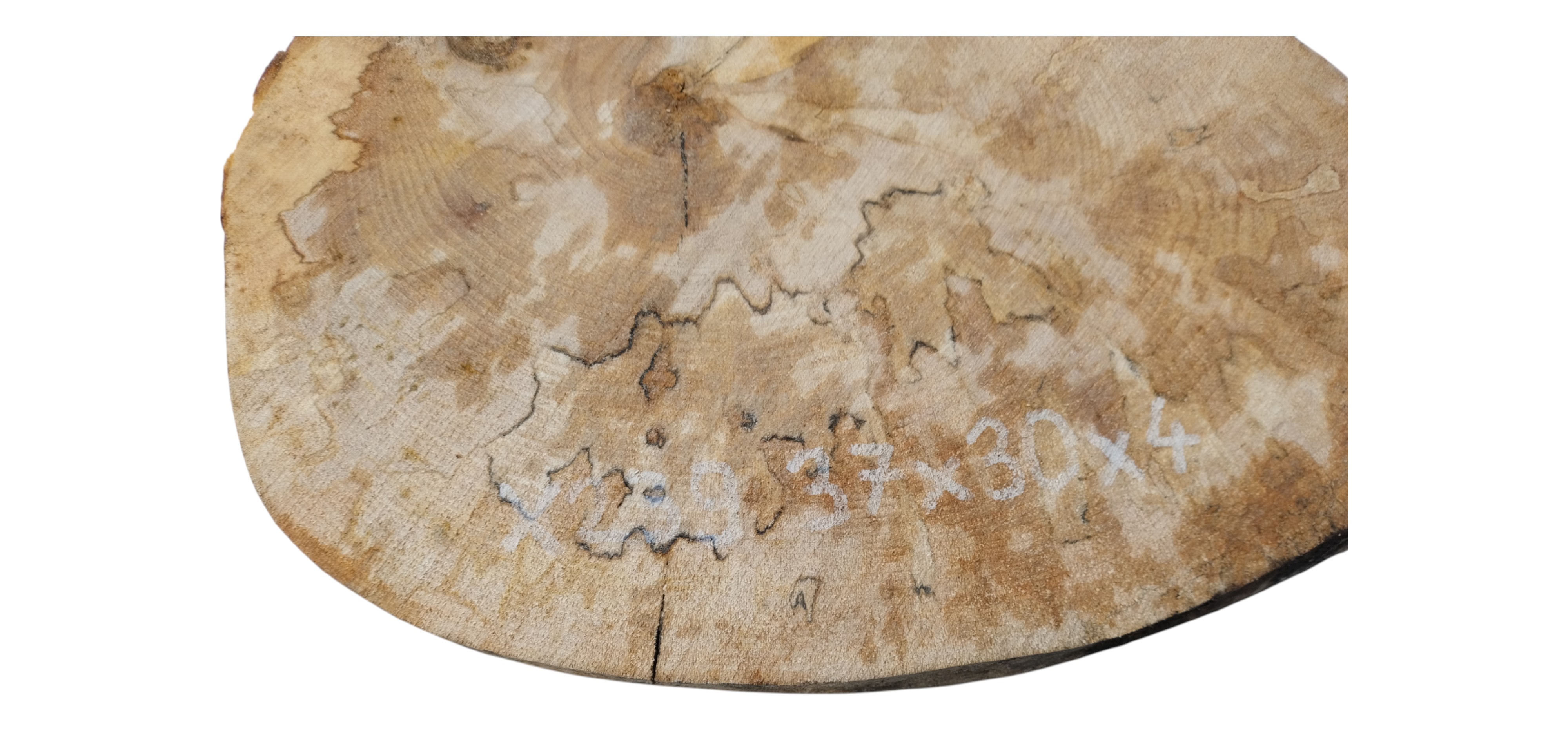 Zdjęcia robimy od razu po przecięciu, żeby jak najlepiej pokazać w jaki sposób można wyprowadzić plaster i podkreślić jego strukturę. W procesie suszenia naturalną rzeczą są pęknięcia materiału powstałe w skutek oddawania wilgoci oraz powierzchowna zmiana barwy. Zdjęcie nr 2 w galerii przedstawia stan plastra z grudnia 2025 – wtedy została zmierzona podana wilgotność.