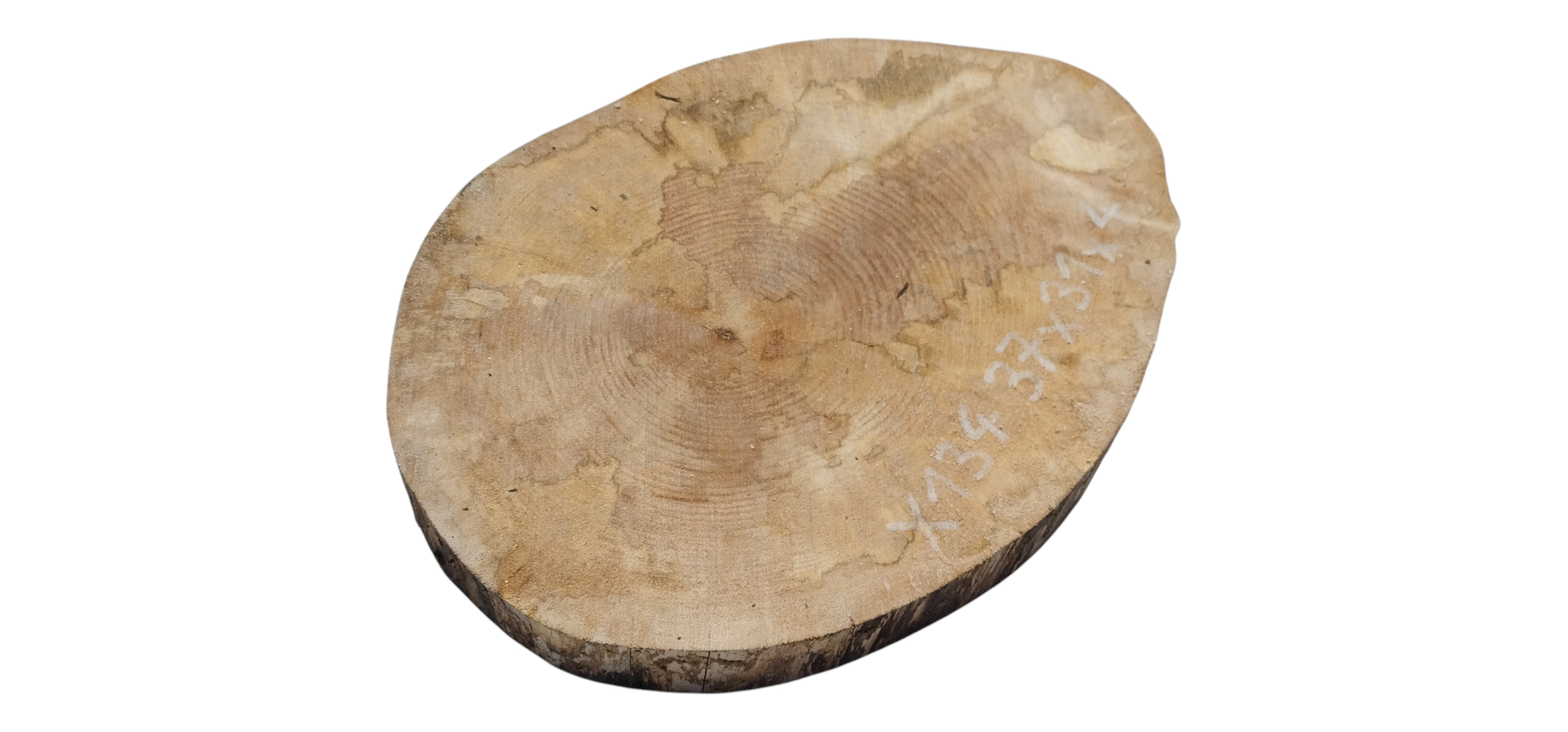 Zdjęcia robimy od razu po przecięciu, żeby jak najlepiej pokazać w jaki sposób można wyprowadzić plaster i podkreślić jego strukturę. W procesie suszenia naturalną rzeczą są pęknięcia materiału powstałe w skutek oddawania wilgoci oraz powierzchowna zmiana barwy. Zdjęcie nr 2 w galerii przedstawia stan plastra z grudnia 2025 – wtedy została zmierzona podana wilgotność.