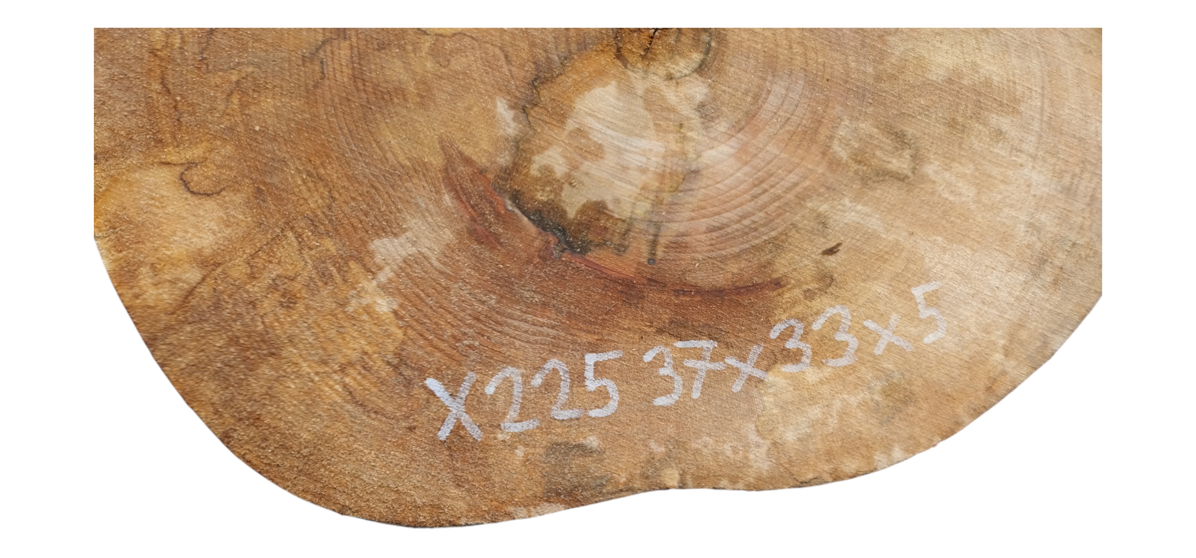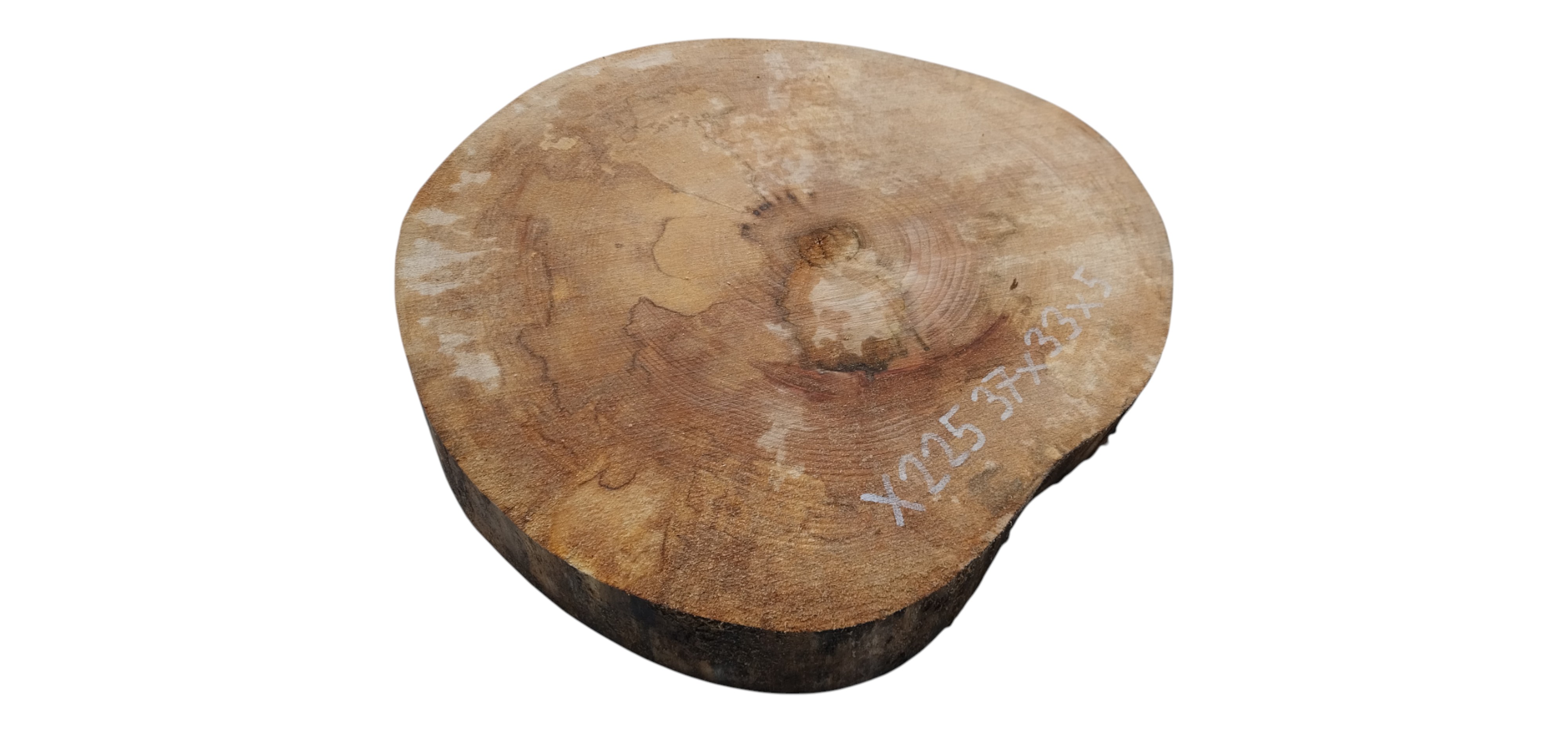 Zdjęcia robimy od razu po przecięciu, żeby jak najlepiej pokazać w jaki sposób można wyprowadzić plaster i podkreślić jego strukturę. W procesie suszenia naturalną rzeczą są pęknięcia materiału powstałe w skutek oddawania wilgoci oraz powierzchowna zmiana barwy. Zdjęcie nr 2 w galerii przedstawia stan plastra z grudnia 2025 – wtedy została zmierzona podana wilgotność.