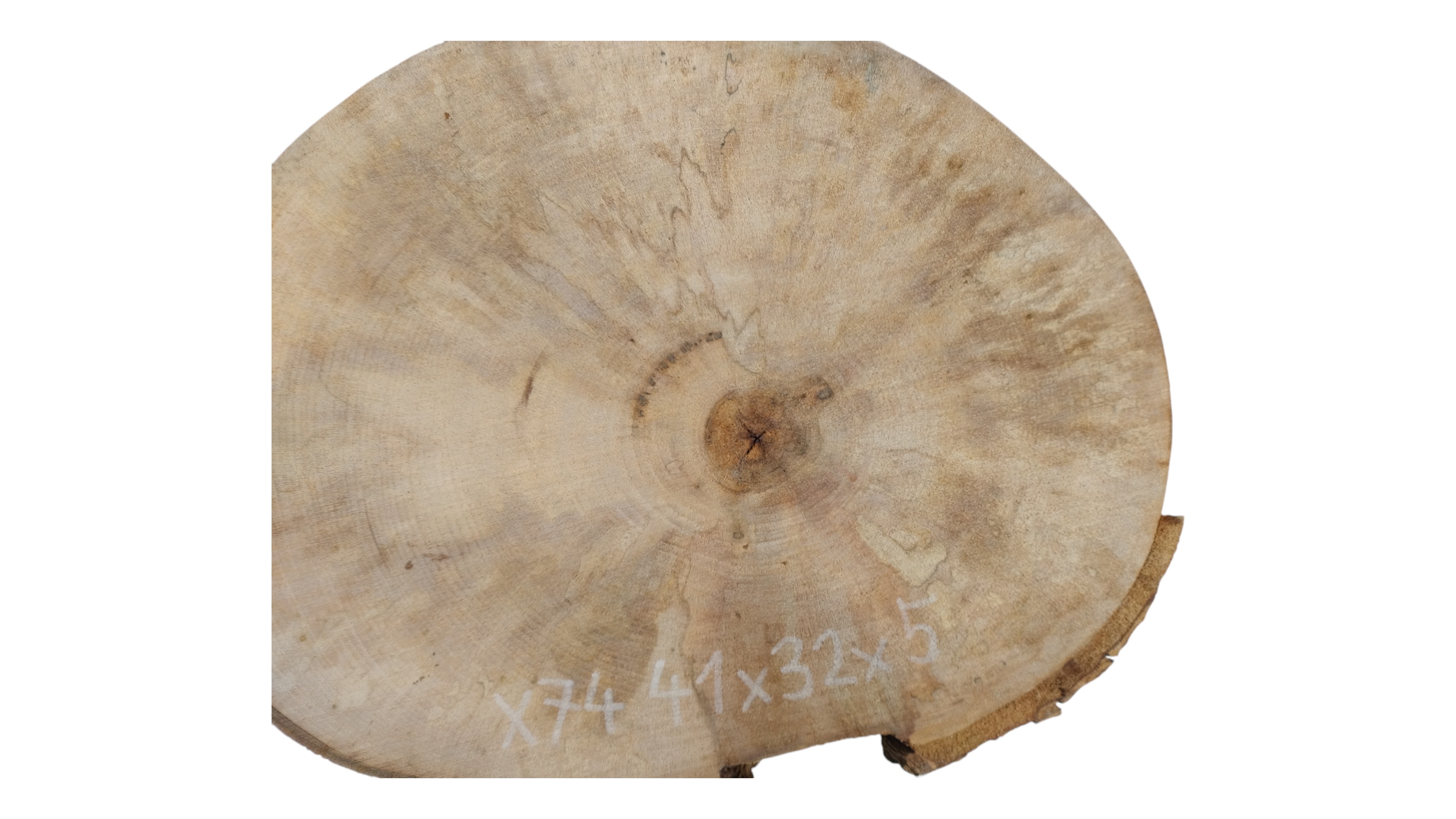 Zdjęcia robimy od razu po przecięciu, żeby jak najlepiej pokazać w jaki sposób można wyprowadzić plaster i podkreślić jego strukturę. W procesie suszenia naturalną rzeczą są pęknięcia materiału powstałe w skutek oddawania wilgoci oraz powierzchowna zmiana barwy. Zdjęcie nr 2 w galerii przedstawia stan plastra z kwietnia 2025 – wtedy została zmierzona podana wilgotność.