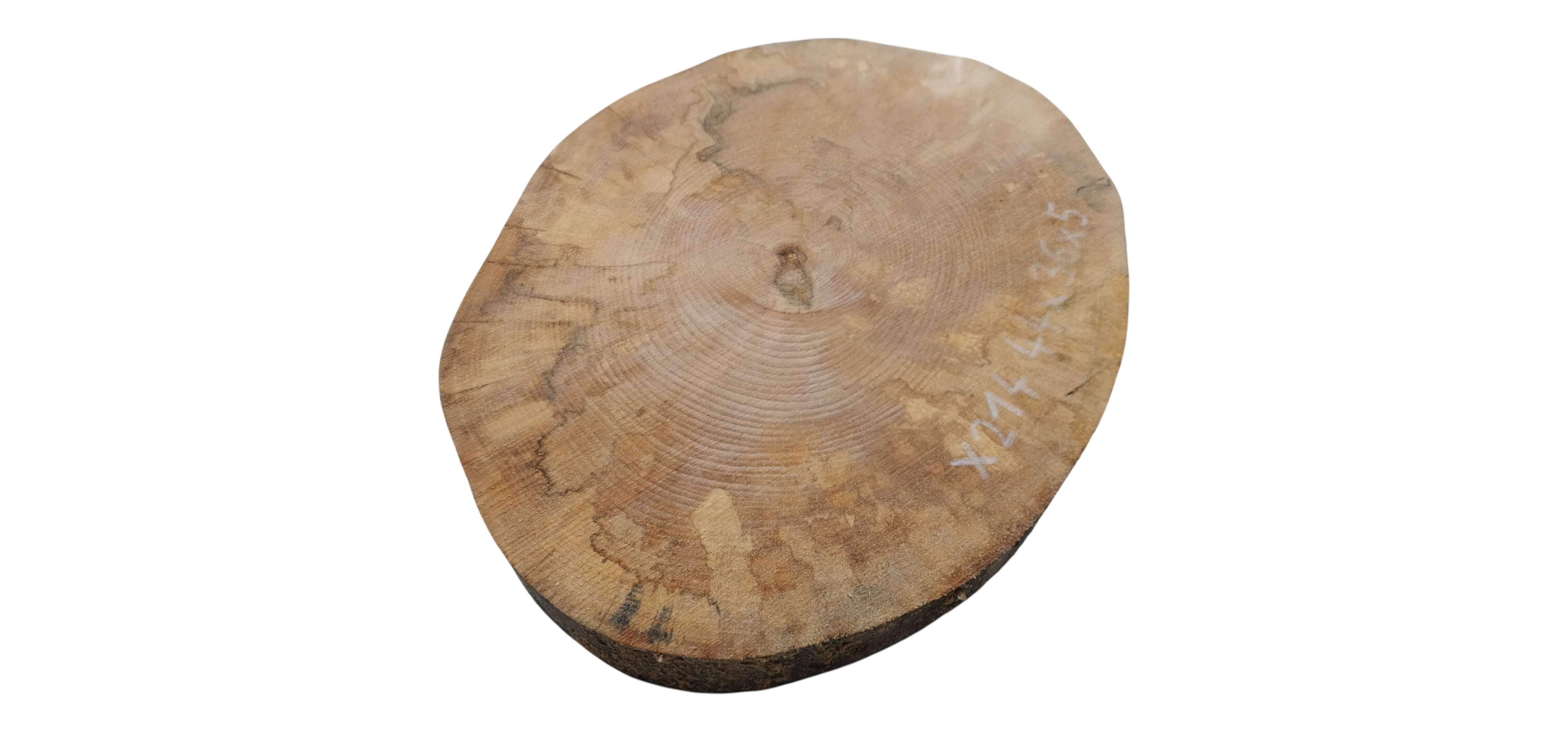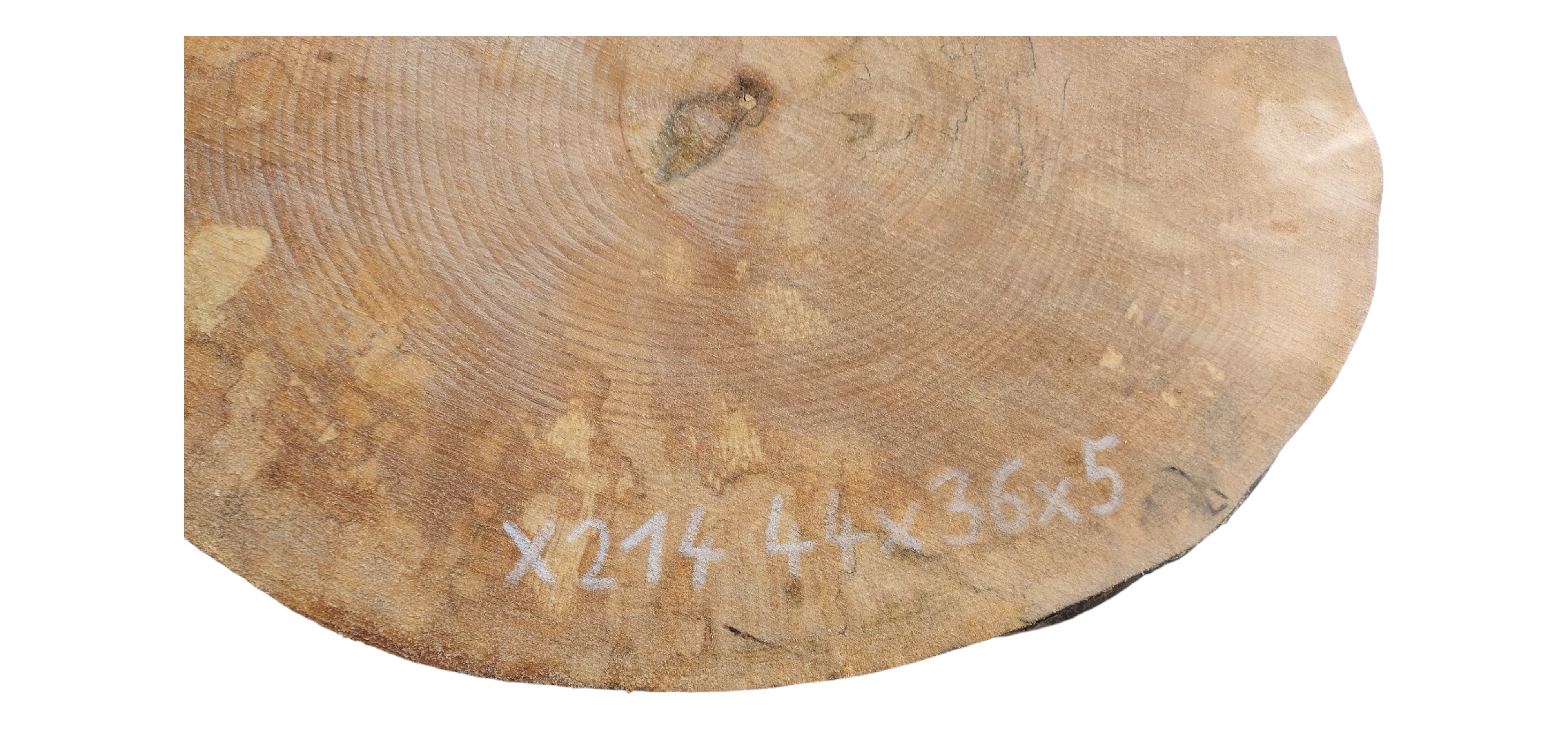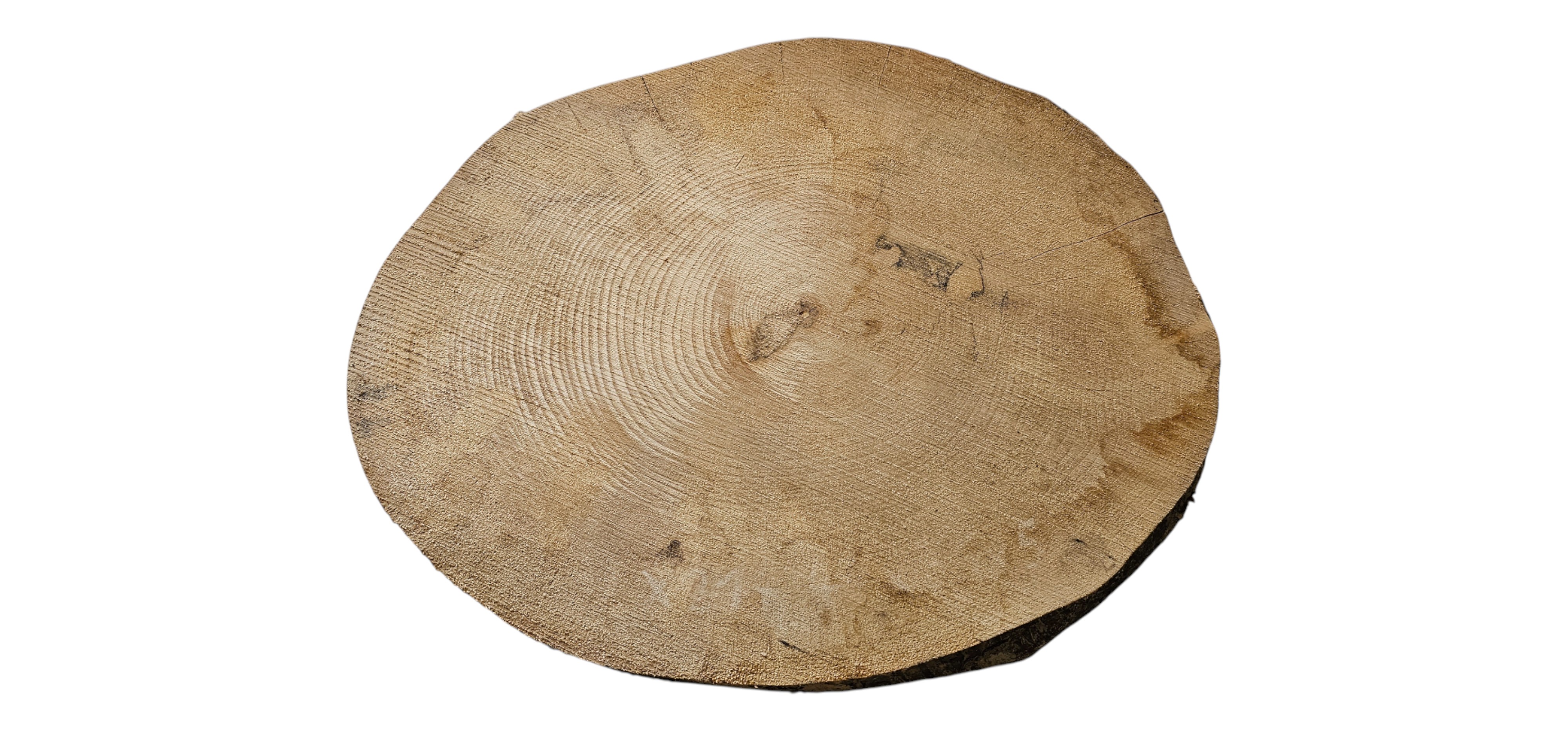 Zdjęcia robimy od razu po przecięciu, żeby jak najlepiej pokazać w jaki sposób można wyprowadzić plaster i podkreślić jego strukturę. W procesie suszenia naturalną rzeczą są pęknięcia materiału powstałe w skutek oddawania wilgoci oraz powierzchowna zmiana barwy. Zdjęcie nr 2 w galerii przedstawia stan plastra z grudnia 2025 – wtedy została zmierzona podana wilgotność.