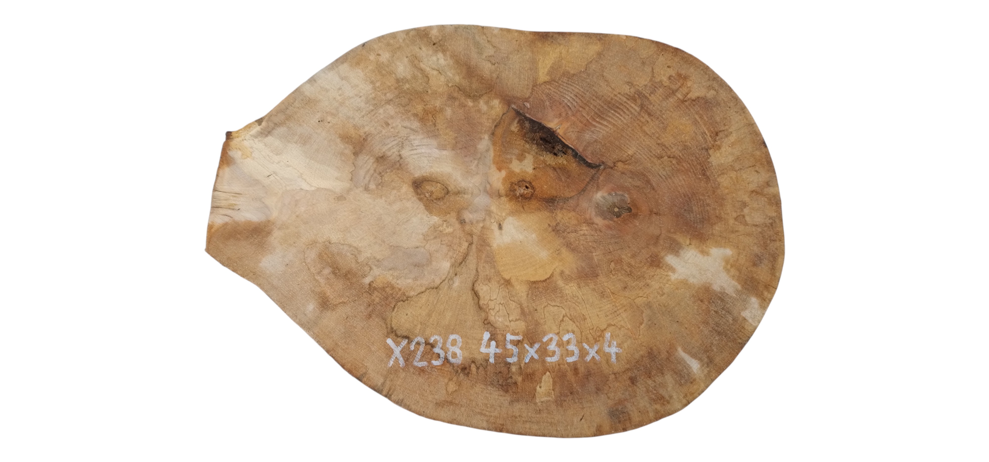 Zdjęcia robimy od razu po przecięciu, żeby jak najlepiej pokazać w jaki sposób można wyprowadzić plaster i podkreślić jego strukturę. W procesie suszenia naturalną rzeczą są pęknięcia materiału powstałe w skutek oddawania wilgoci oraz powierzchowna zmiana barwy. Zdjęcie nr 2 w galerii przedstawia stan plastra z grudnia 2025 – wtedy została zmierzona podana wilgotność.