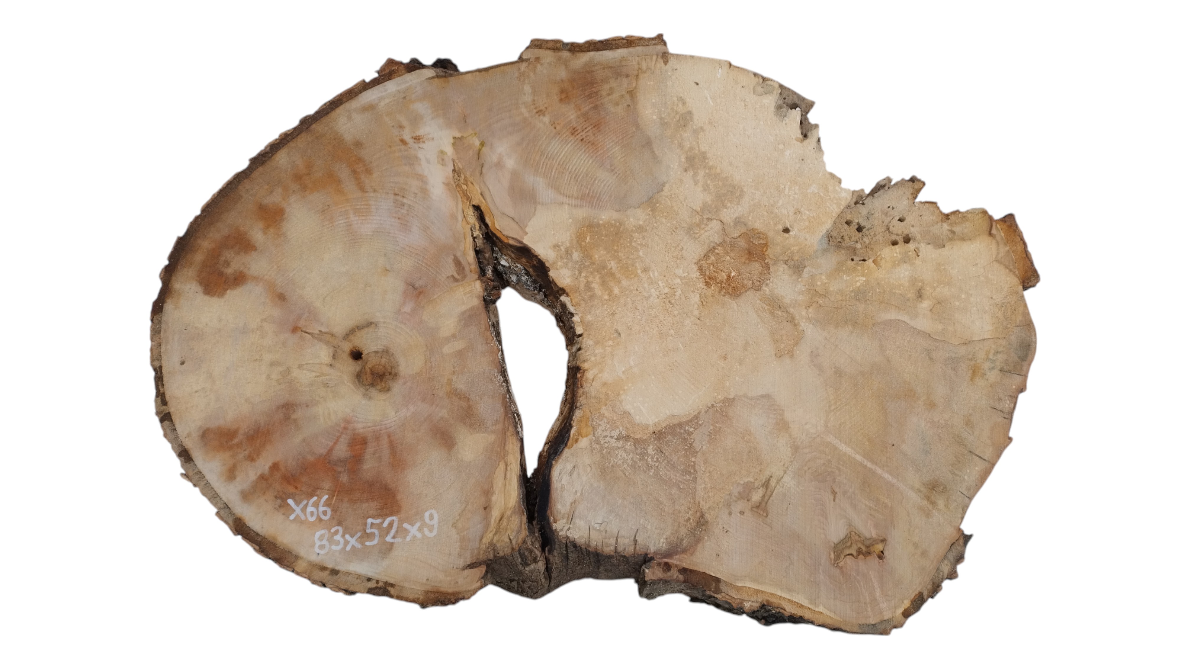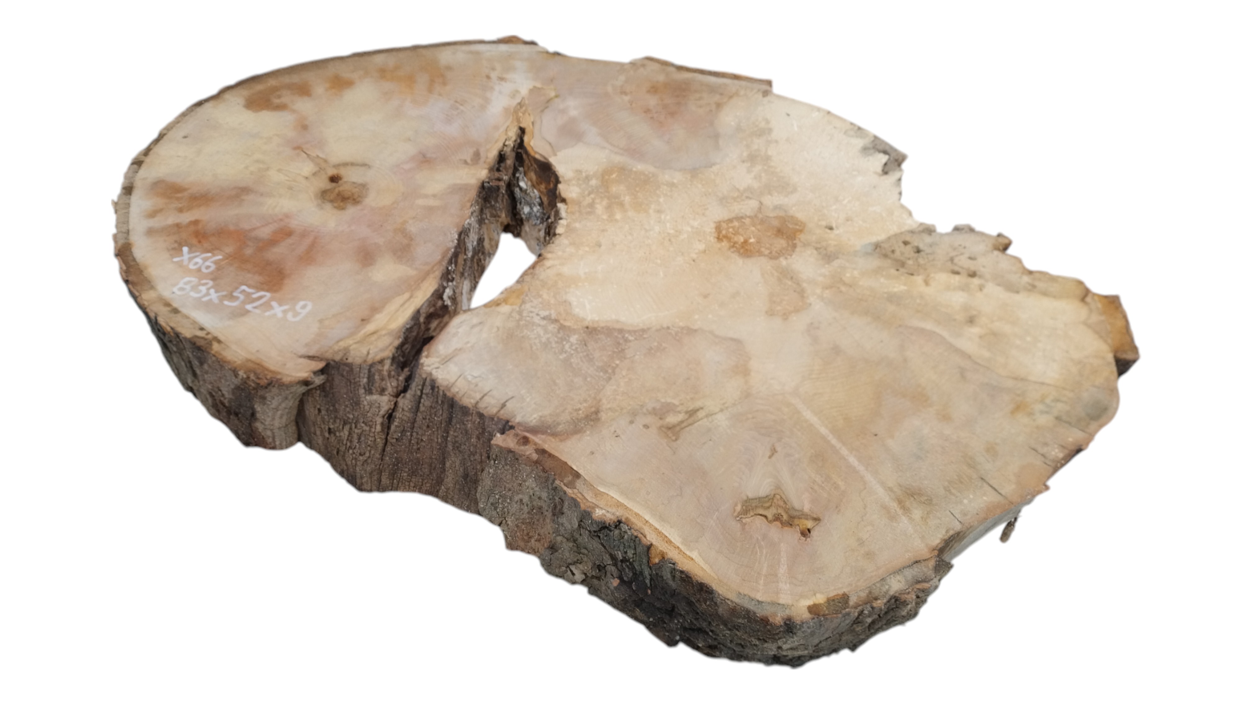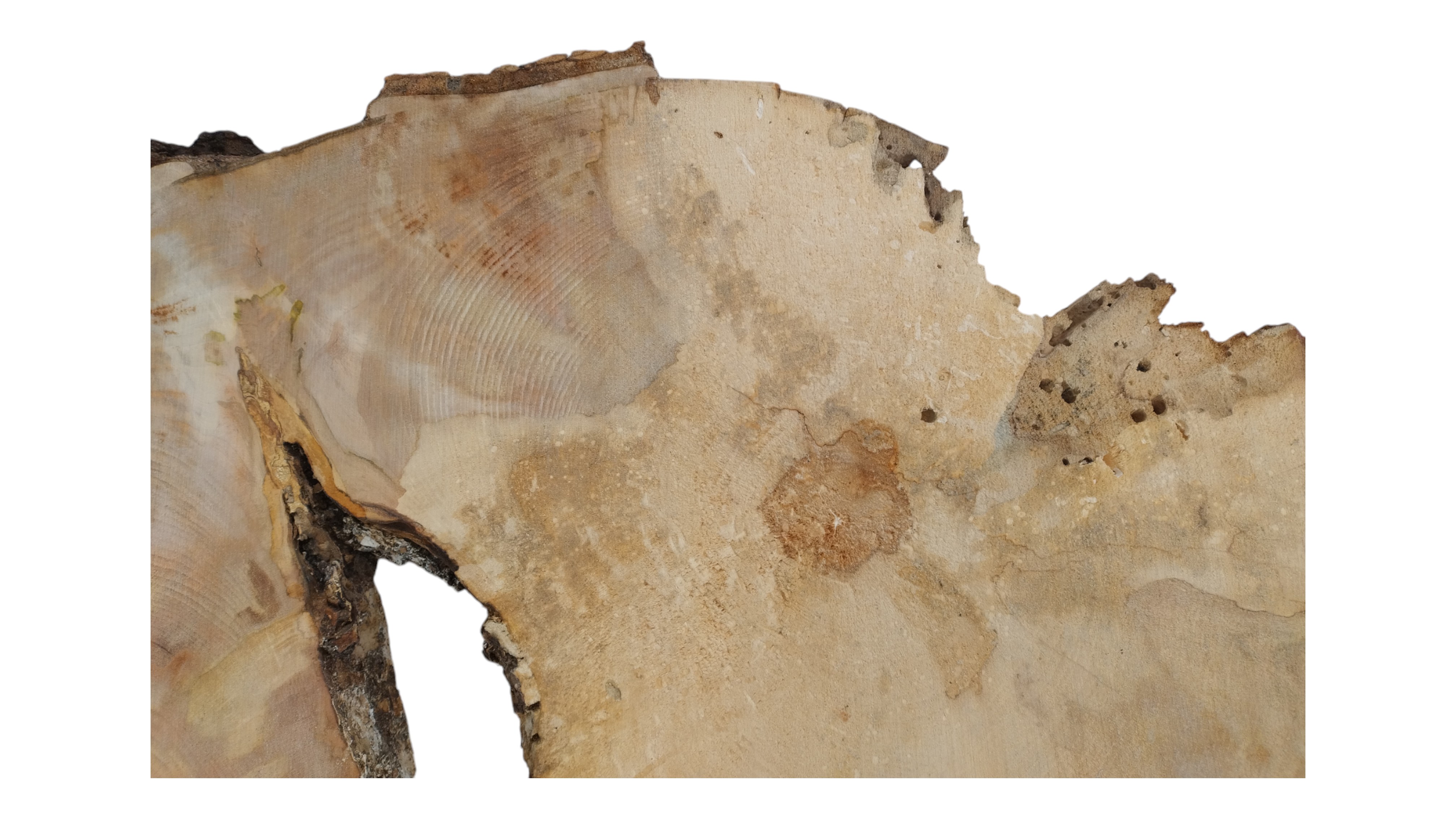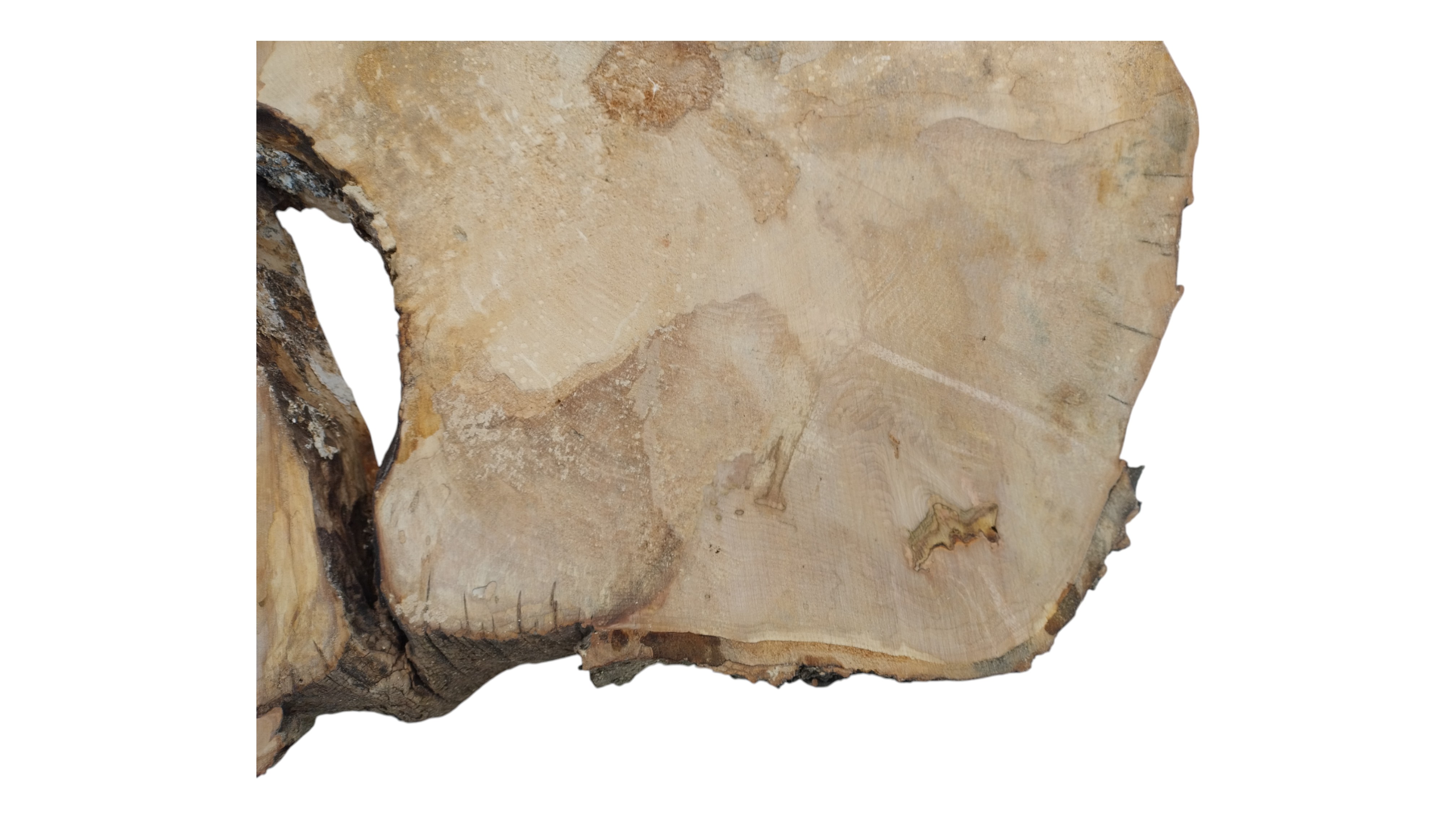 Zdjęcia robimy od razu po przecięciu, żeby jak najlepiej pokazać w jaki sposób można wyprowadzić plaster i podkreślić jego strukturę. W procesie suszenia naturalną rzeczą są pęknięcia materiału powstałe w skutek oddawania wilgoci oraz powierzchowna zmiana barwy. Zdjęcie nr 2 w galerii przedstawia stan plastra z maja 2025 – wtedy została zmierzona podana wilgotność.