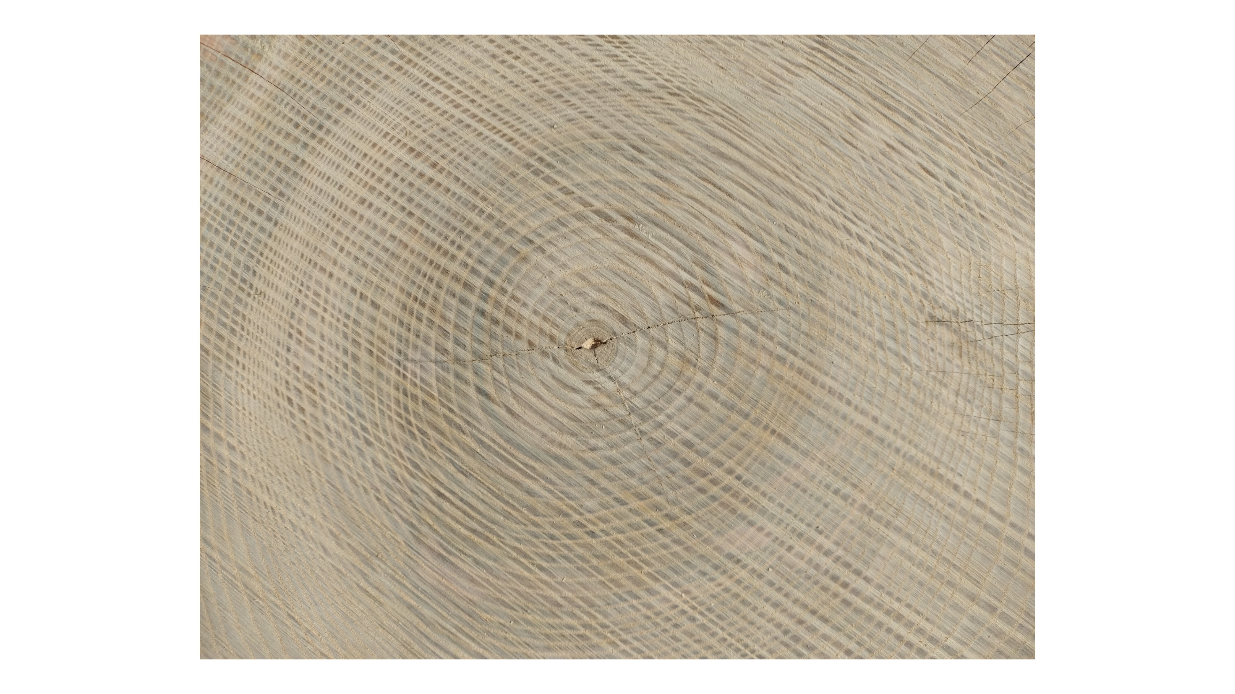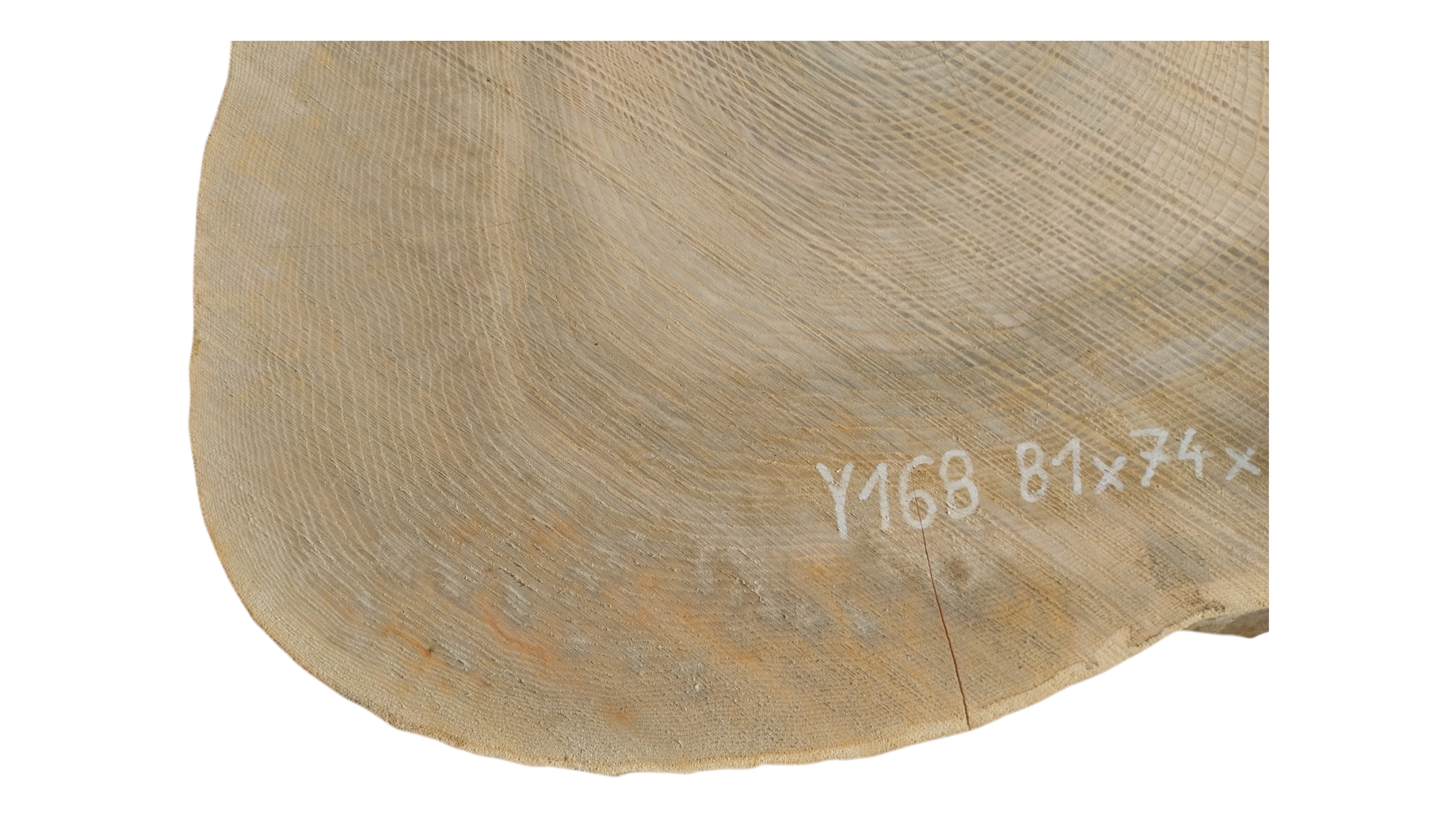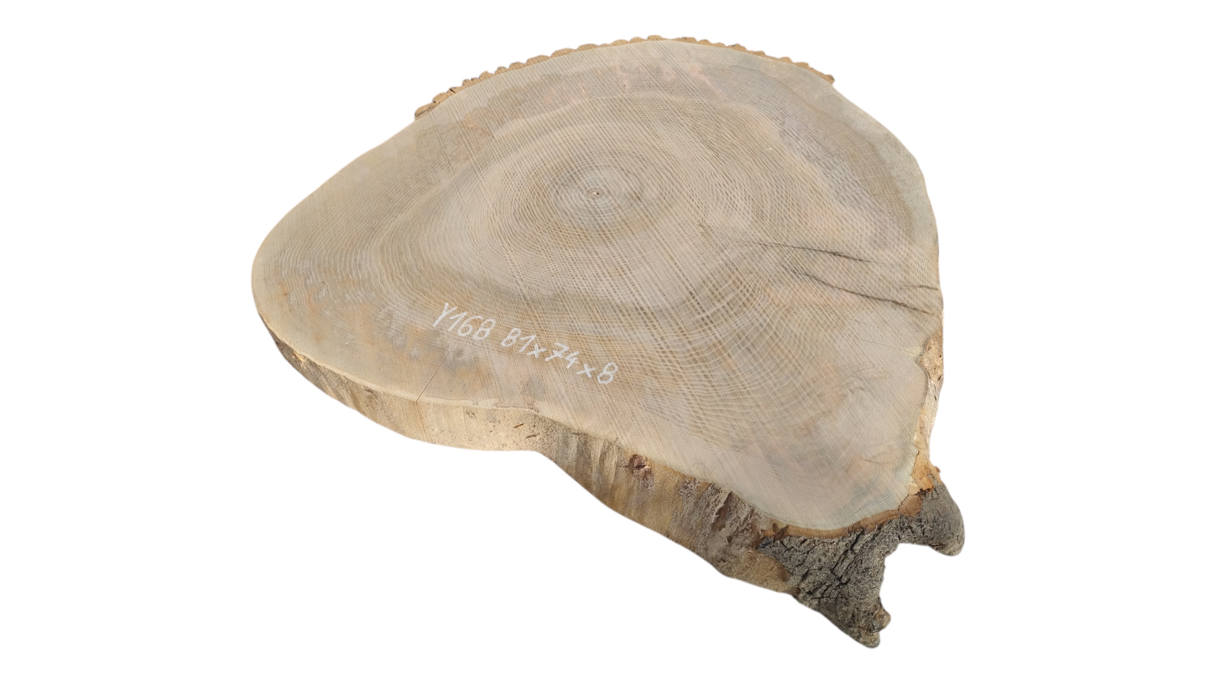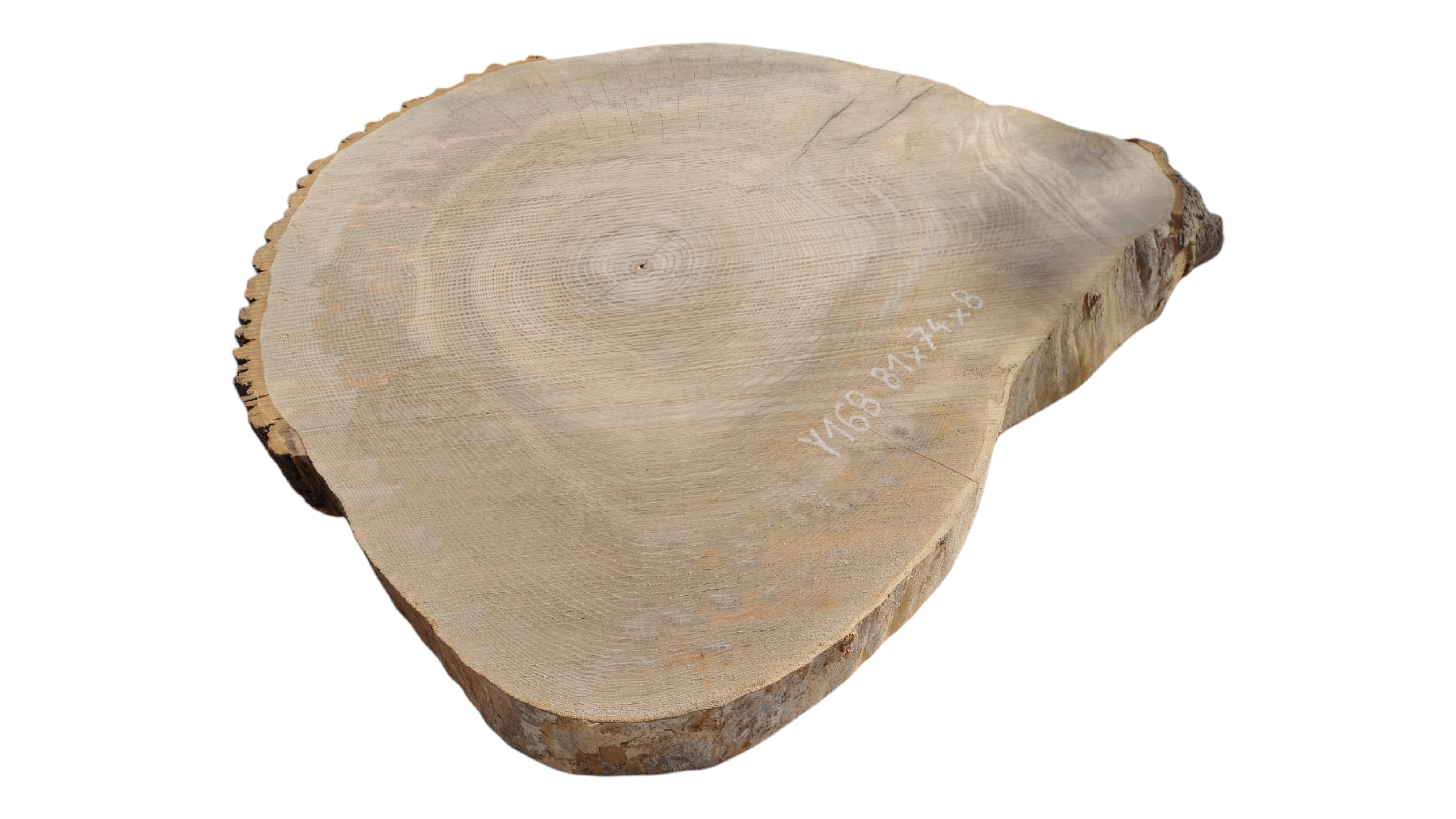 Zdjęcia robimy od razu po przecięciu, żeby jak najlepiej pokazać w jaki sposób można wyprowadzić plaster i podkreślić jego strukturę. W procesie suszenia naturalną rzeczą są pęknięcia materiału powstałe w skutek oddawania wilgoci oraz powierzchowna zmiana barwy. Zdjęcie nr 2 w galerii przedstawia stan plastra z września 2025 – wtedy została zmierzona podana wilgotność.