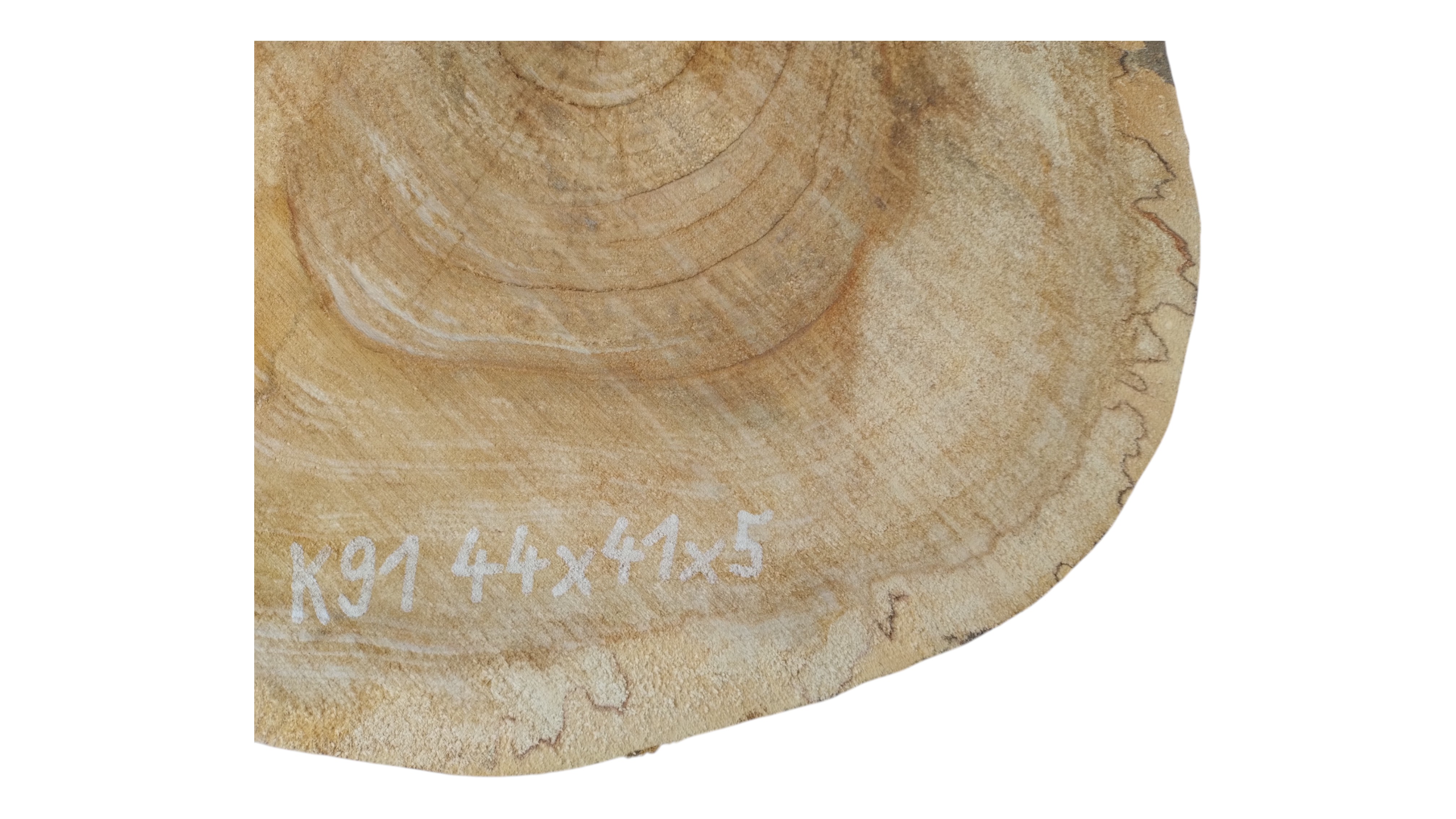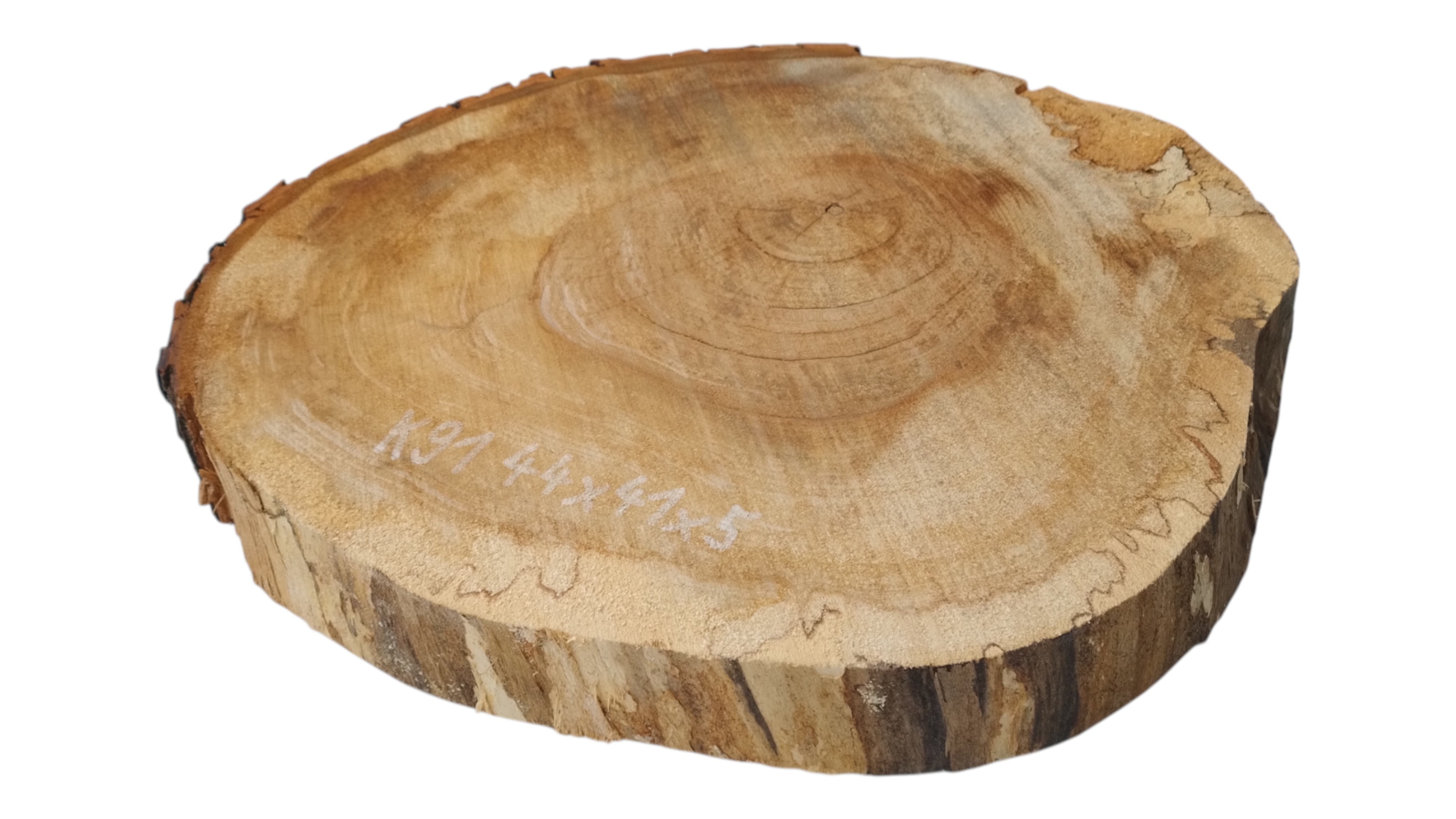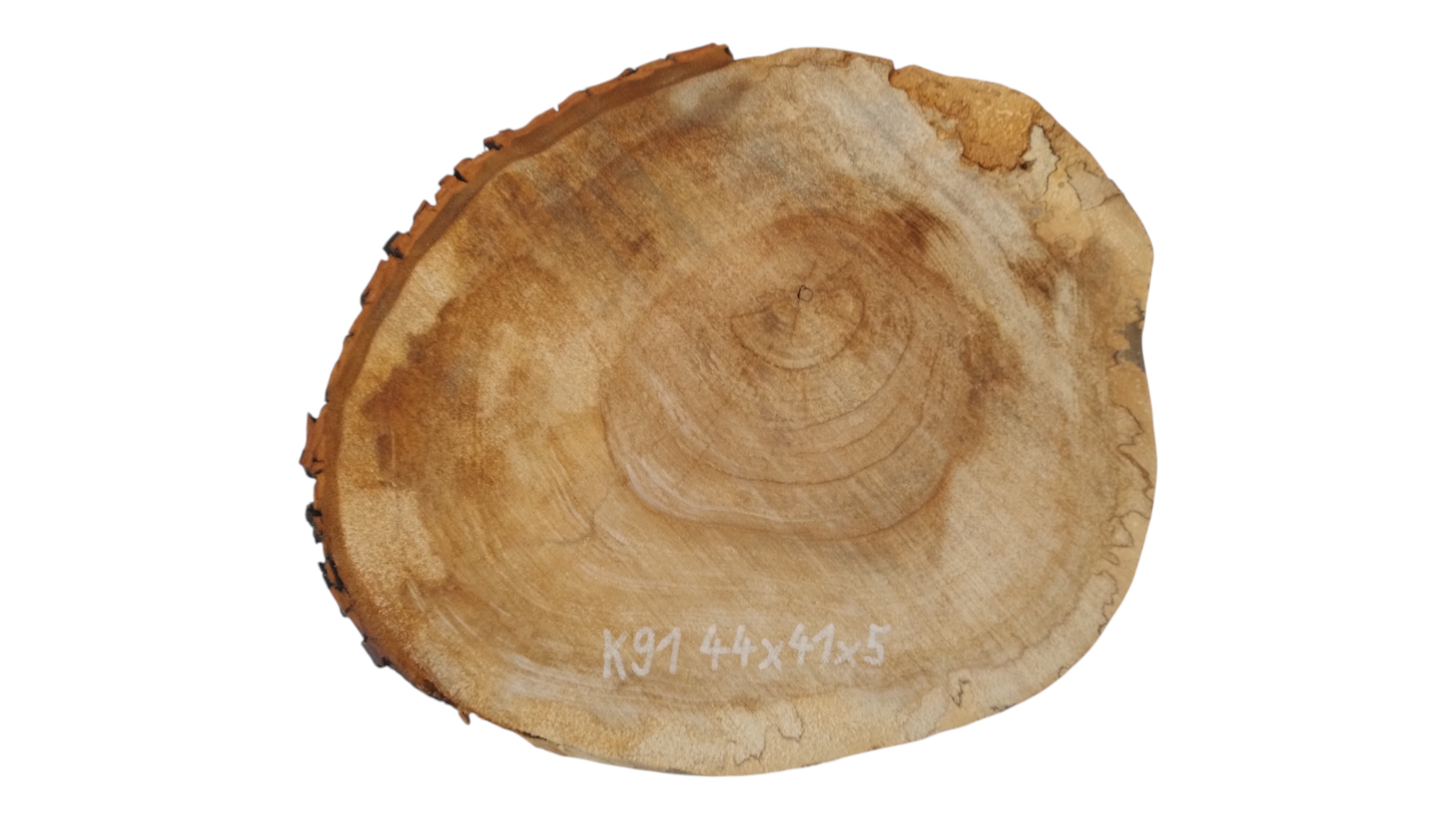 Zdjęcia robimy od razu po przecięciu, żeby jak najlepiej pokazać w jaki sposób można wyprowadzić plaster i podkreślić jego strukturę. W procesie suszenia naturalną rzeczą są pęknięcia materiału powstałe w skutek oddawania wilgoci oraz powierzchowna zmiana barwy. Zdjęcie nr 2 w galerii przedstawia stan plastra z lipca 2025 – wtedy została zmierzona podana wilgotność.
