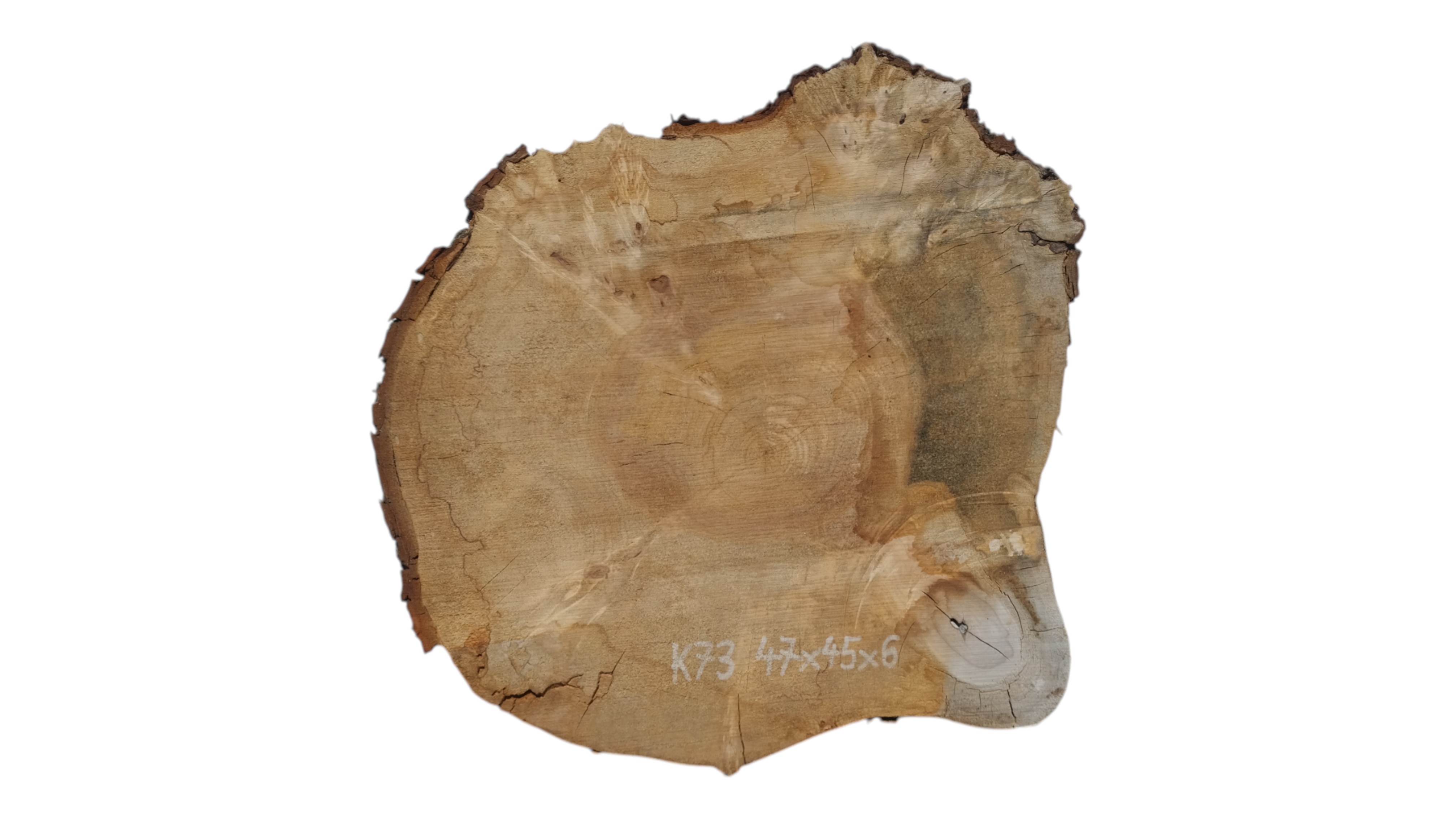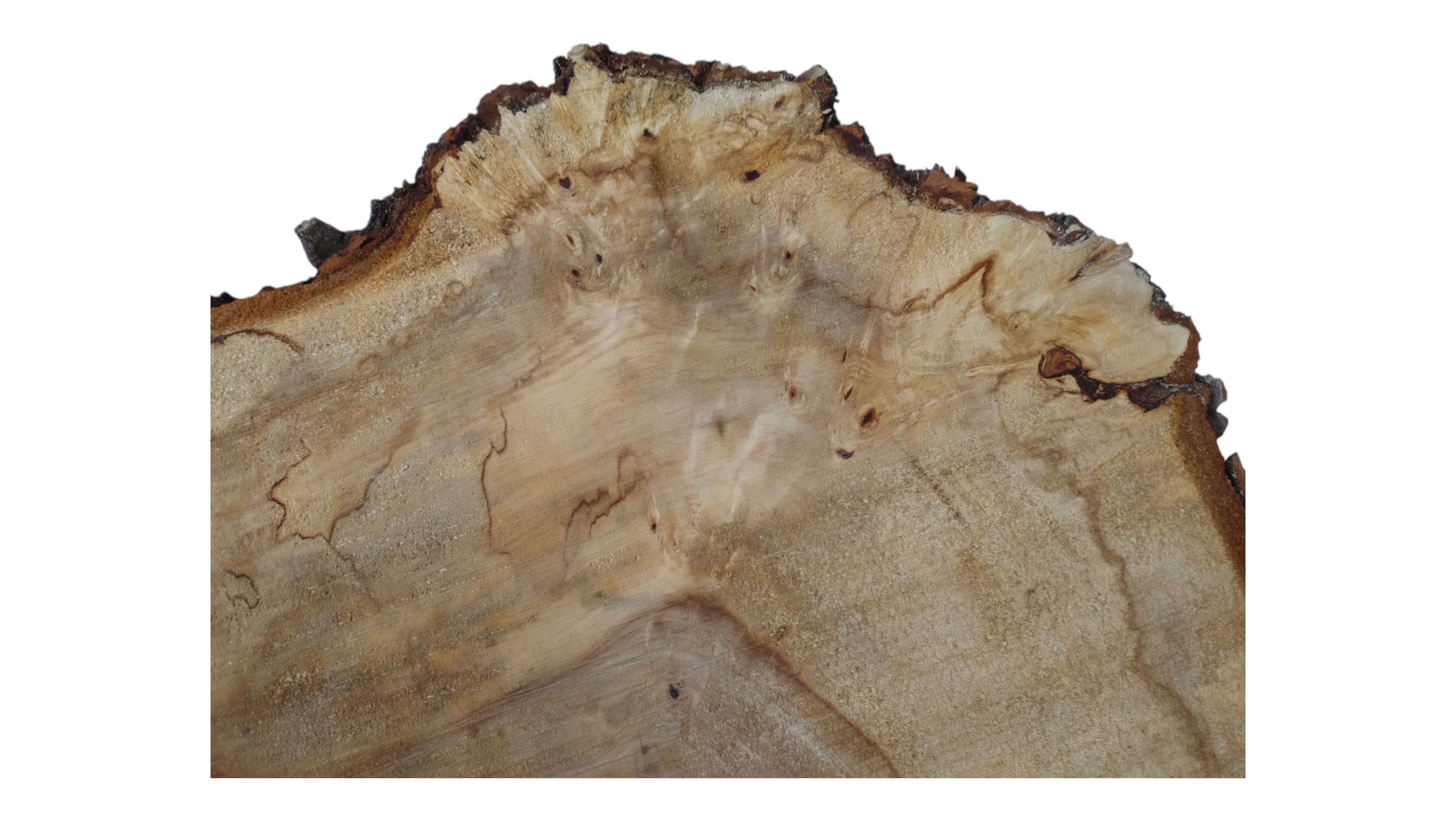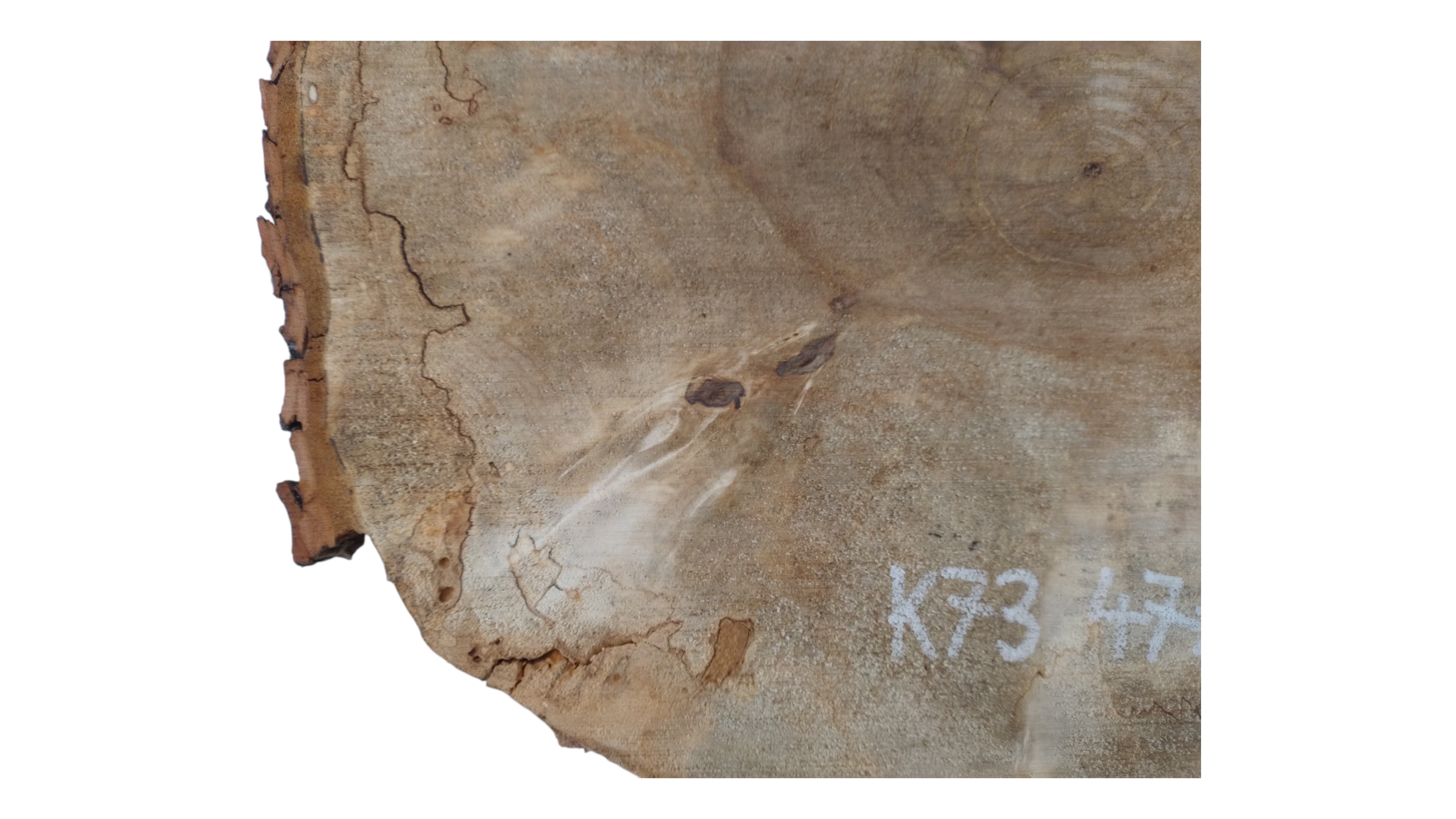 Zdjęcia robimy od razu po przecięciu, żeby jak najlepiej pokazać w jaki sposób można wyprowadzić plaster i podkreślić jego strukturę. W procesie suszenia naturalną rzeczą są pęknięcia materiału powstałe w skutek oddawania wilgoci oraz powierzchowna zmiana barwy. Zdjęcie nr 2 w galerii przedstawia stan plastra z lipca 2025 – wtedy została zmierzona podana wilgotność.