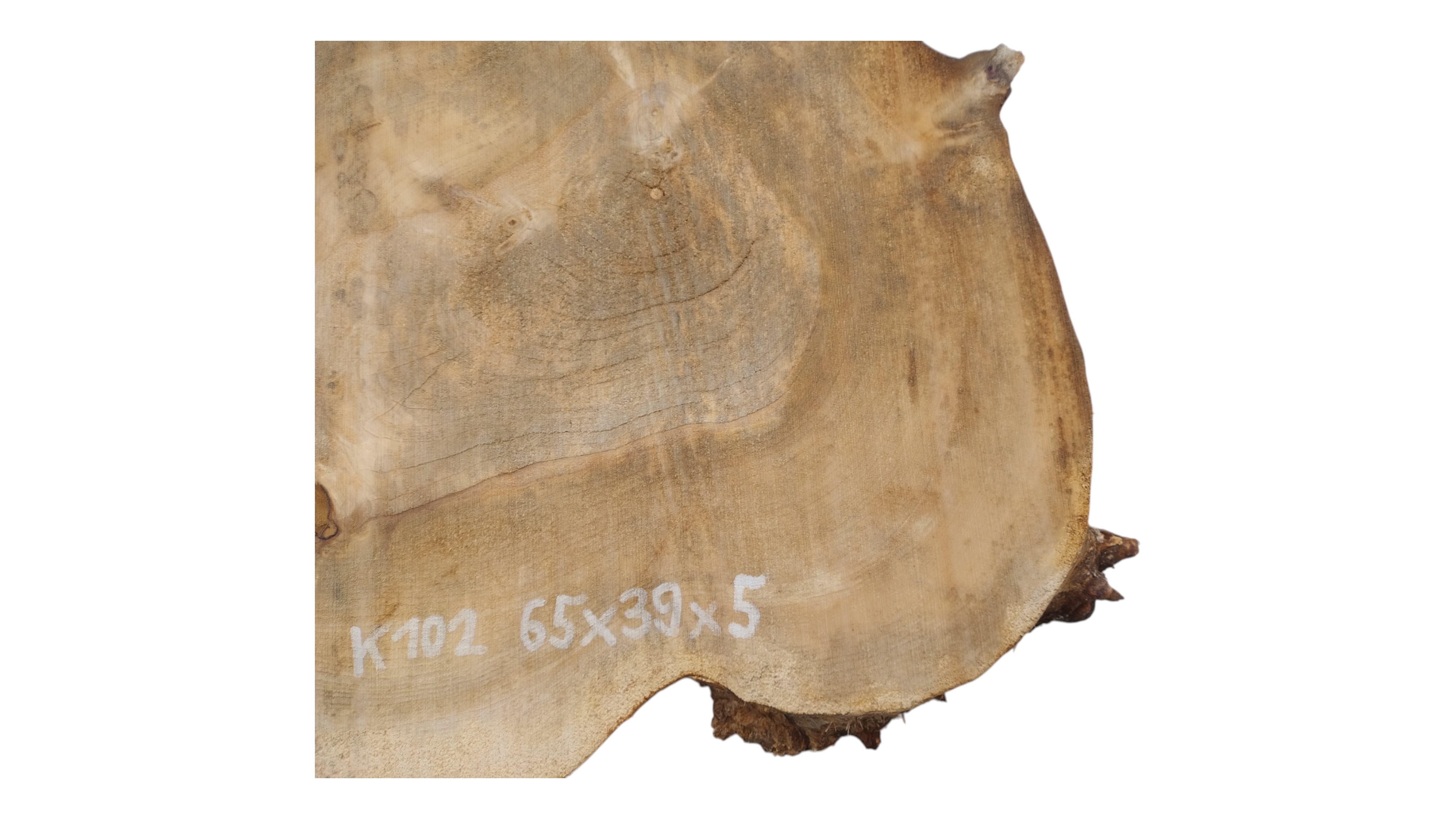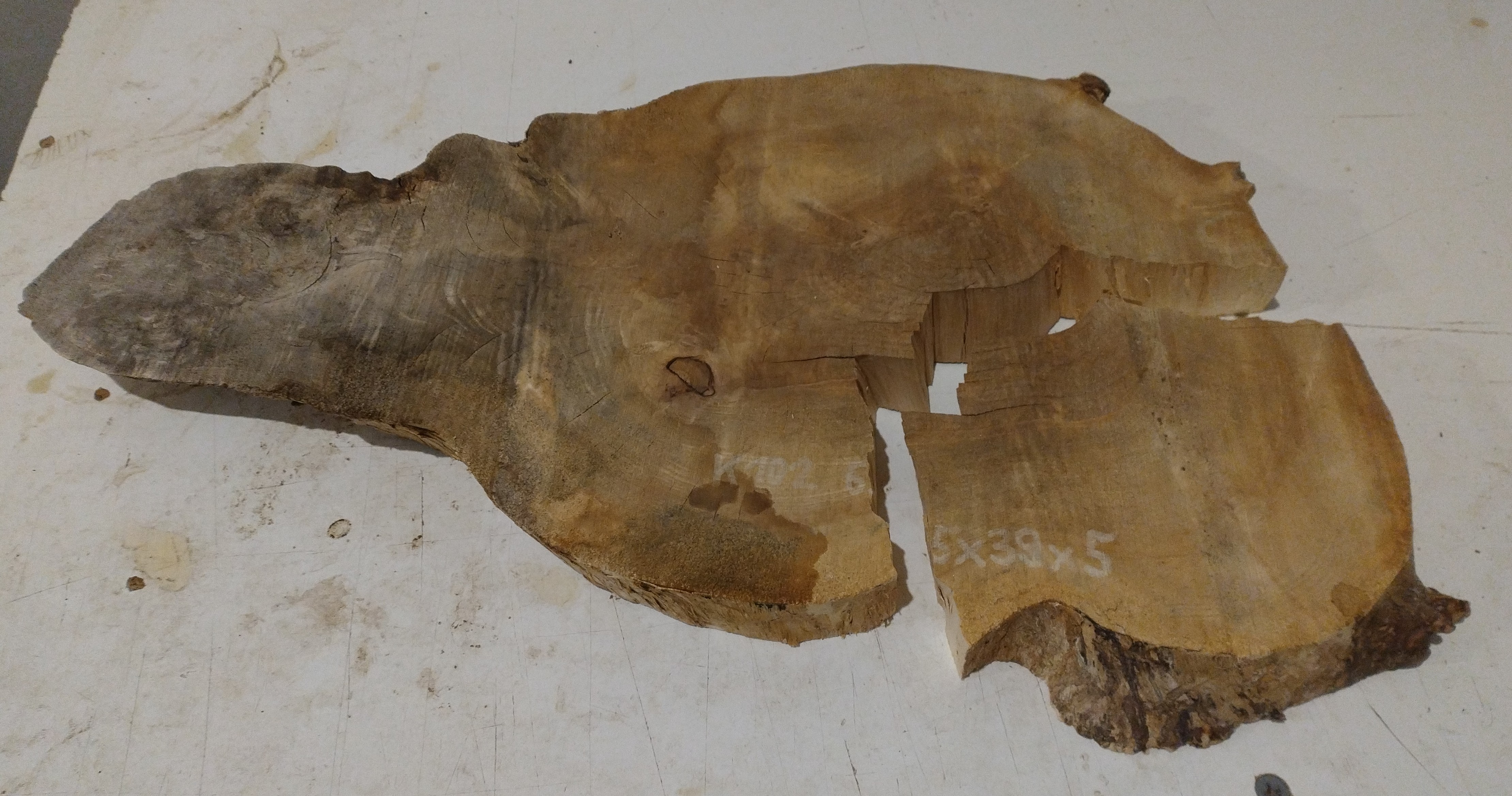 Zdjęcia robimy od razu po przecięciu, żeby jak najlepiej pokazać w jaki sposób można wyprowadzić plaster i podkreślić jego strukturę. W procesie suszenia naturalną rzeczą są pęknięcia materiału powstałe w skutek oddawania wilgoci oraz powierzchowna zmiana barwy. Zdjęcie nr 2 w galerii przedstawia stan plastra z lipca 2025 – wtedy została zmierzona podana wilgotność.