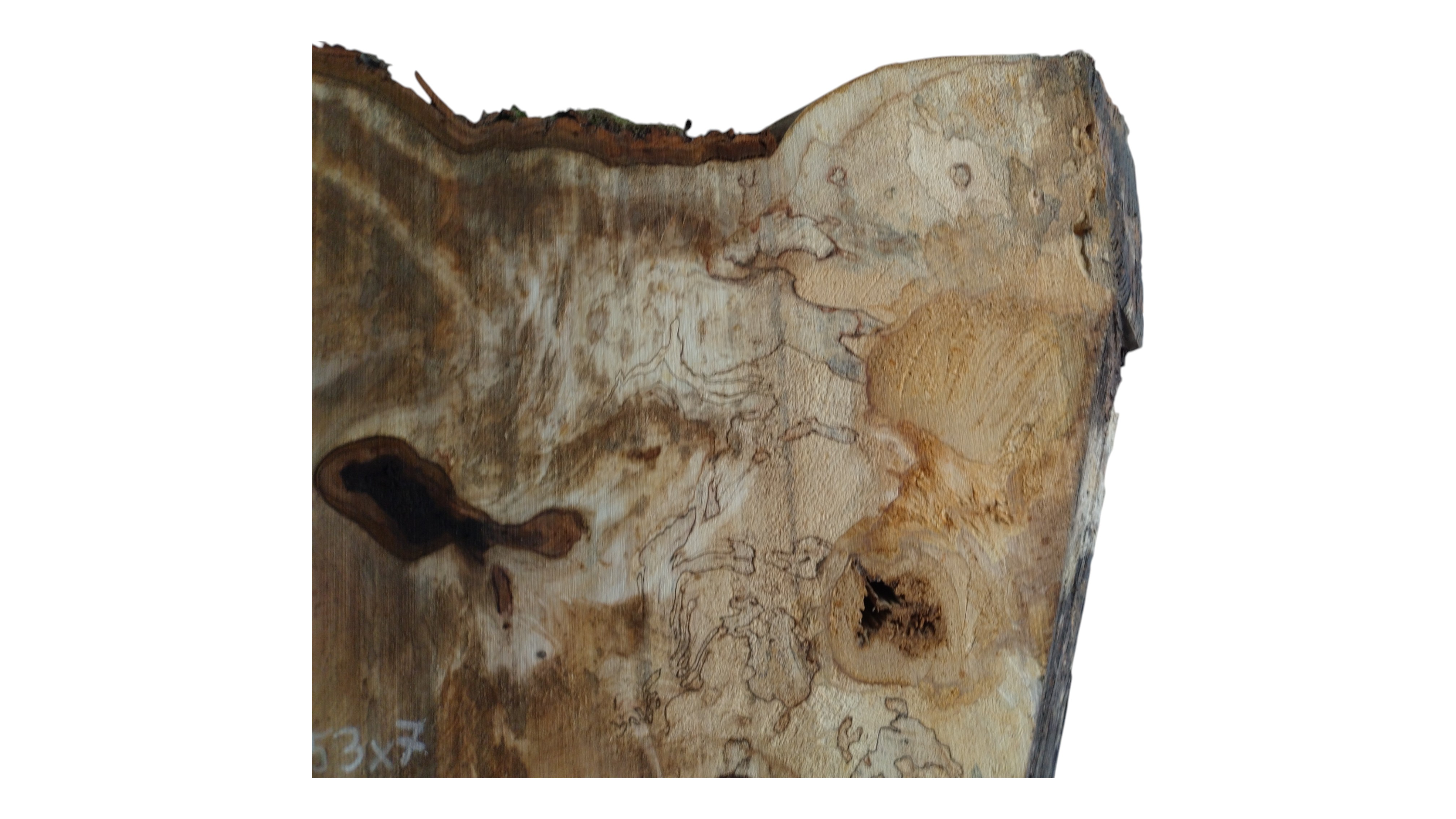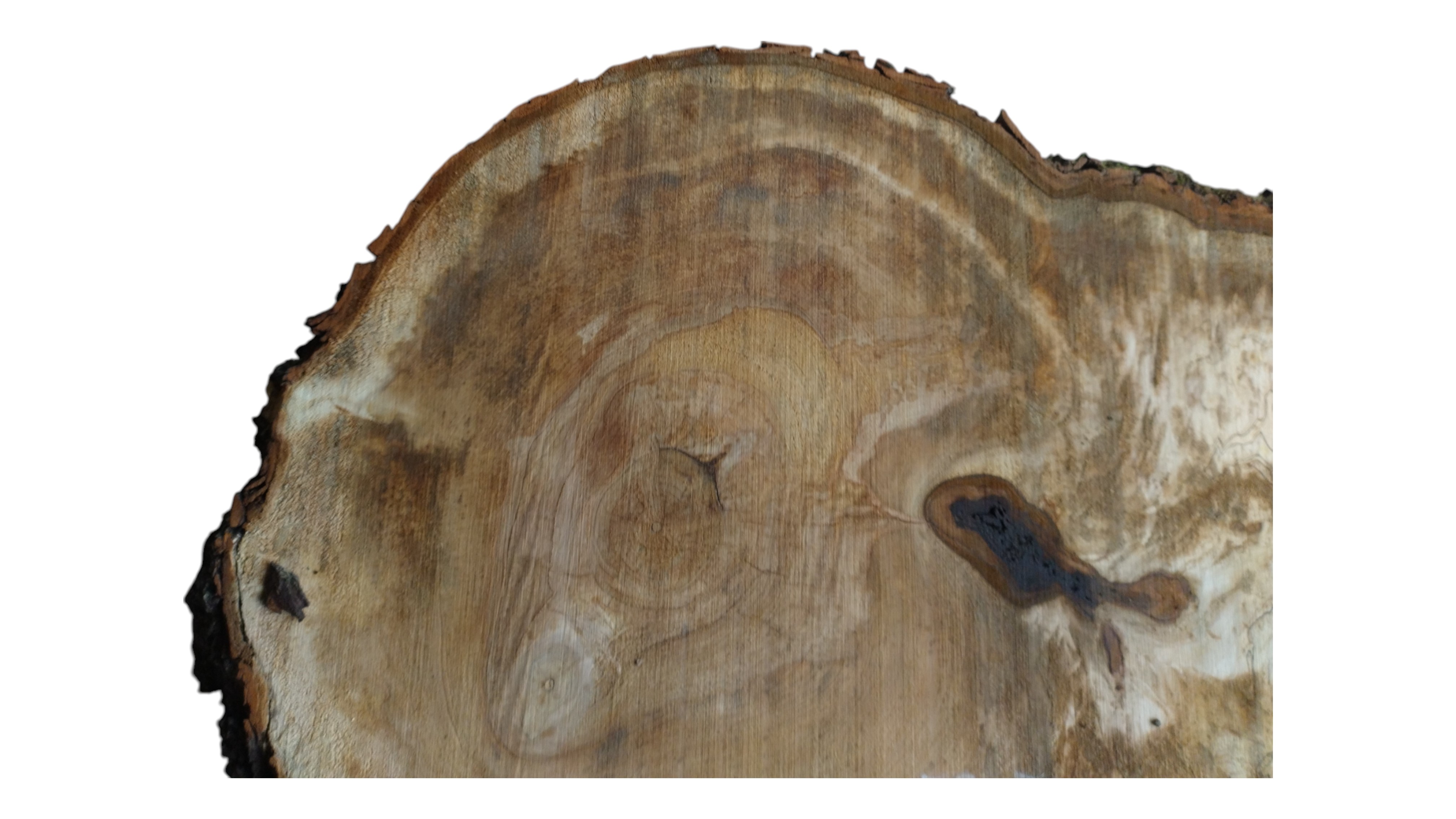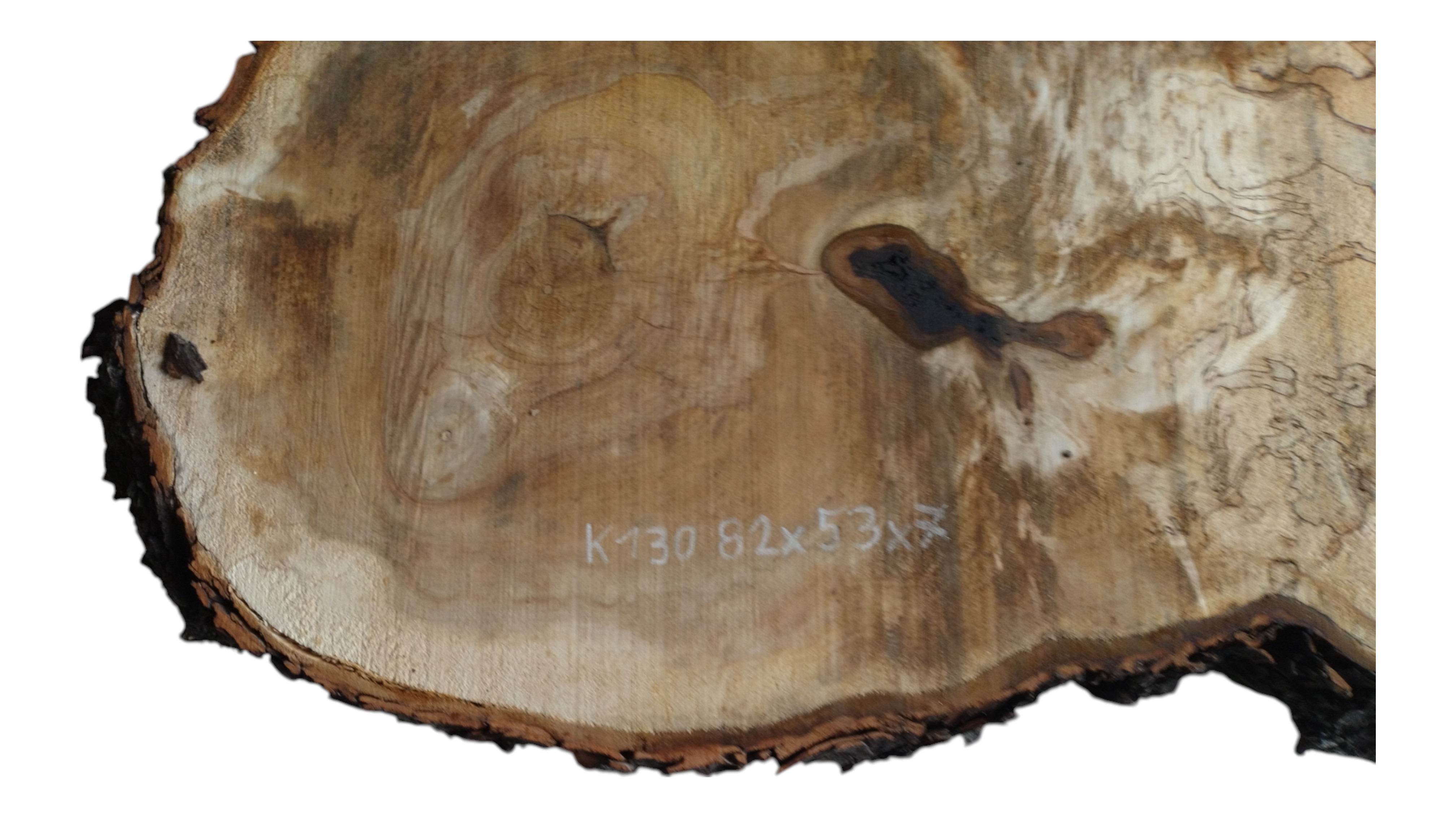 Zdjęcia robimy od razu po przecięciu, żeby jak najlepiej pokazać w jaki sposób można wyprowadzić plaster i podkreślić jego strukturę. W procesie suszenia naturalną rzeczą są pęknięcia materiału powstałe w skutek oddawania wilgoci oraz powierzchowna zmiana barwy. Zdjęcie nr 2 w galerii przedstawia stan plastra z lipca 2025 – wtedy została zmierzona podana wilgotność.