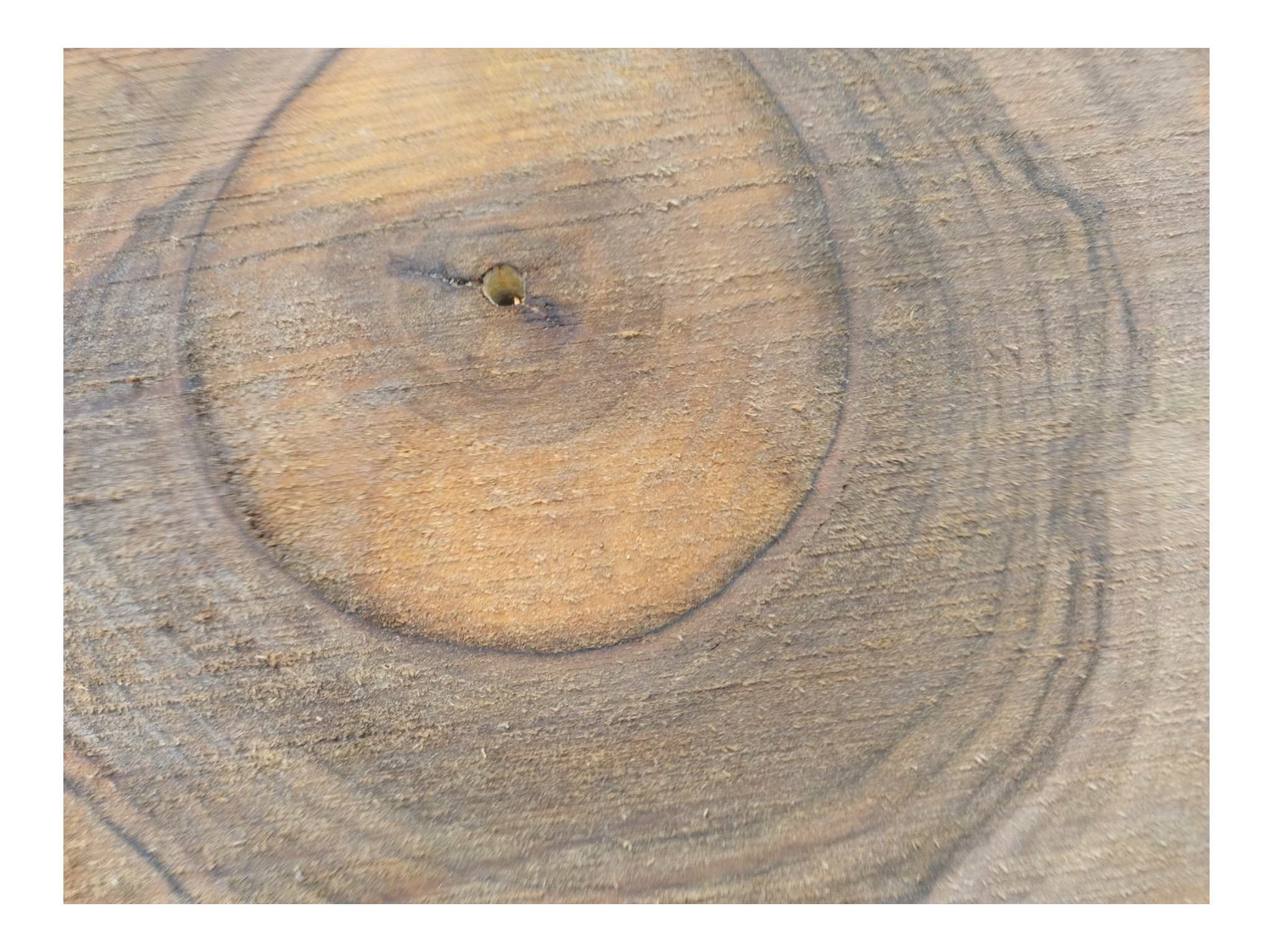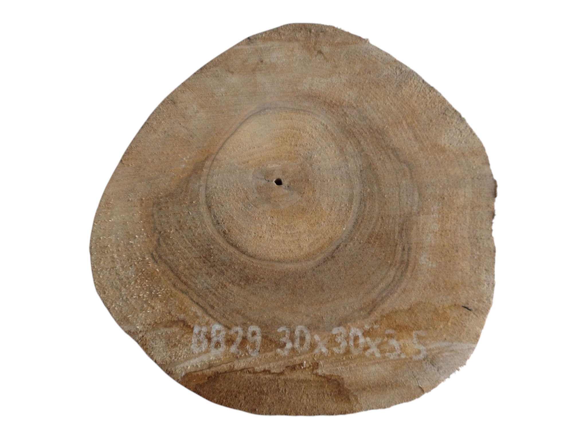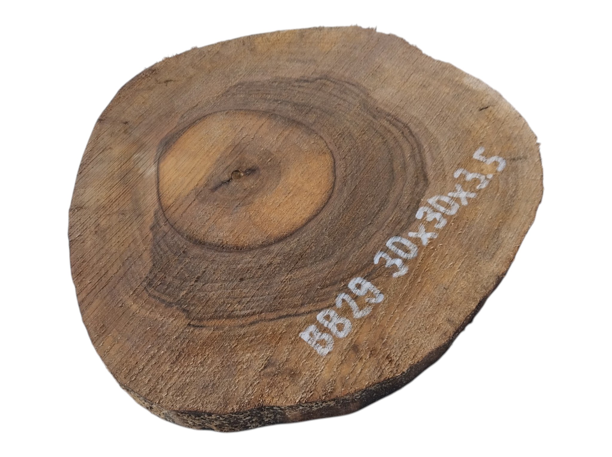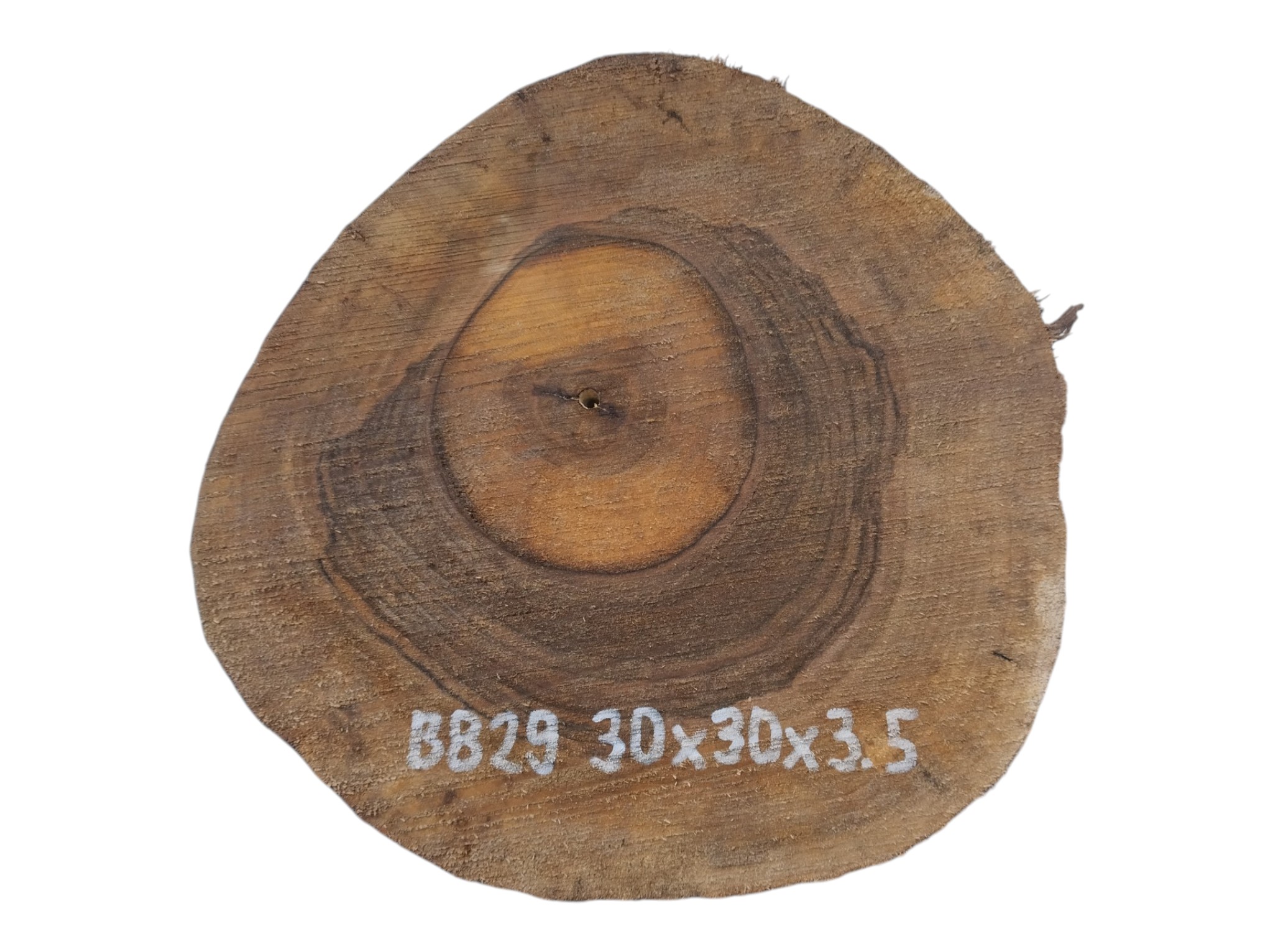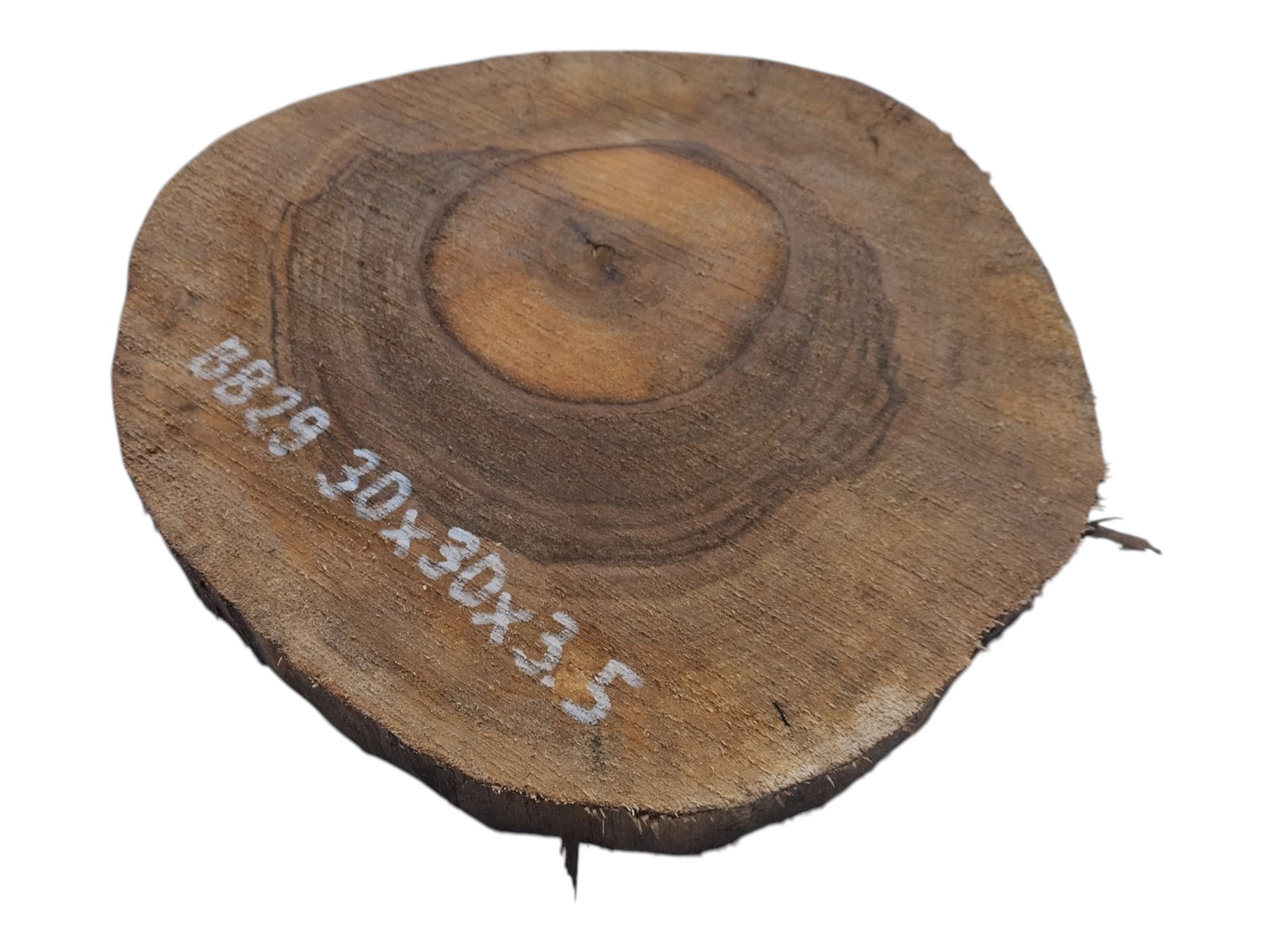 Zdjęcia robimy od razu po przecięciu, żeby jak najlepiej pokazać w jaki sposób można wyprowadzić plaster i podkreślić jego strukturę. W procesie suszenia naturalną rzeczą są pęknięcia materiału powstałe w skutek oddawania wilgoci oraz powierzchowna zmiana barwy. Zdjęcie nr 2 w galerii przedstawia stan plastra z kwietnia 2026 – wtedy została zmierzona podana wilgotność.