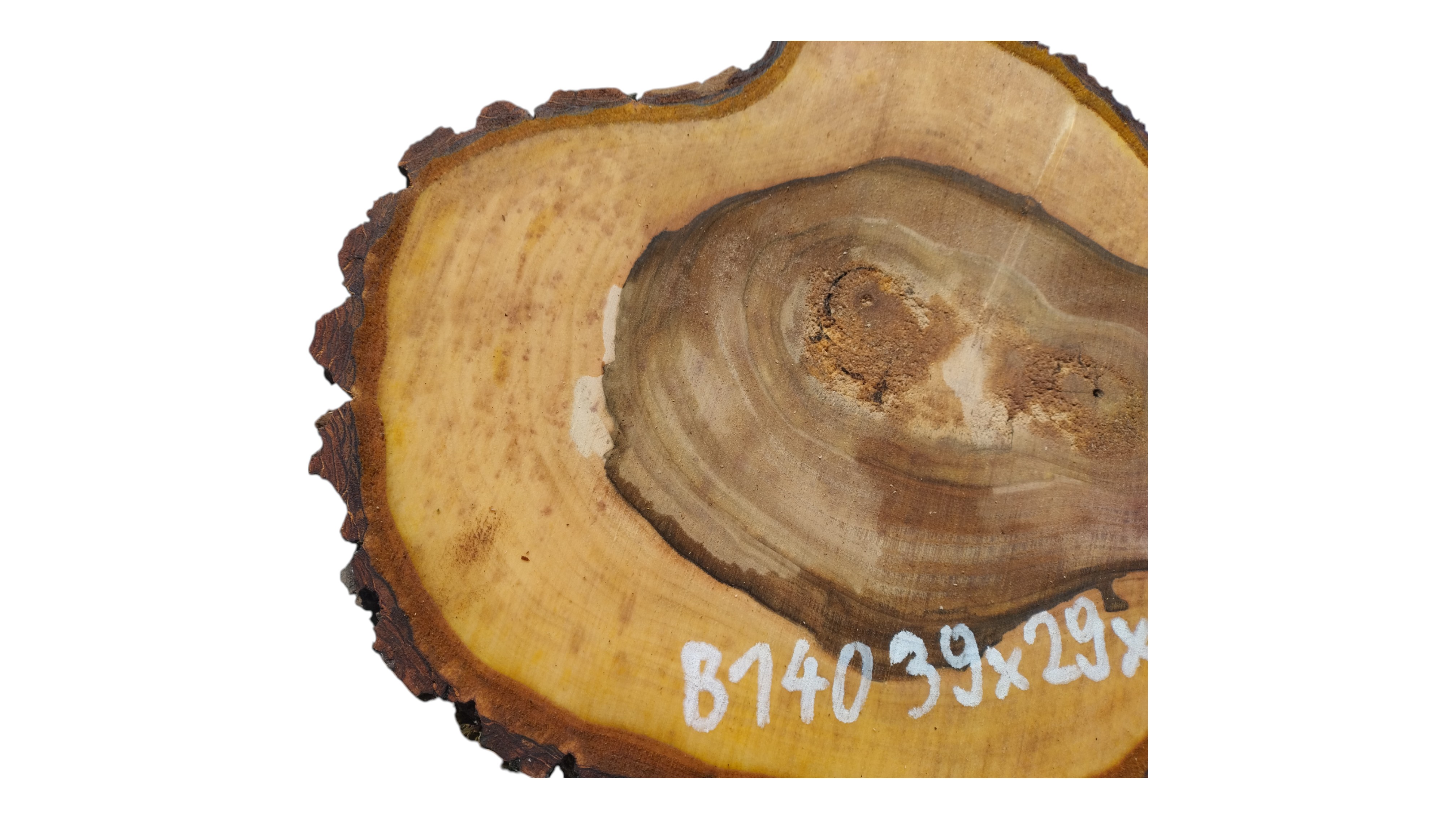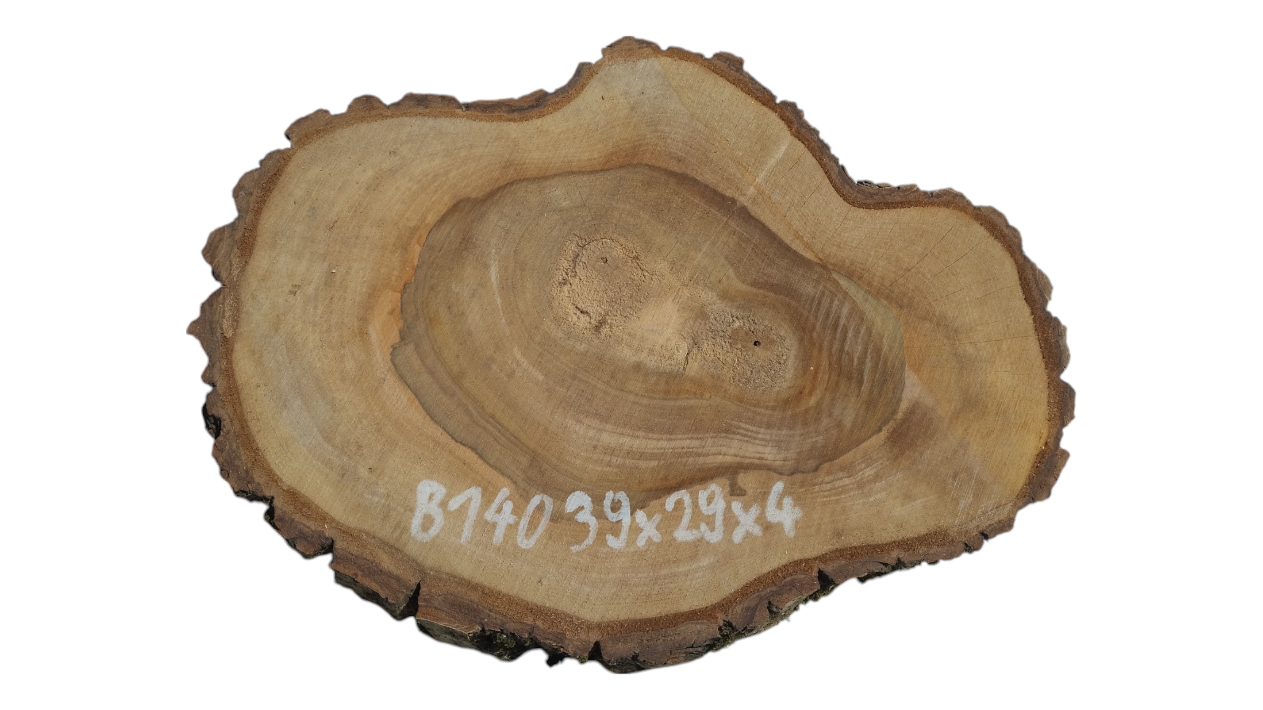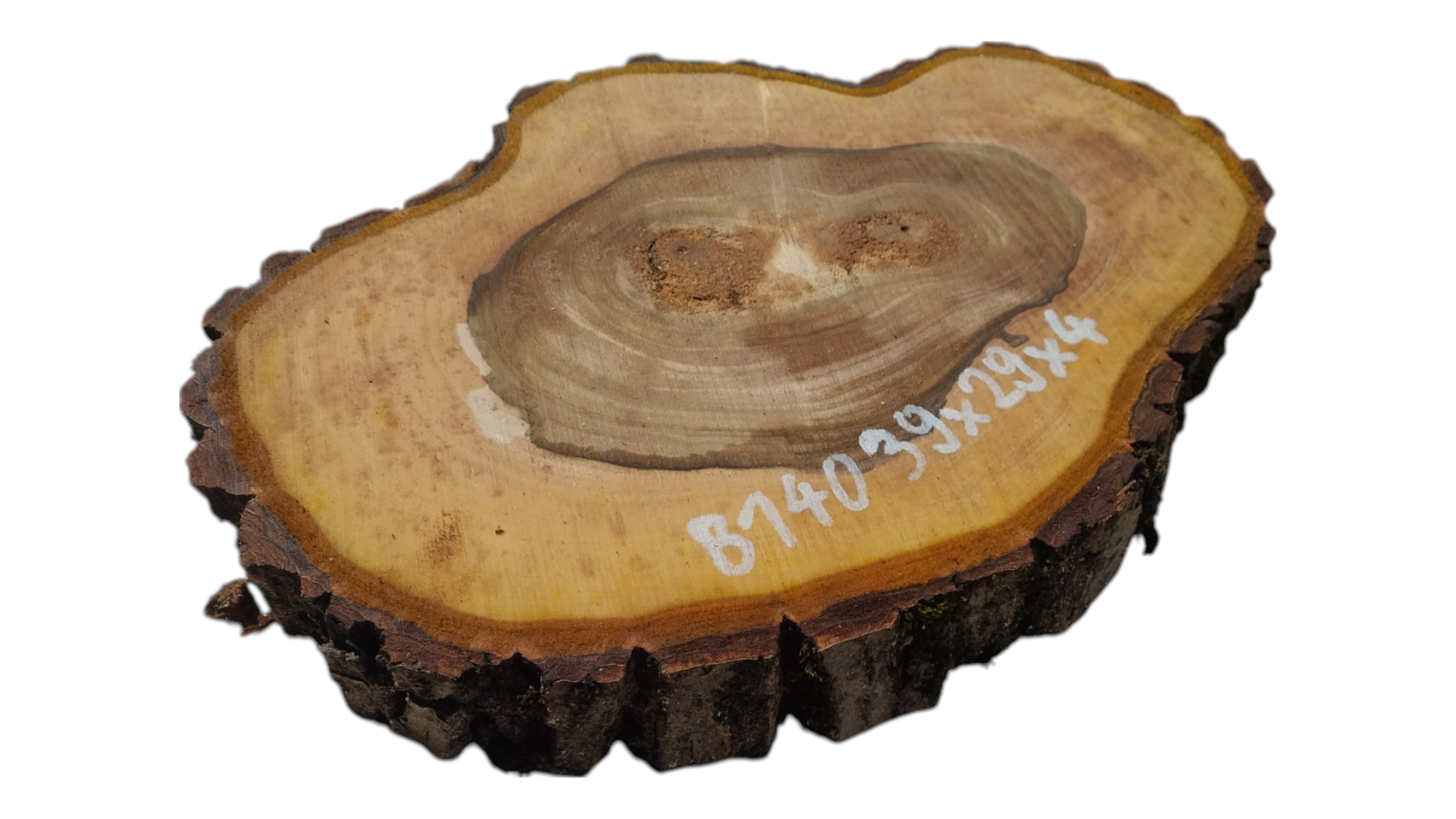 Zdjęcia robimy od razu po przecięciu, żeby jak najlepiej pokazać w jaki sposób można wyprowadzić plaster i podkreślić jego strukturę. W procesie suszenia naturalną rzeczą są pęknięcia materiału powstałe w skutek oddawania wilgoci oraz powierzchowna zmiana barwy. Zdjęcie nr 2 w galerii przedstawia stan plastra z czerwca 2025 – wtedy została zmierzona podana wilgotność.