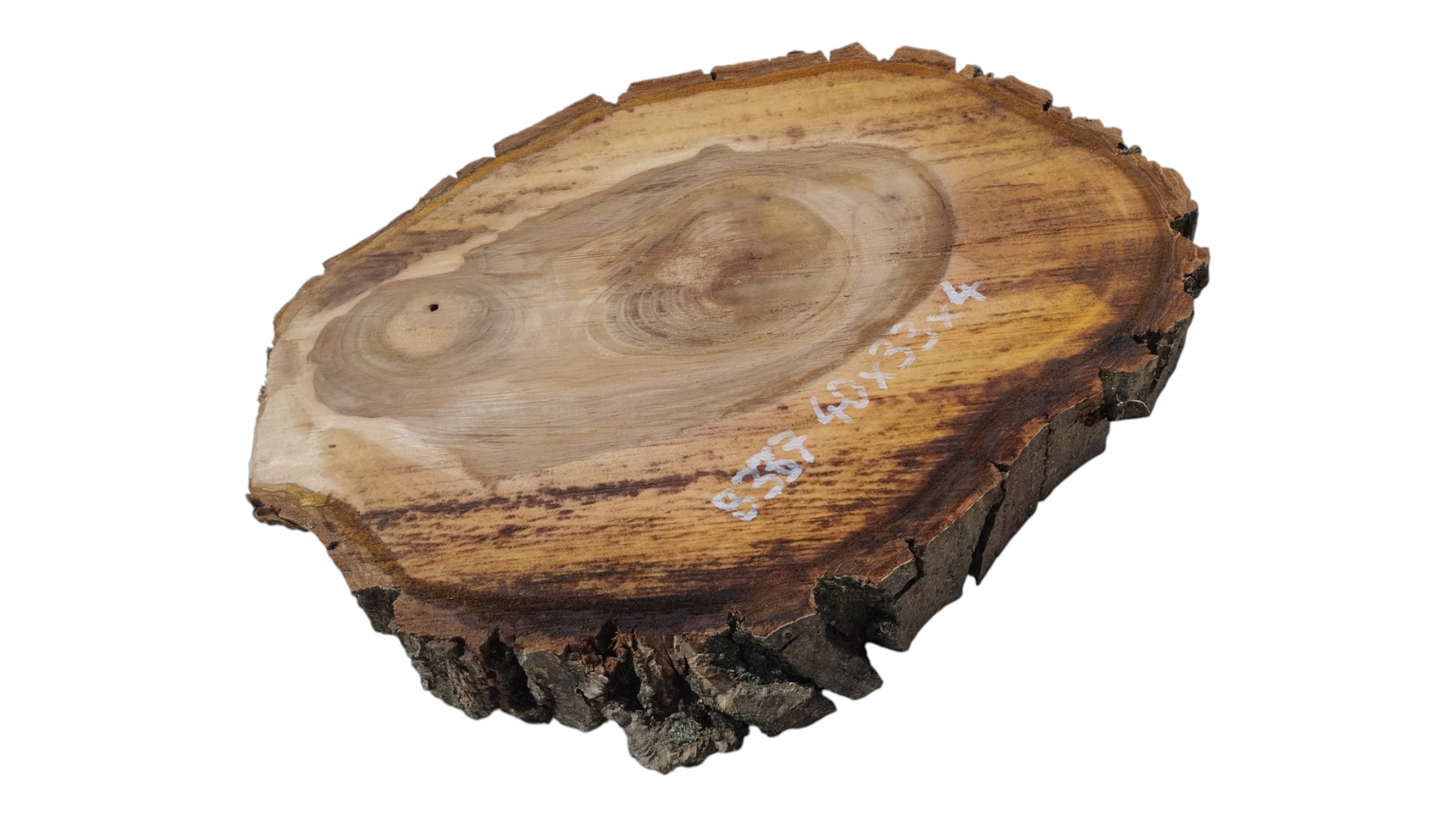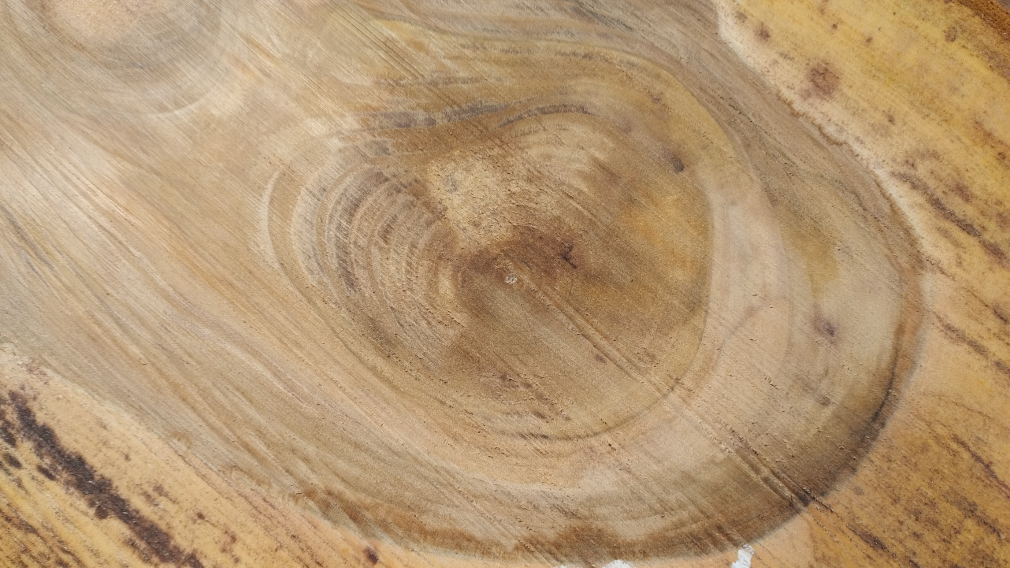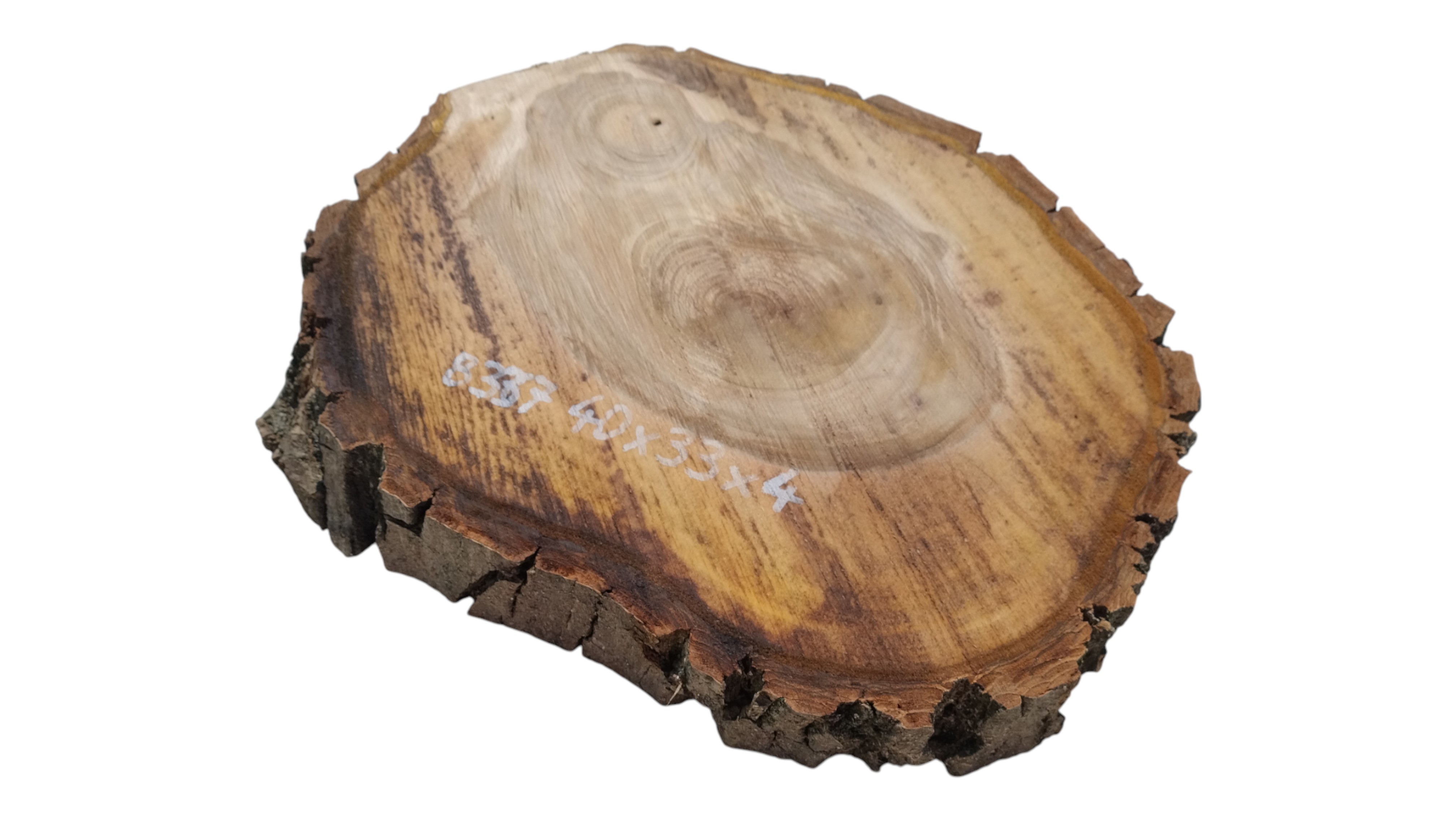 Zdjęcia robimy od razu po przecięciu, żeby jak najlepiej pokazać w jaki sposób można wyprowadzić plaster i podkreślić jego strukturę. W procesie suszenia naturalną rzeczą są pęknięcia materiału powstałe w skutek oddawania wilgoci oraz powierzchowna zmiana barwy. Zdjęcie nr 2 w galerii przedstawia stan plastra z grudnia 2025 – wtedy została zmierzona podana wilgotność.