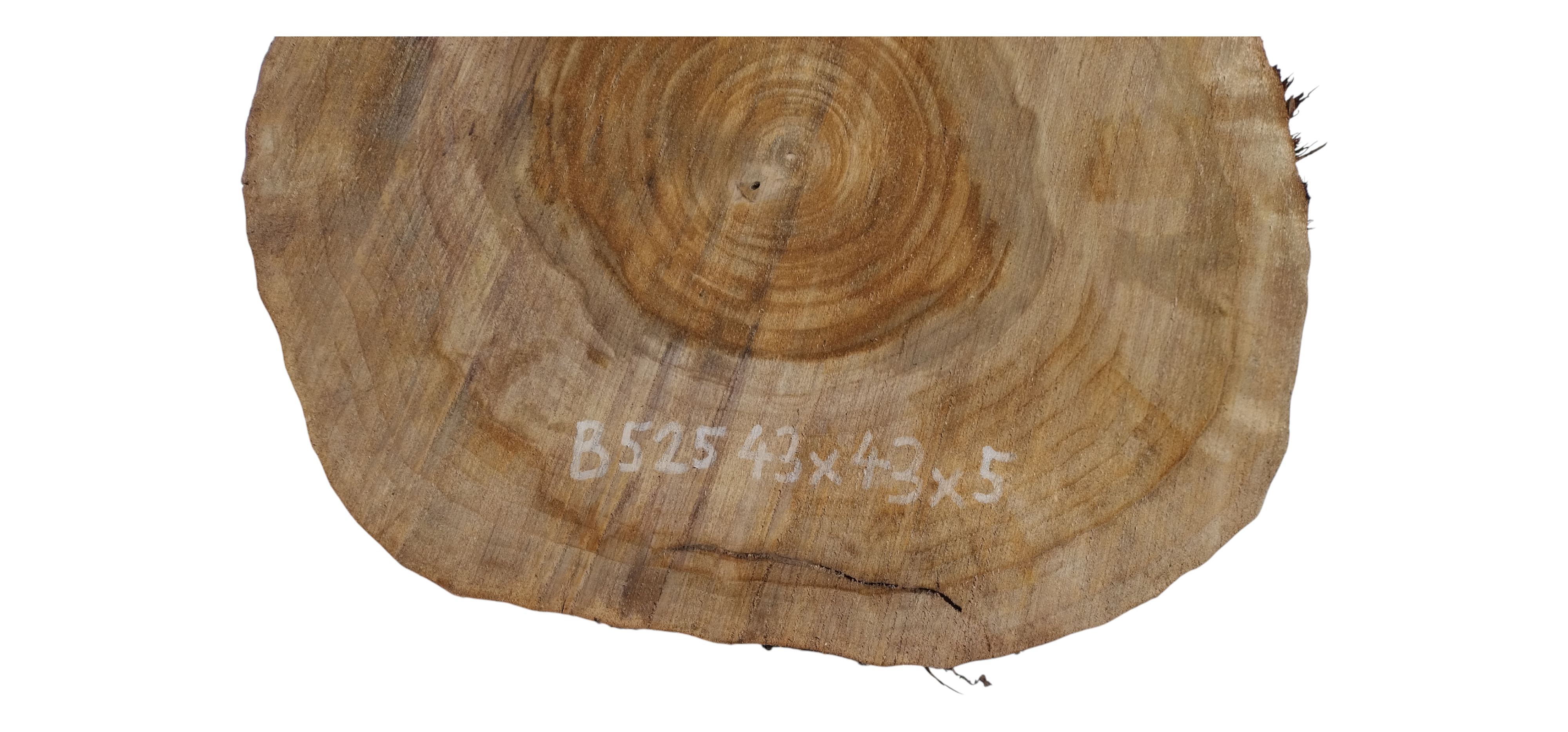 Zdjęcia robimy od razu po przecięciu, żeby jak najlepiej pokazać w jaki sposób można wyprowadzić plaster i podkreślić jego strukturę. W procesie suszenia naturalną rzeczą są pęknięcia materiału powstałe w skutek oddawania wilgoci oraz powierzchowna zmiana barwy. Zdjęcie nr 2 w galerii przedstawia stan plastra z grudnia 2025 – wtedy została zmierzona podana wilgotność.