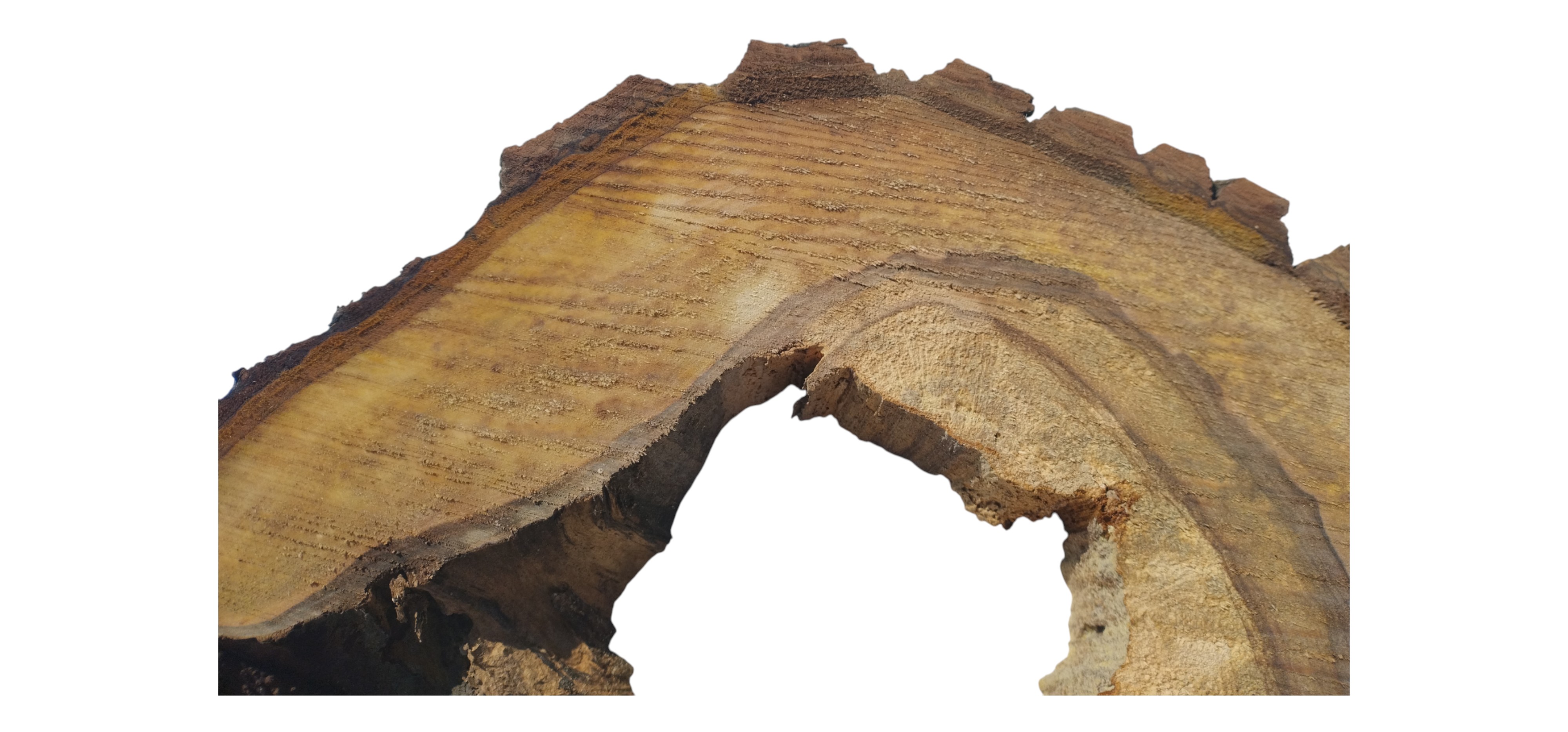 Zdjęcia robimy od razu po przecięciu, żeby jak najlepiej pokazać w jaki sposób można wyprowadzić plaster i podkreślić jego strukturę. W procesie suszenia naturalną rzeczą są pęknięcia materiału powstałe w skutek oddawania wilgoci oraz powierzchowna zmiana barwy. Zdjęcie nr 2 w galerii przedstawia stan plastra z lutego 2026 – wtedy została zmierzona podana wilgotność.