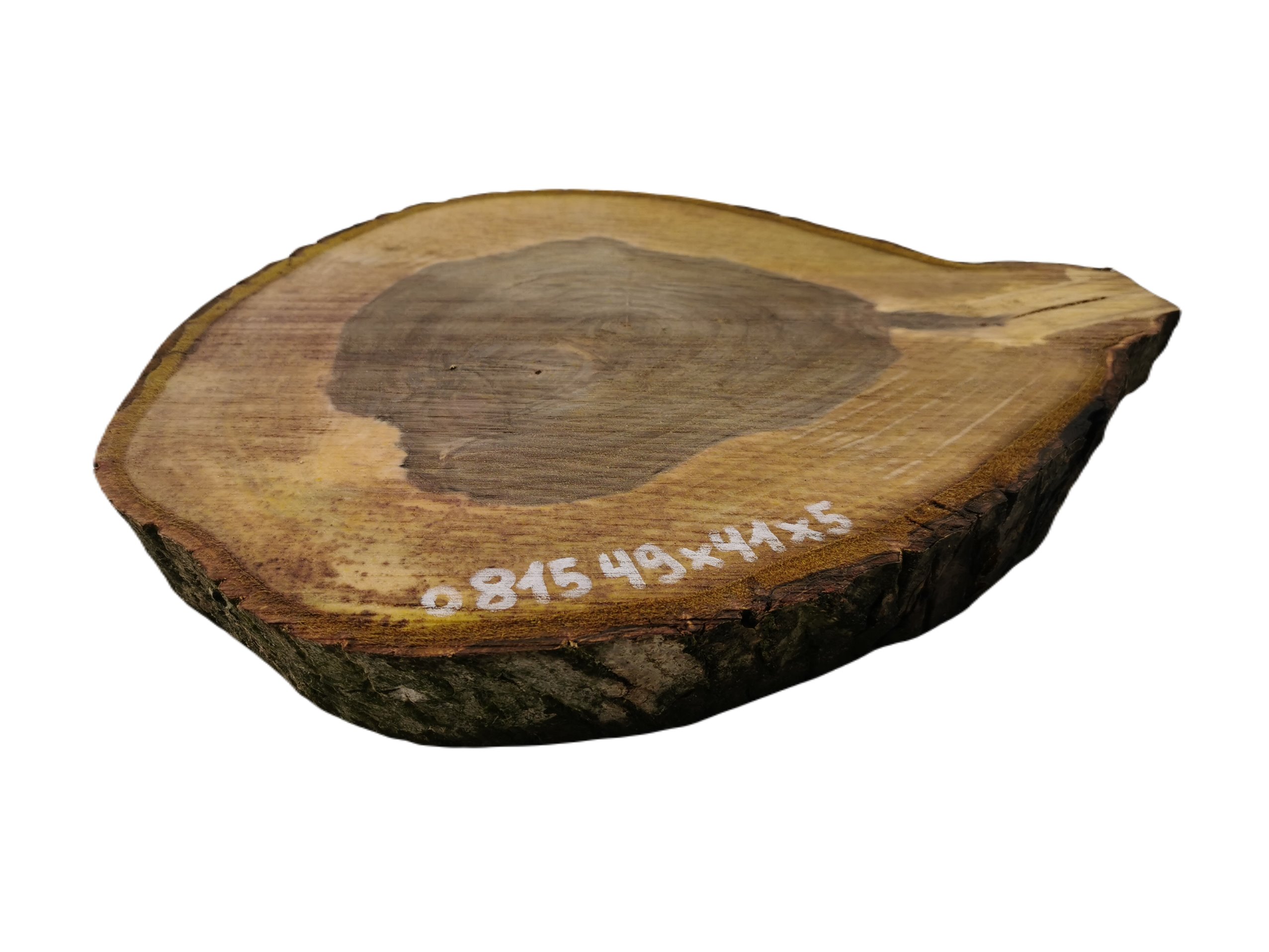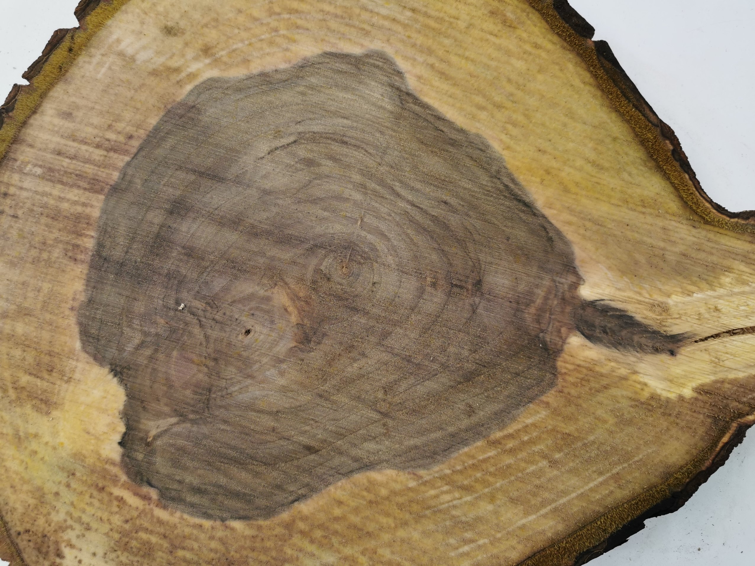 Zdjęcia robimy od razu po przecięciu, żeby jak najlepiej pokazać w jaki sposób można wyprowadzić plaster i podkreślić jego strukturę. W procesie suszenia naturalną rzeczą są pęknięcia materiału powstałe w skutek oddawania wilgoci oraz powierzchowna zmiana barwy. Zdjęcie nr 2 w galerii przedstawia stan plastra z kwietnia 2024.