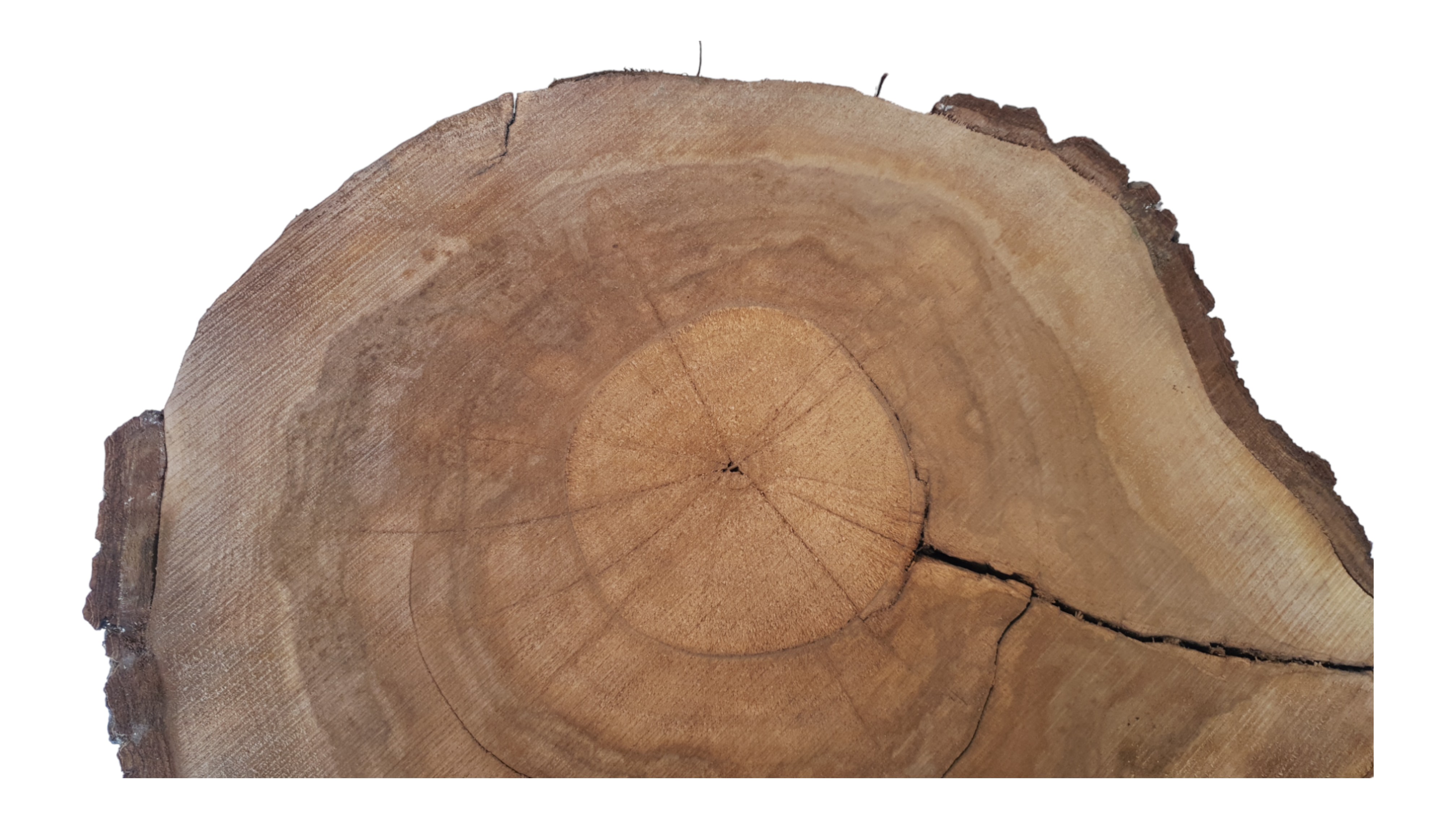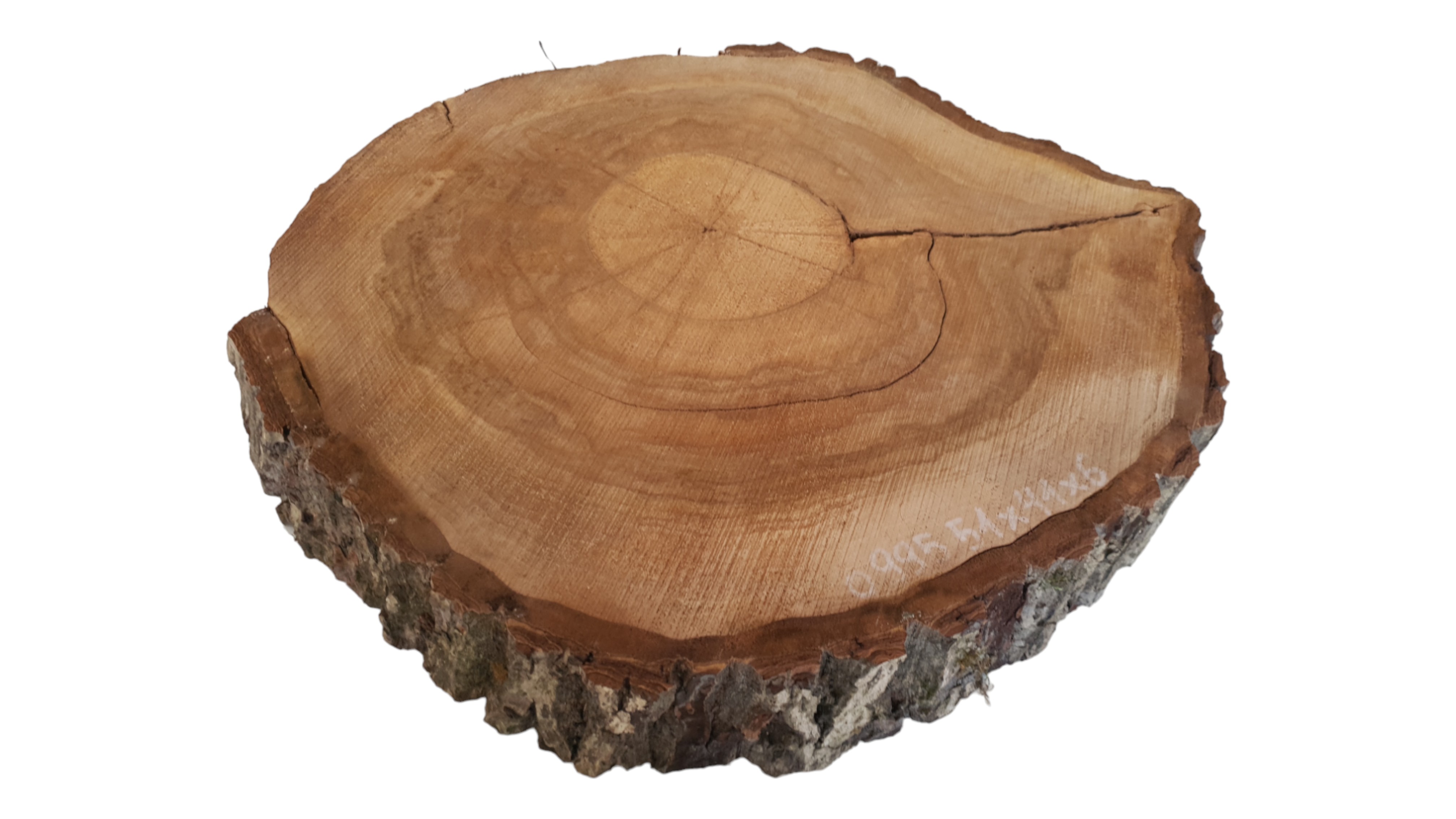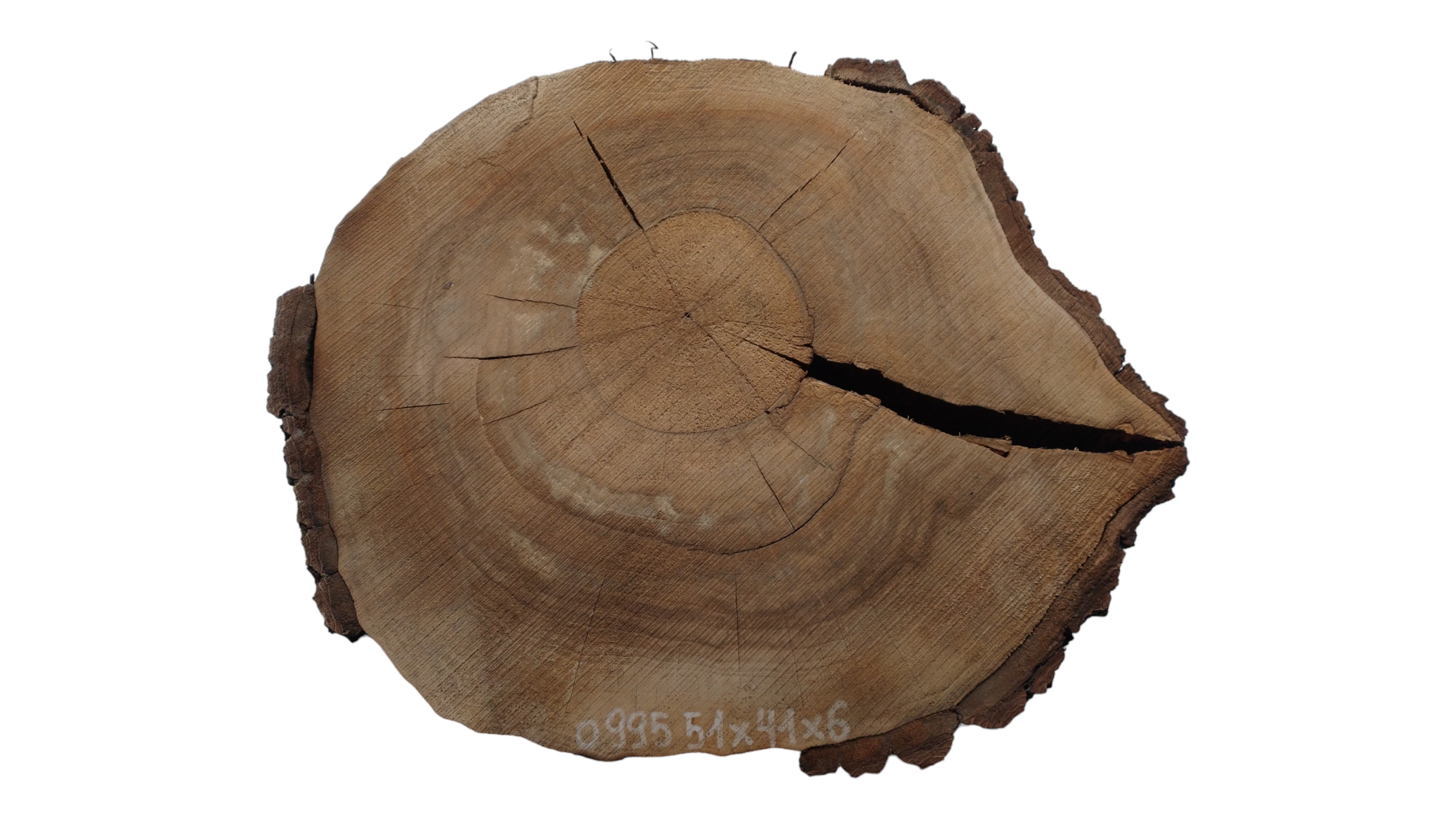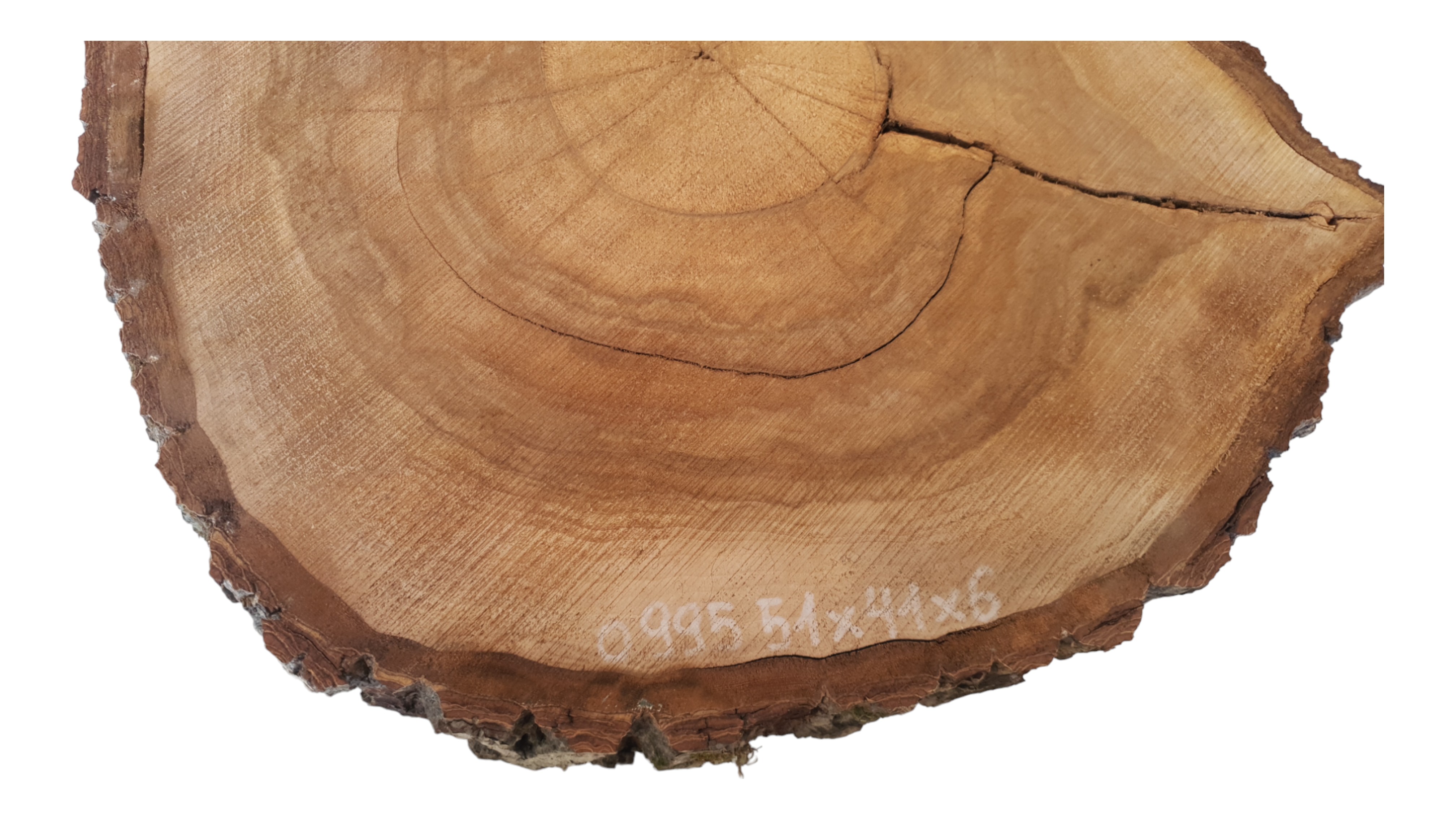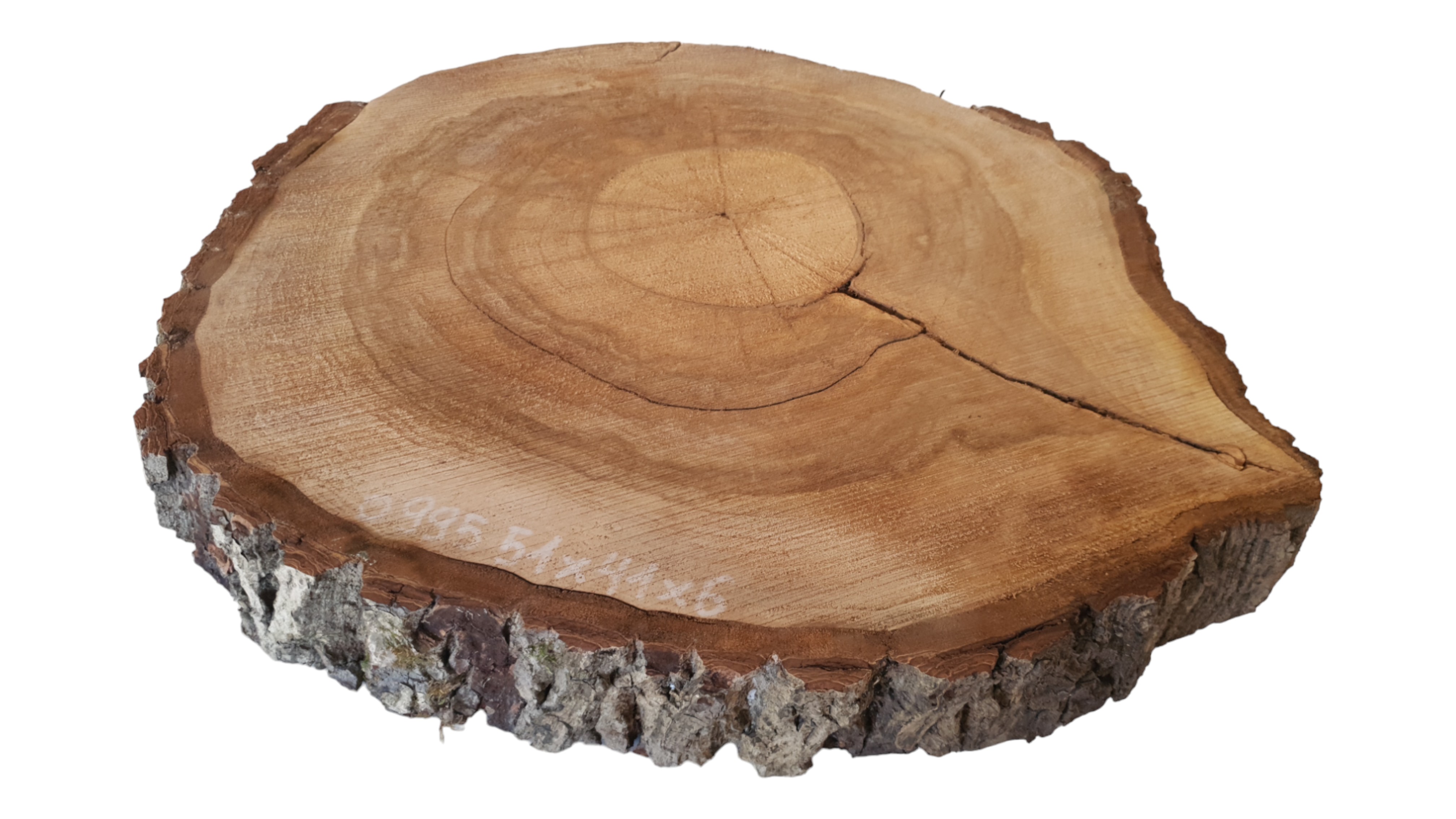 Zdjęcia robimy od razu po przecięciu, żeby jak najlepiej pokazać w jaki sposób można wyprowadzić plaster i podkreślić jego strukturę. W procesie suszenia naturalną rzeczą są pęknięcia materiału powstałe w skutek oddawania wilgoci oraz powierzchowna zmiana barwy. Zdjęcie nr 2 w galerii przedstawia stan plastra z czerwca 2024.