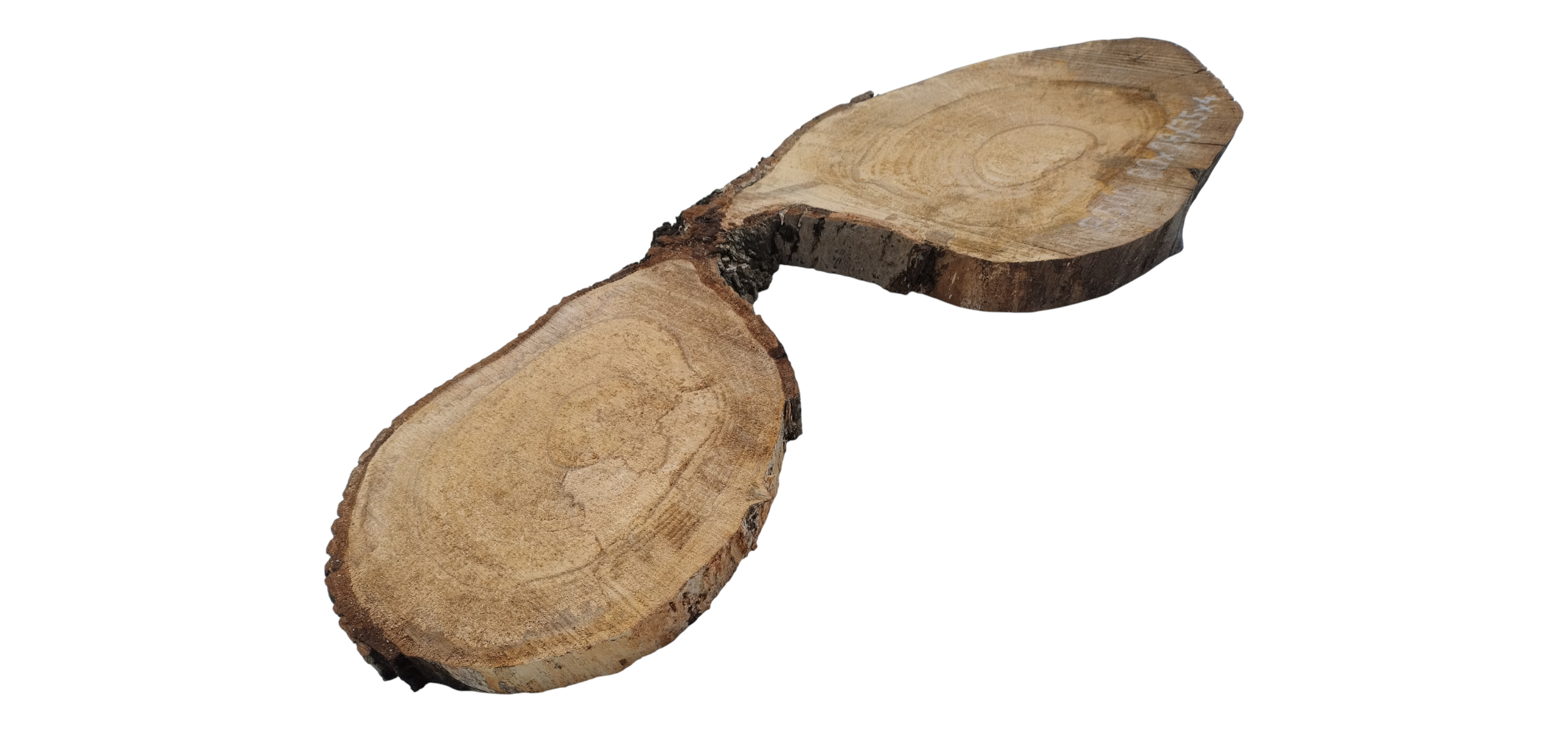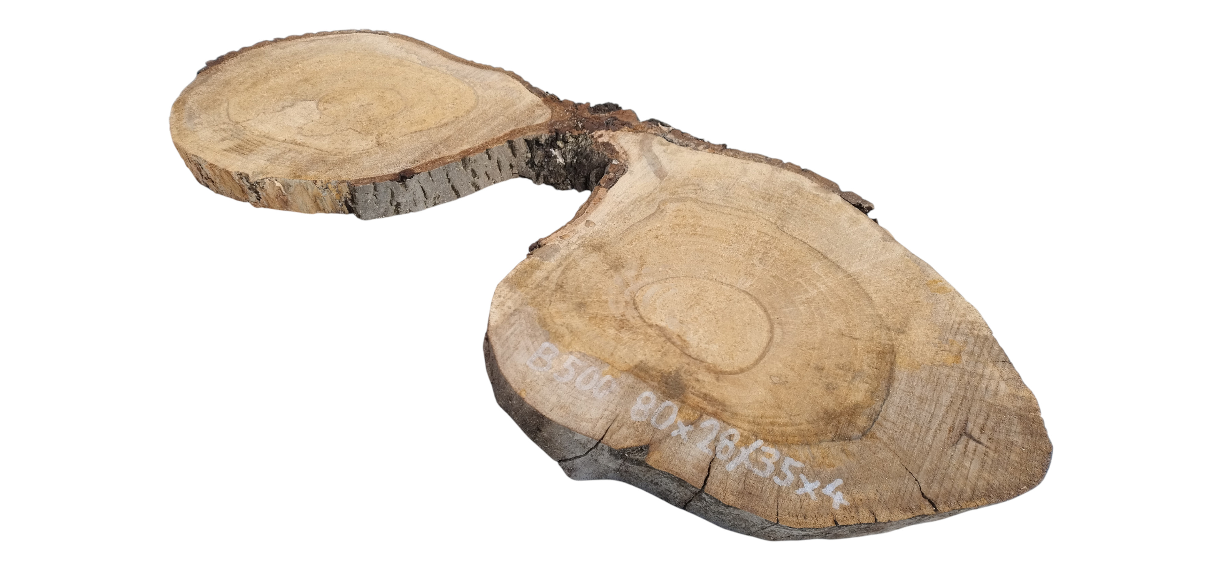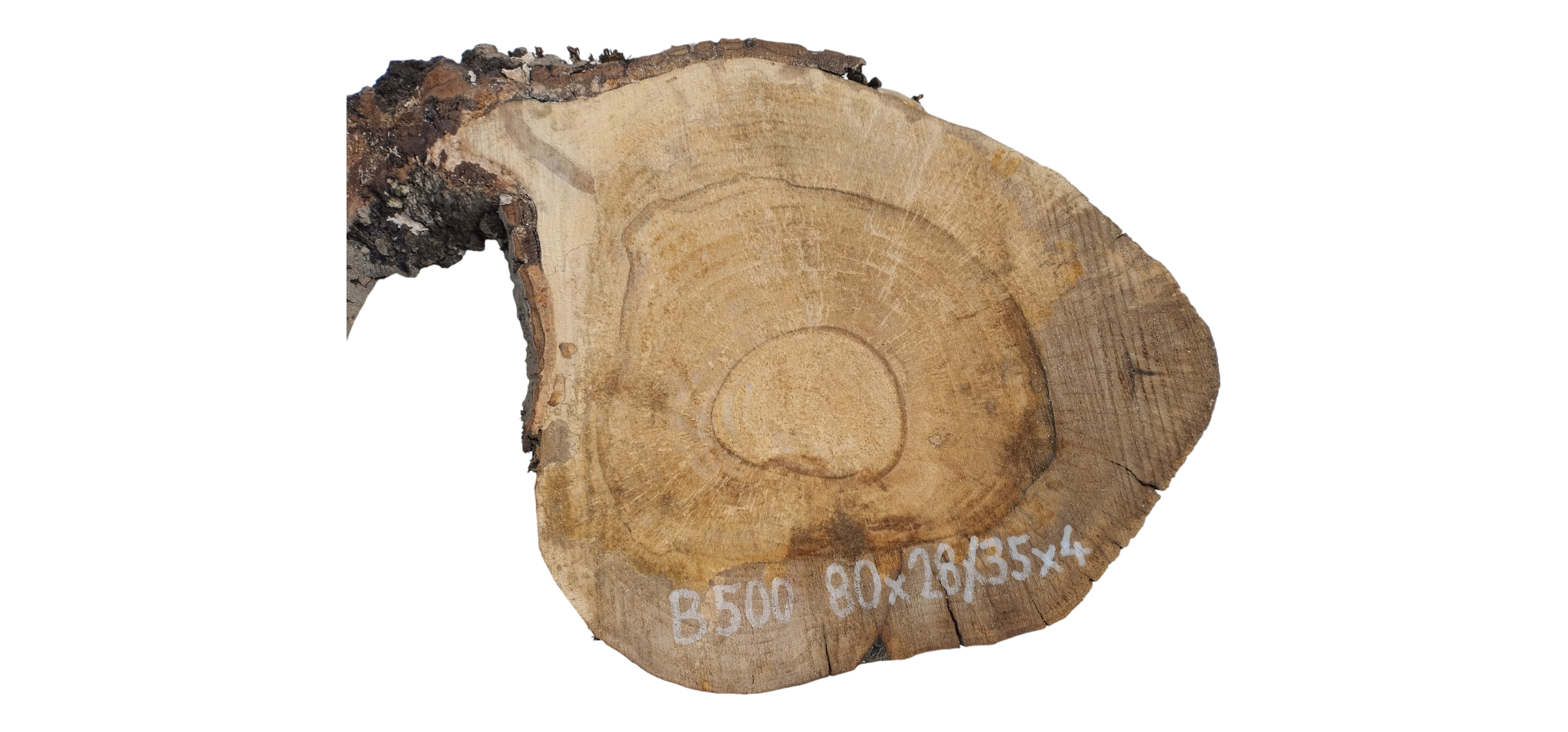 Zdjęcia robimy od razu po przecięciu, żeby jak najlepiej pokazać w jaki sposób można wyprowadzić plaster i podkreślić jego strukturę. W procesie suszenia naturalną rzeczą są pęknięcia materiału powstałe w skutek oddawania wilgoci oraz powierzchowna zmiana barwy. Zdjęcie nr 2 w galerii przedstawia stan plastra z grudnia 2025 – wtedy została zmierzona podana wilgotność.