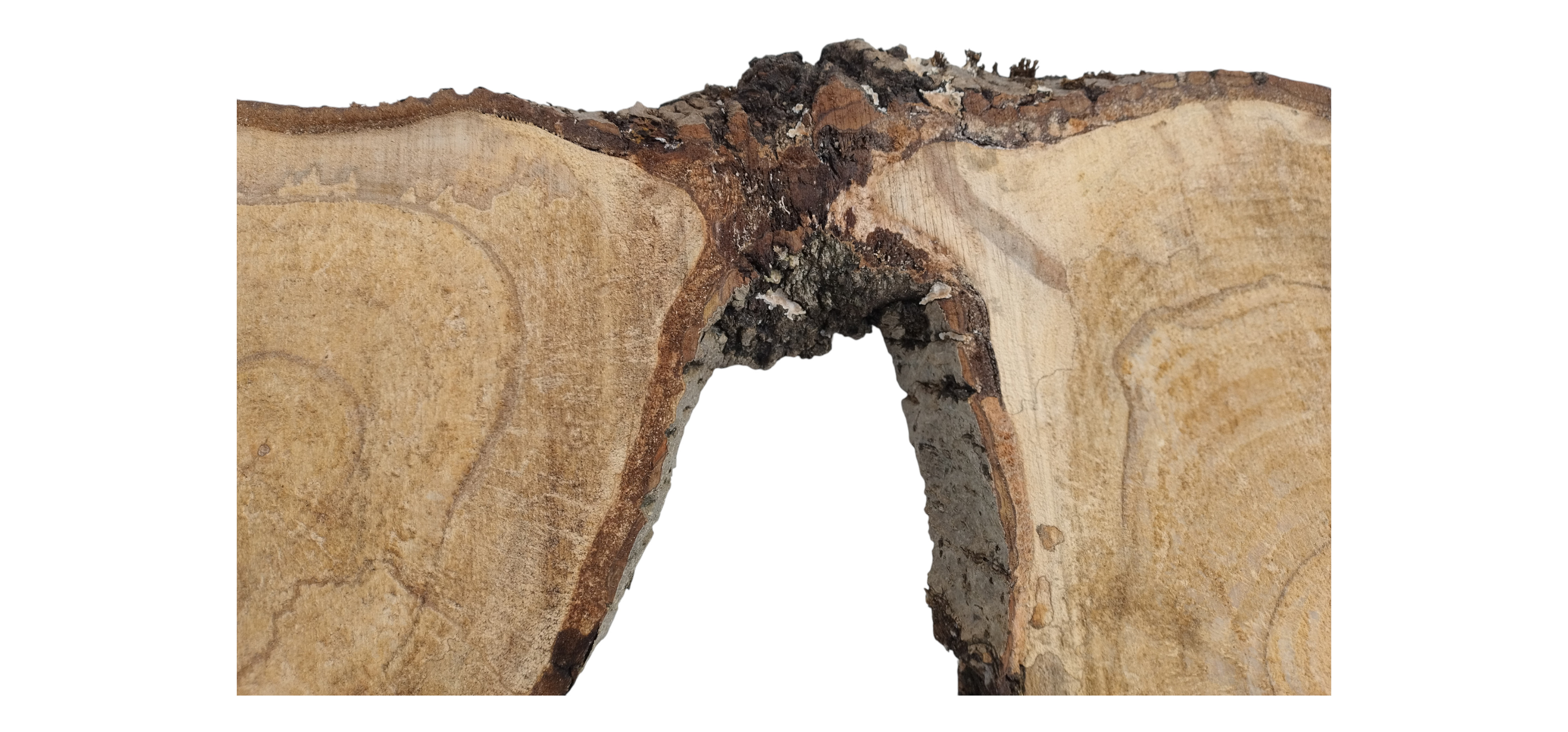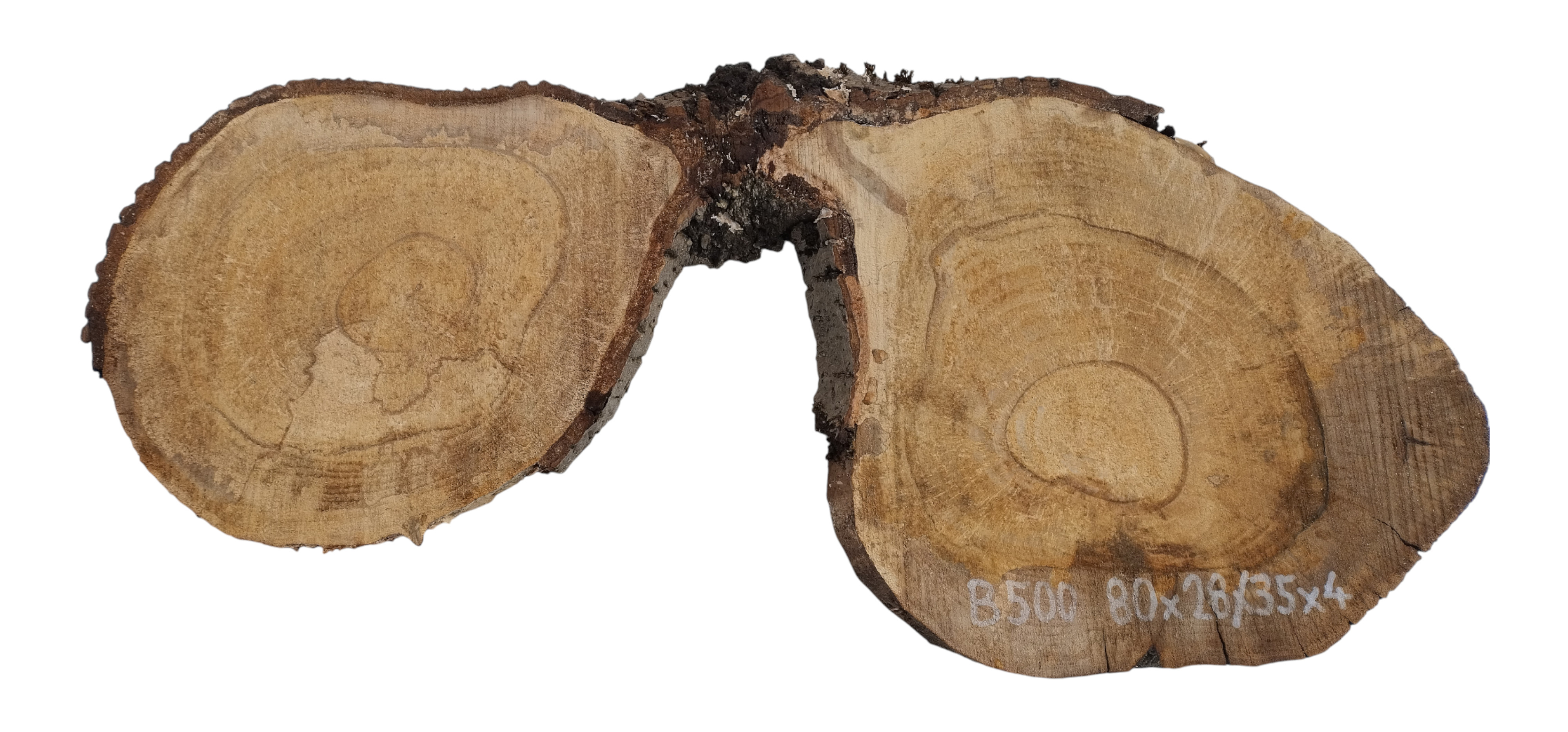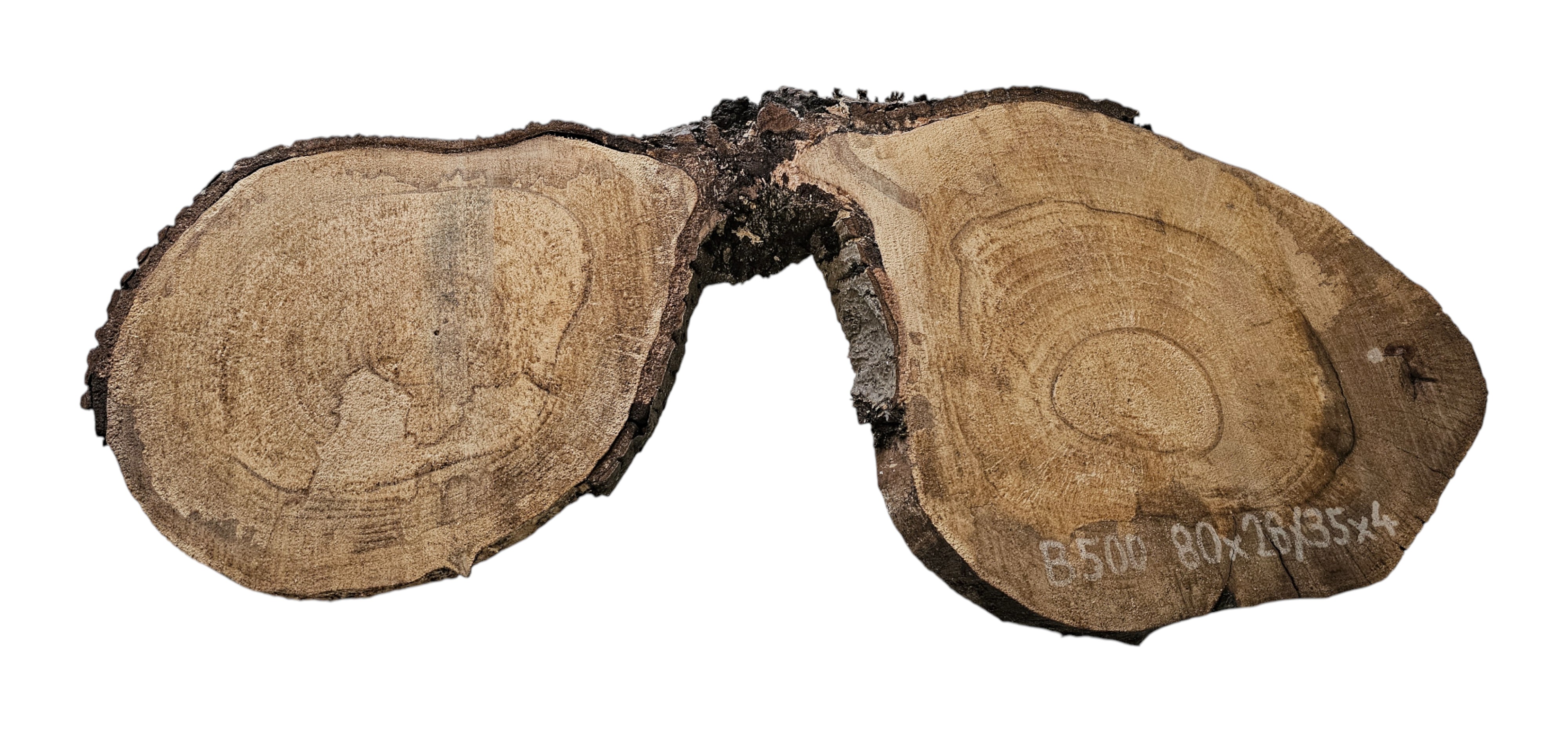 Zdjęcia robimy od razu po przecięciu, żeby jak najlepiej pokazać w jaki sposób można wyprowadzić plaster i podkreślić jego strukturę. W procesie suszenia naturalną rzeczą są pęknięcia materiału powstałe w skutek oddawania wilgoci oraz powierzchowna zmiana barwy. Zdjęcie nr 2 w galerii przedstawia stan plastra z grudnia 2025 – wtedy została zmierzona podana wilgotność.