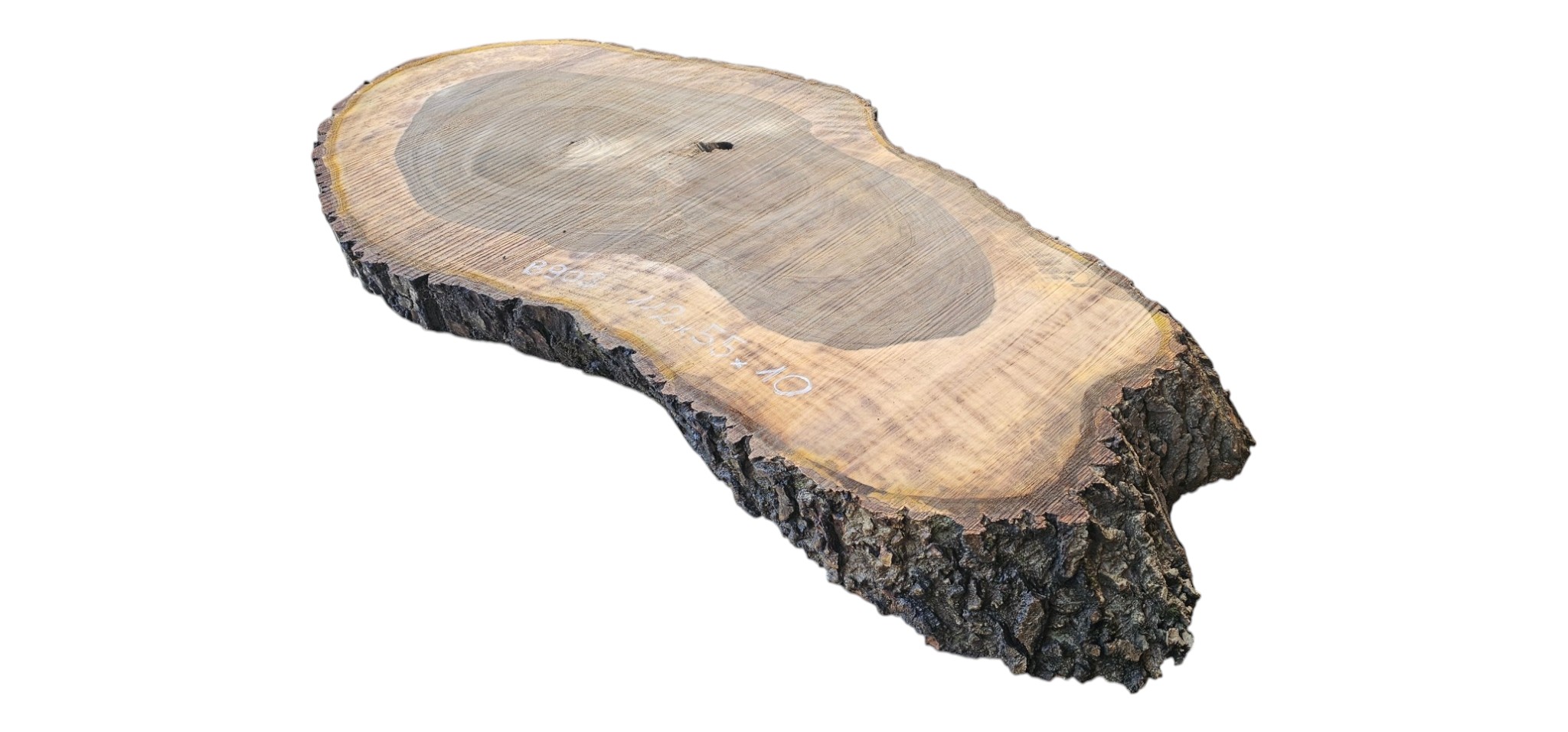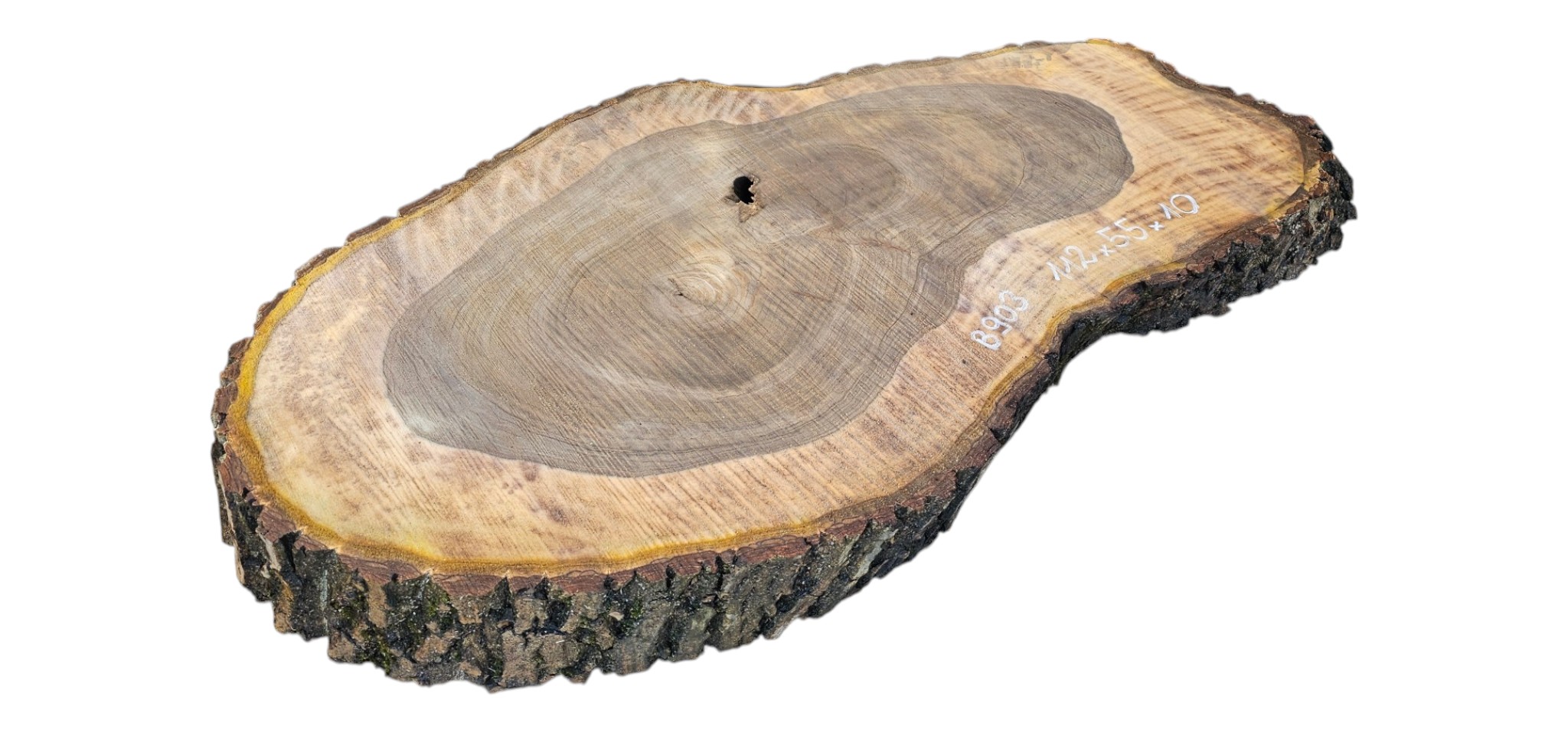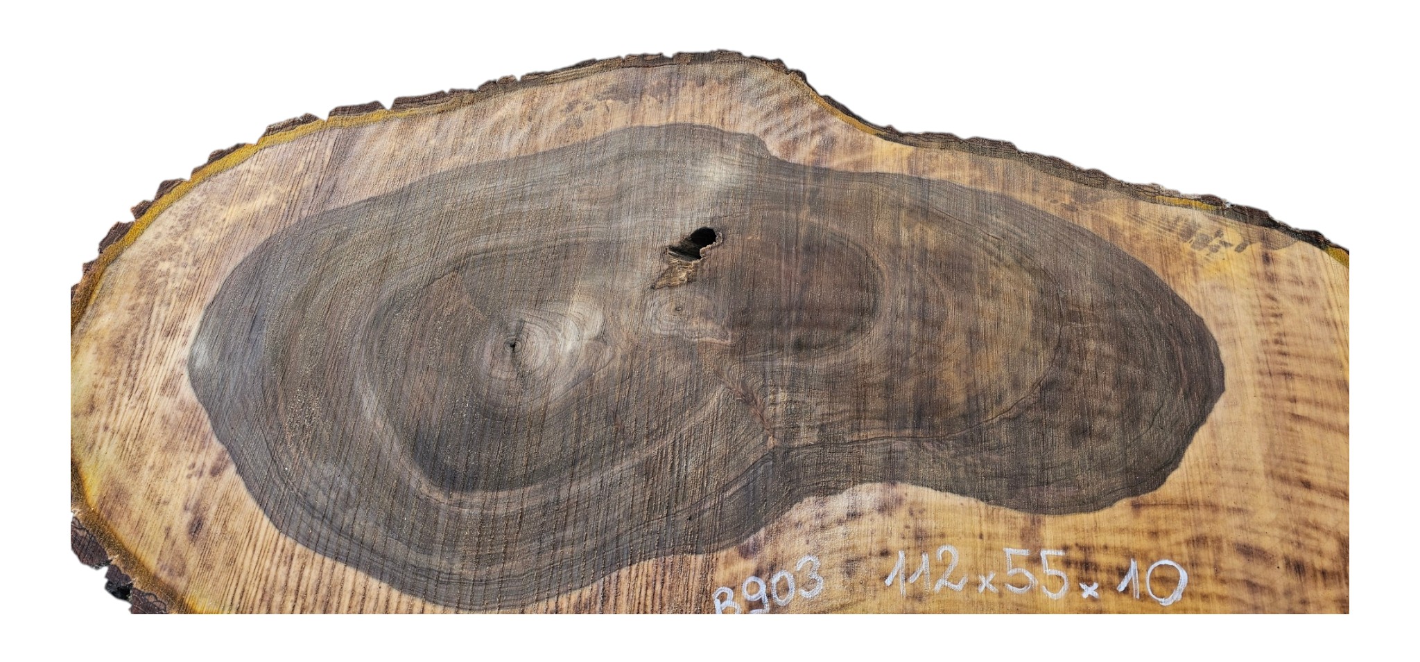 Zdjęcia robimy od razu po przecięciu, żeby jak najlepiej pokazać w jaki sposób można wyprowadzić plaster i podkreślić jego strukturę. W procesie suszenia naturalną rzeczą są pęknięcia materiału powstałe w skutek oddawania wilgoci oraz powierzchowna zmiana barwy. Zdjęcie nr 2 w galerii przedstawia stan plastra po wyciągnięciu z suszarni.