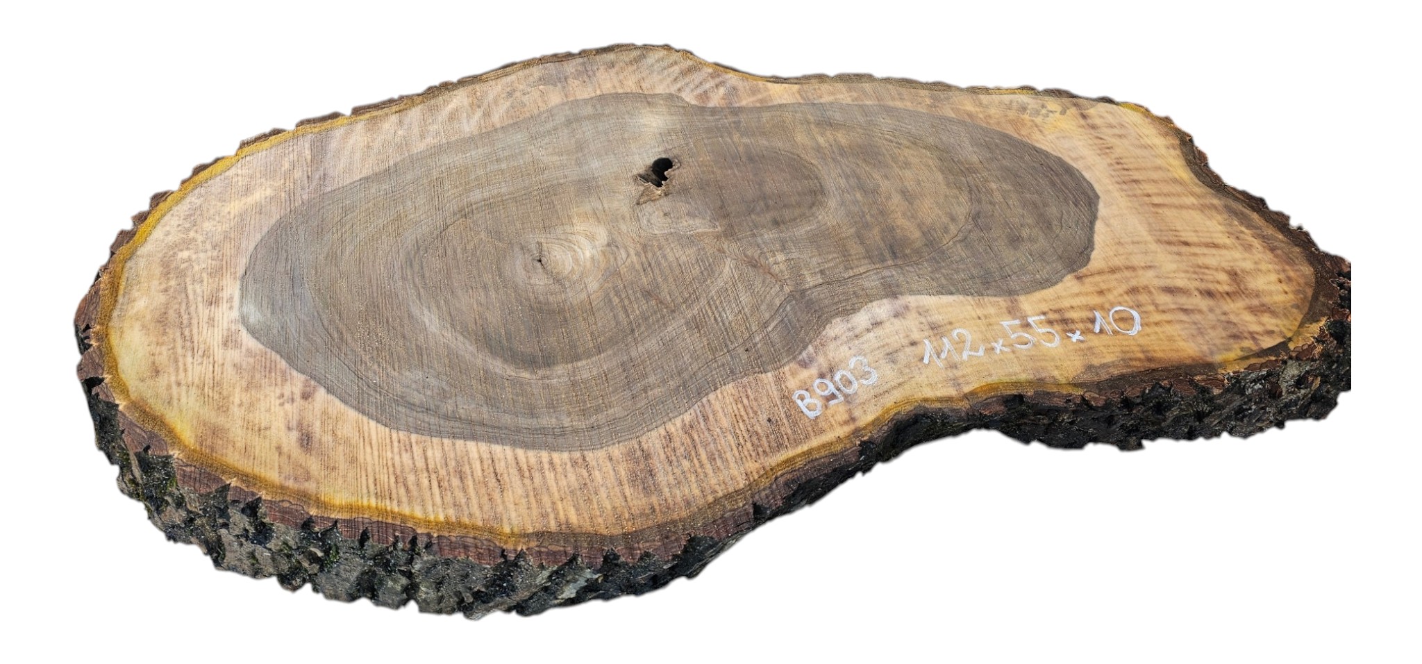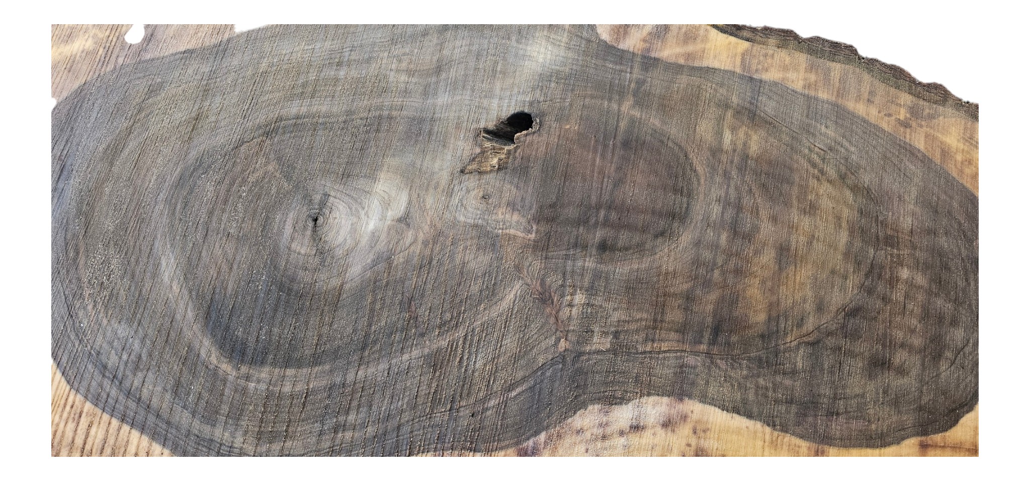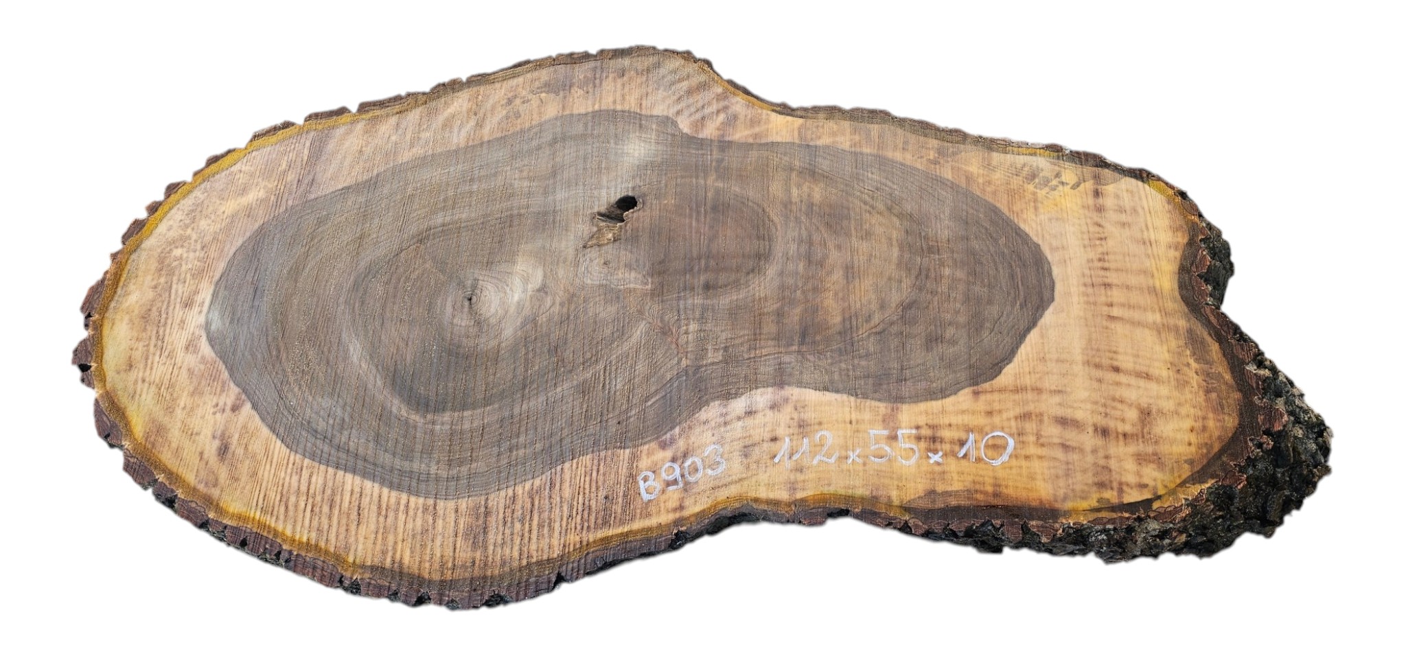 Zdjęcia robimy od razu po przecięciu, żeby jak najlepiej pokazać w jaki sposób można wyprowadzić plaster i podkreślić jego strukturę. W procesie suszenia naturalną rzeczą są pęknięcia materiału powstałe w skutek oddawania wilgoci oraz powierzchowna zmiana barwy. Zdjęcie nr 2 w galerii przedstawia stan plastra po wyciągnięciu z suszarni.