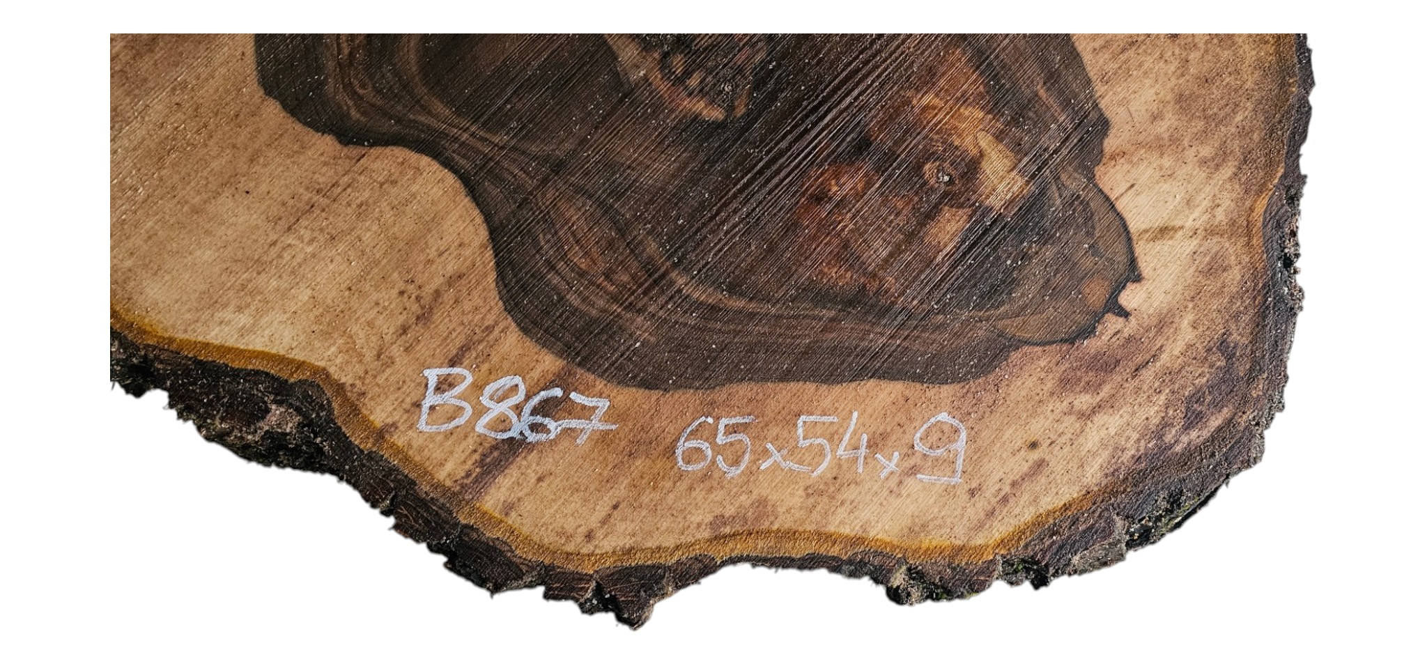 Zdjęcia robimy od razu po przecięciu, żeby jak najlepiej pokazać w jaki sposób można wyprowadzić plaster i podkreślić jego strukturę. W procesie suszenia naturalną rzeczą są pęknięcia materiału powstałe w skutek oddawania wilgoci oraz powierzchowna zmiana barwy. Zdjęcie nr 2 w galerii przedstawia stan plastra po wyciągnięciu z suszarni.