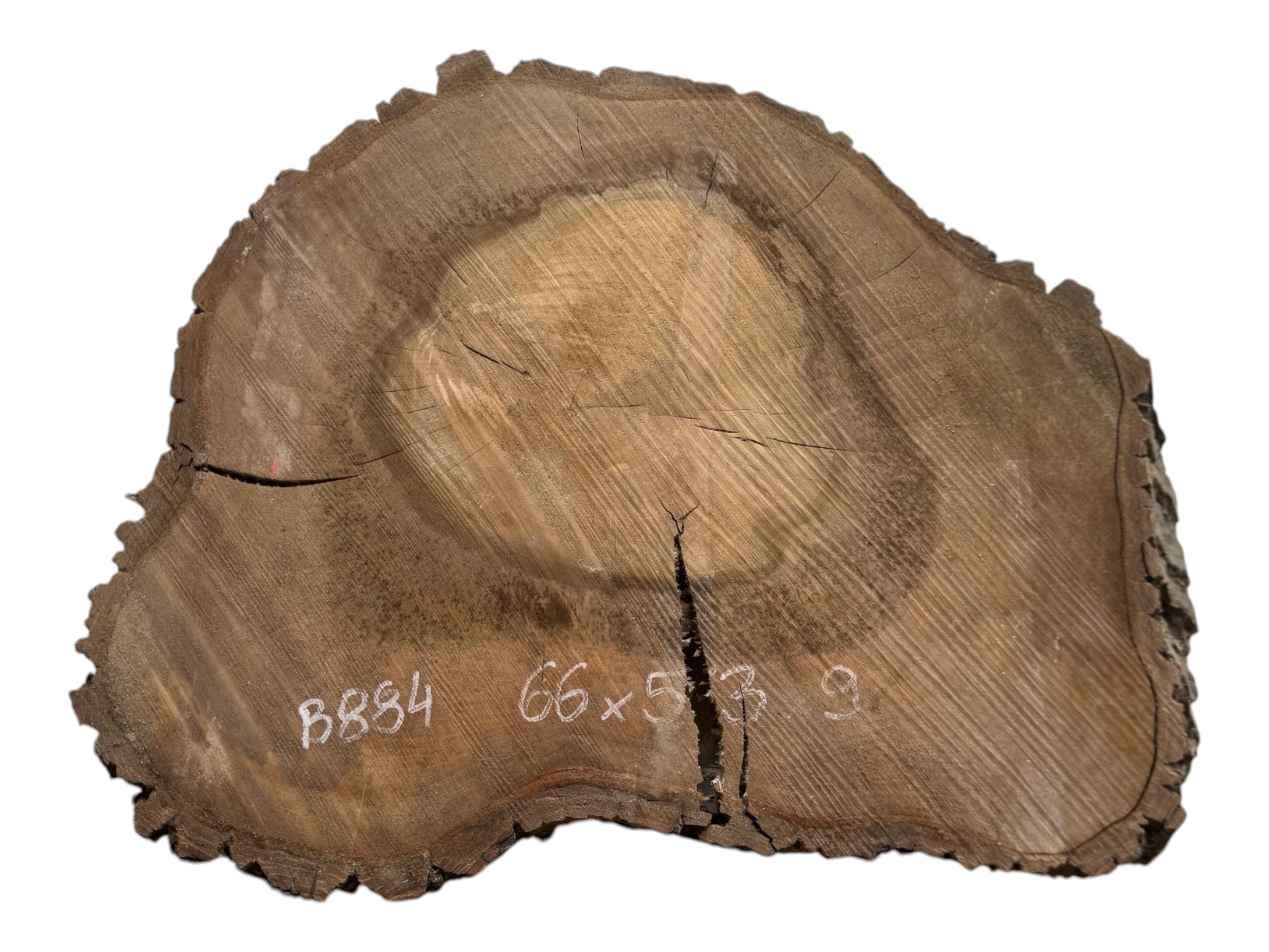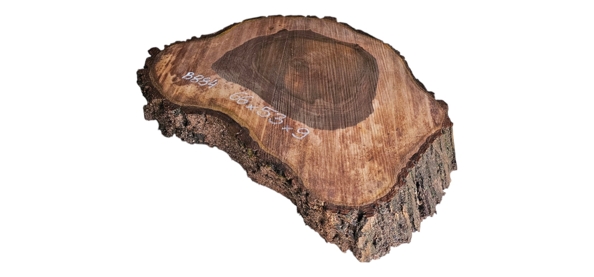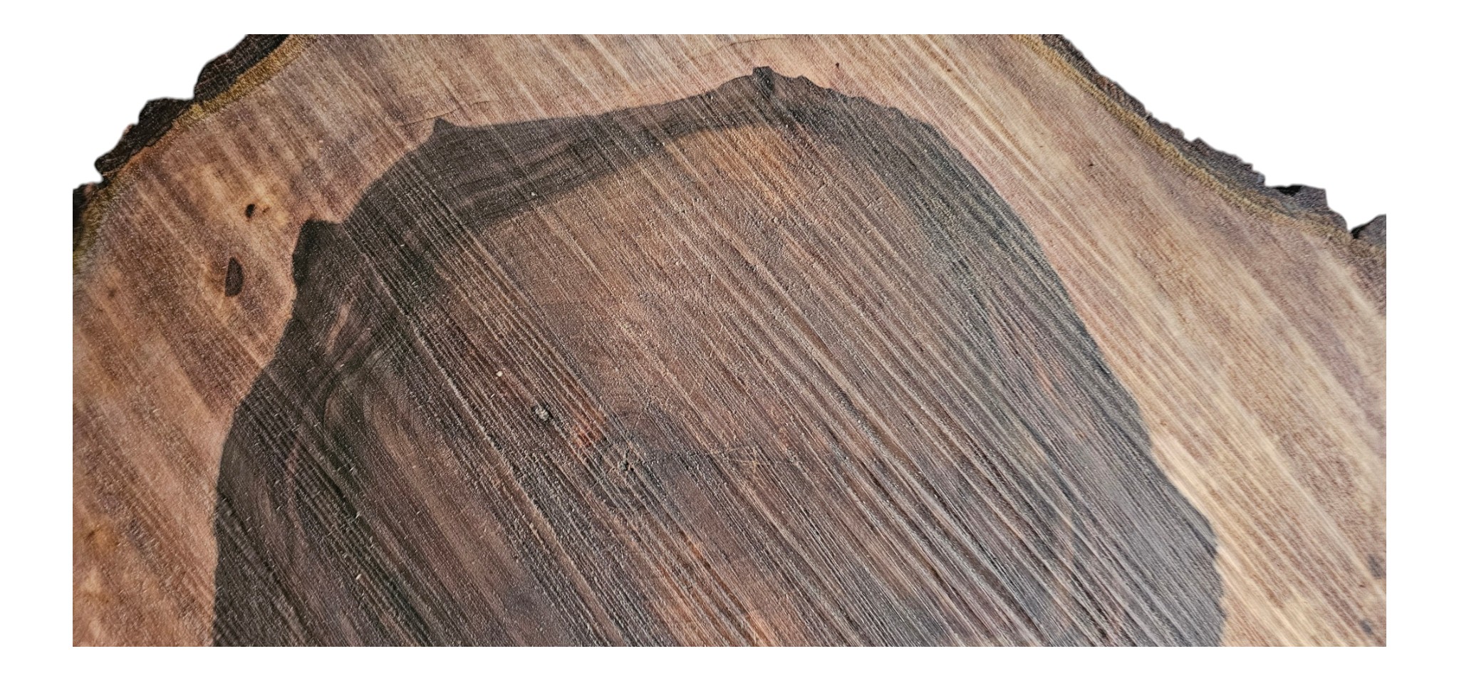 Zdjęcia robimy od razu po przecięciu, żeby jak najlepiej pokazać w jaki sposób można wyprowadzić plaster i podkreślić jego strukturę. W procesie suszenia naturalną rzeczą są pęknięcia materiału powstałe w skutek oddawania wilgoci oraz powierzchowna zmiana barwy. Zdjęcie nr 2 w galerii przedstawia stan plastra po wyciągnięciu z suszarni.