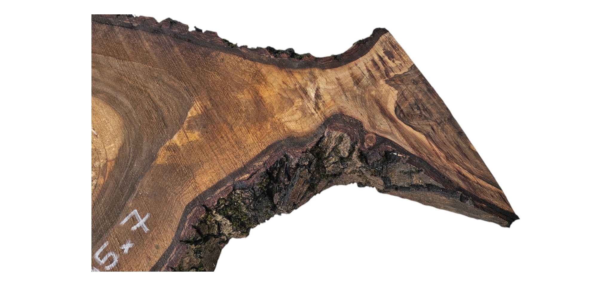 Zdjęcia robimy od razu po przecięciu, żeby jak najlepiej pokazać w jaki sposób można wyprowadzić plaster i podkreślić jego strukturę. W procesie suszenia naturalną rzeczą są pęknięcia materiału powstałe w skutek oddawania wilgoci oraz powierzchowna zmiana barwy. Zdjęcie nr 2 w galerii przedstawia stan plastra po wyciągnięciu z suszarni.