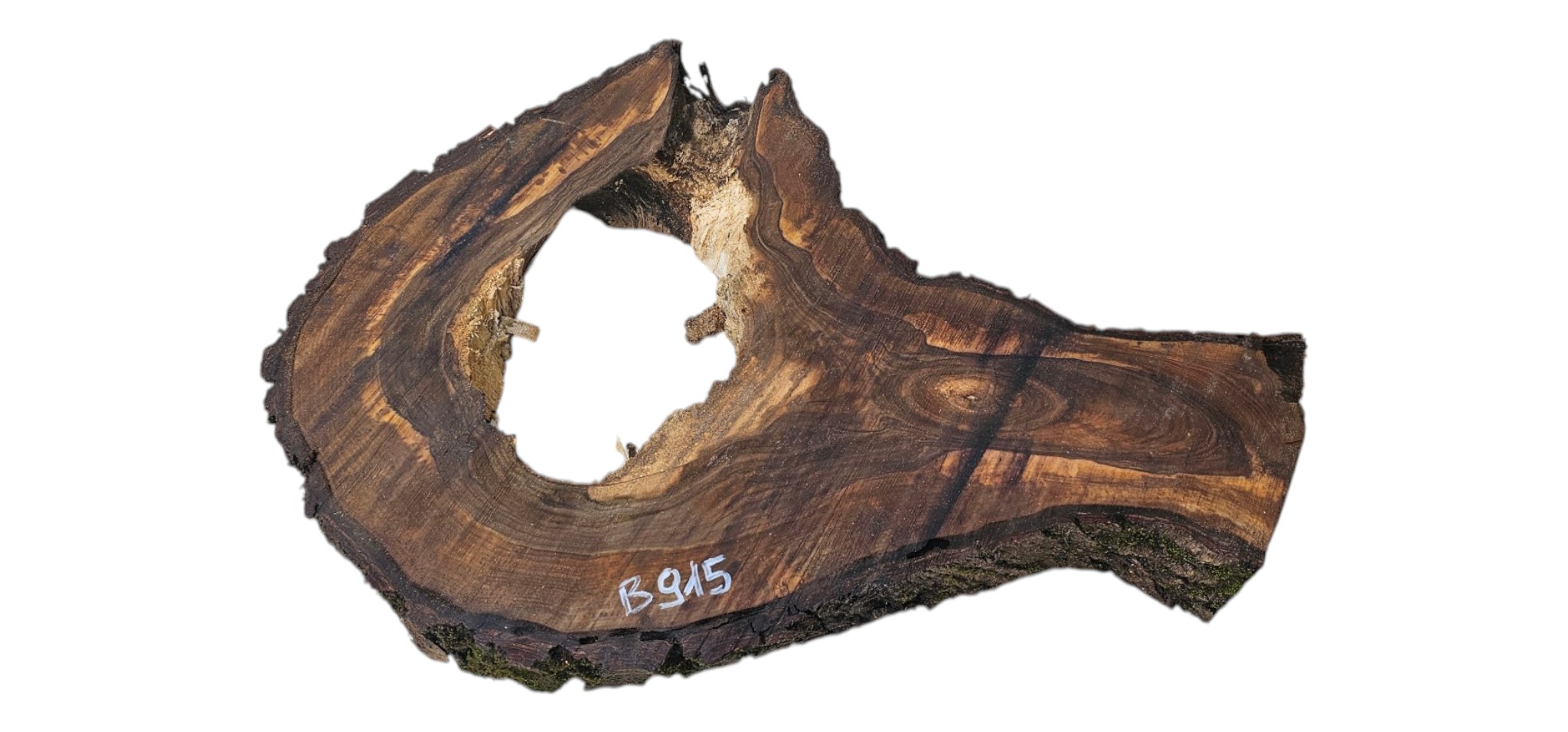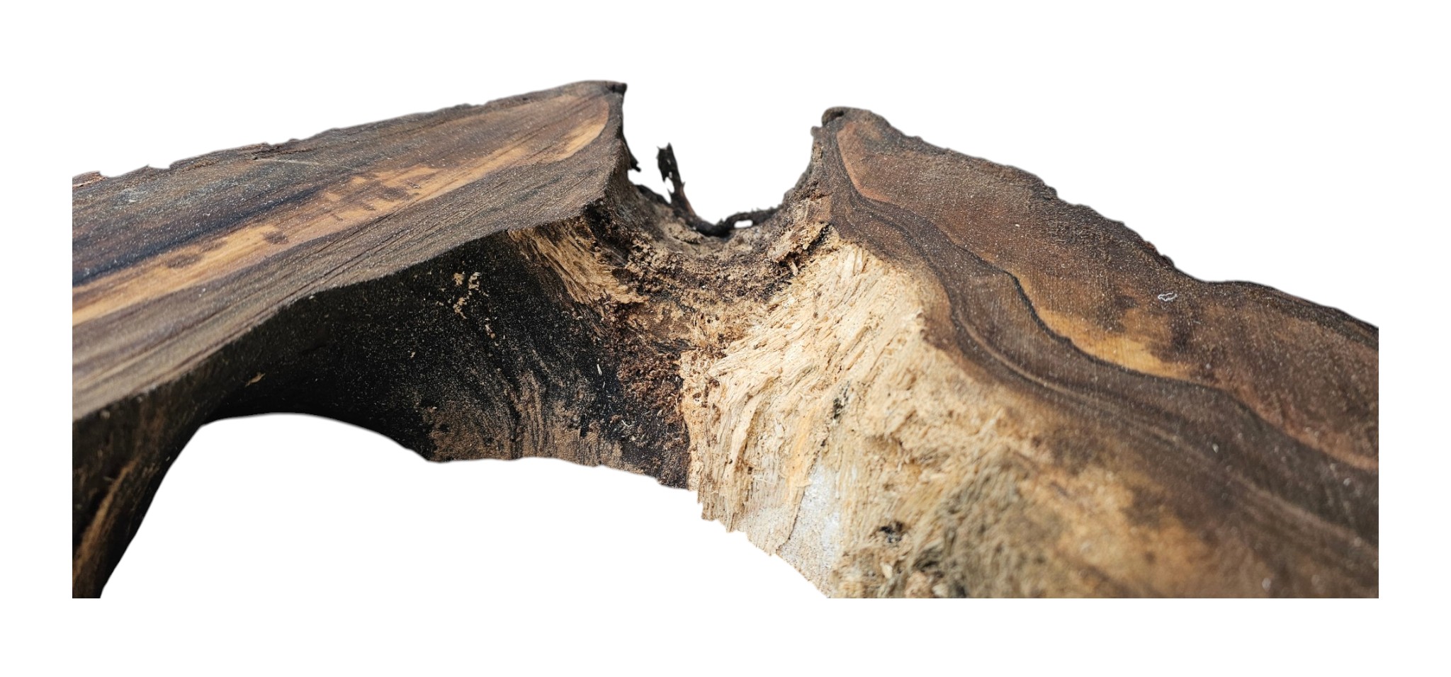 Zdjęcia robimy od razu po przecięciu, żeby jak najlepiej pokazać w jaki sposób można wyprowadzić plaster i podkreślić jego strukturę. W procesie suszenia naturalną rzeczą są pęknięcia materiału powstałe w skutek oddawania wilgoci oraz powierzchowna zmiana barwy. Zdjęcie nr 2 w galerii przedstawia stan plastra po wyciągnięciu z suszarni.