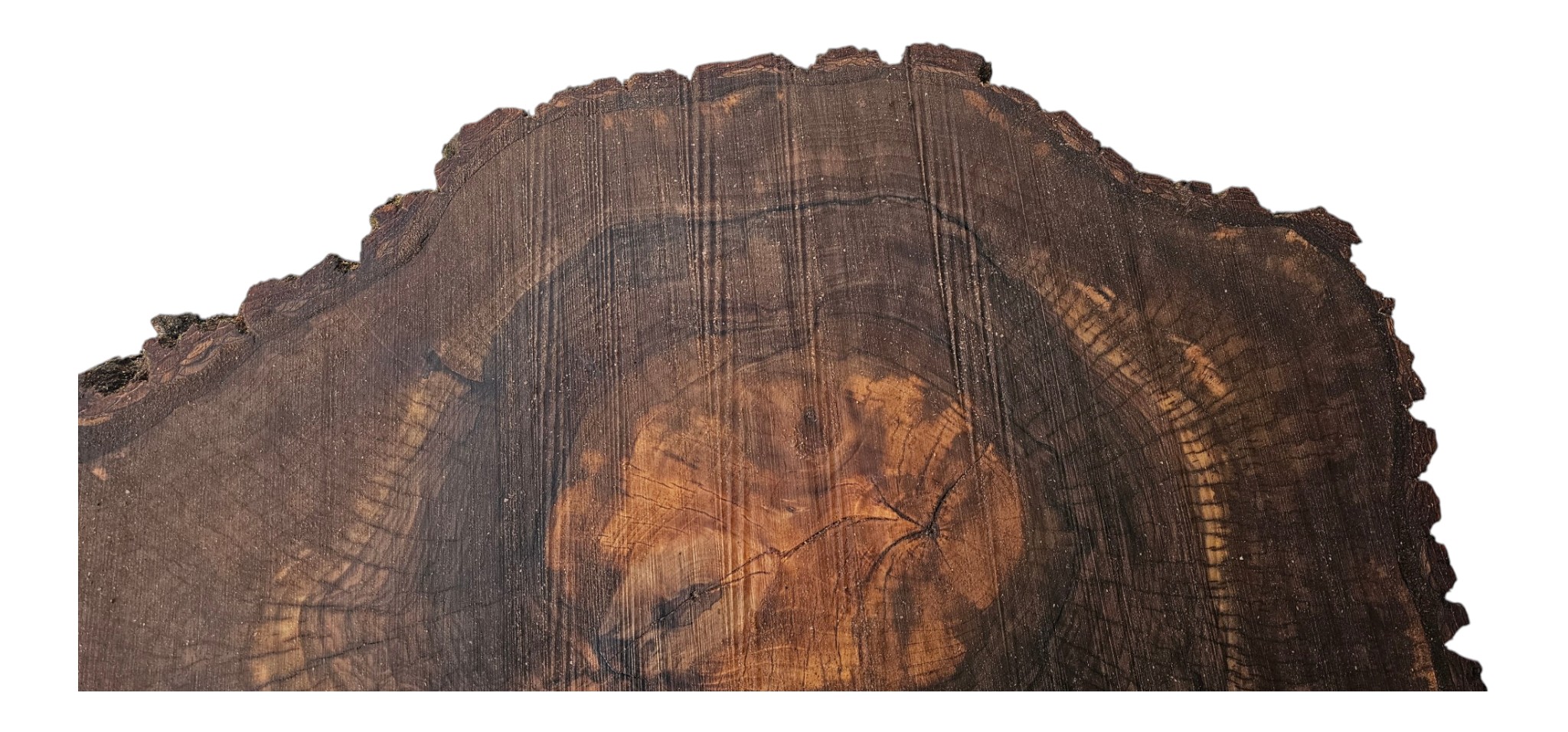 Zdjęcia robimy od razu po przecięciu, żeby jak najlepiej pokazać w jaki sposób można wyprowadzić plaster i podkreślić jego strukturę. W procesie suszenia naturalną rzeczą są pęknięcia materiału powstałe w skutek oddawania wilgoci oraz powierzchowna zmiana barwy. Zdjęcie nr 2 w galerii przedstawia stan plastra po wyciągnięciu z suszarni.