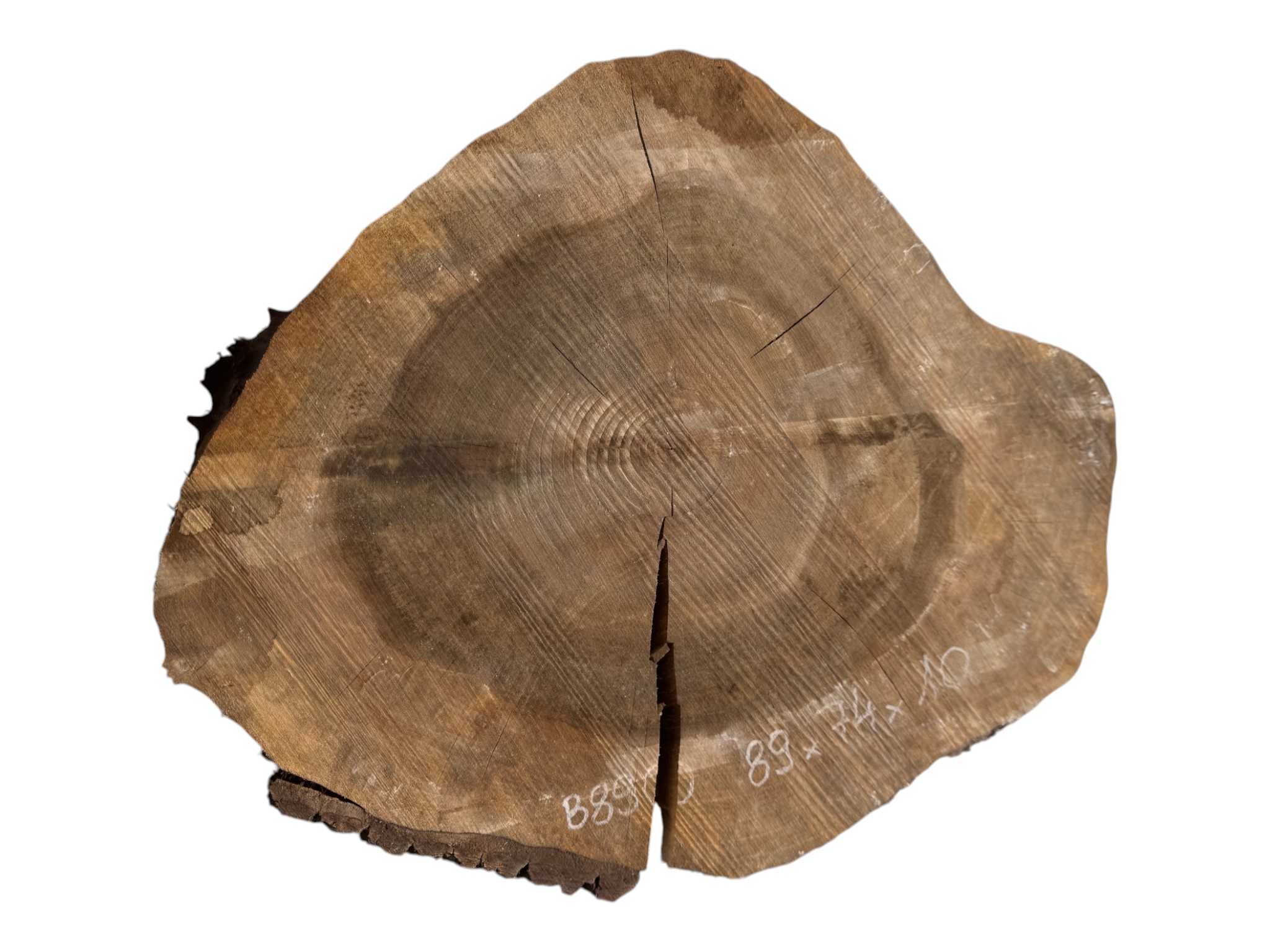 Zdjęcia robimy od razu po przecięciu, żeby jak najlepiej pokazać w jaki sposób można wyprowadzić plaster i podkreślić jego strukturę. W procesie suszenia naturalną rzeczą są pęknięcia materiału powstałe w skutek oddawania wilgoci oraz powierzchowna zmiana barwy. Zdjęcie nr 2 w galerii przedstawia stan plastra po wyciągnięciu z suszarni.