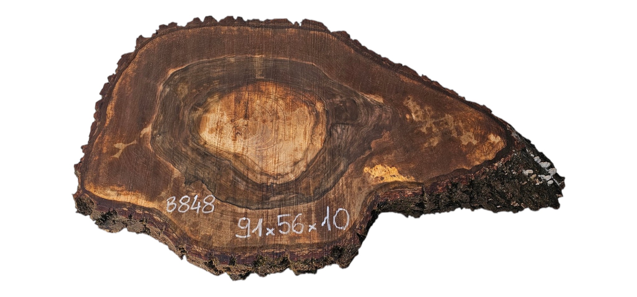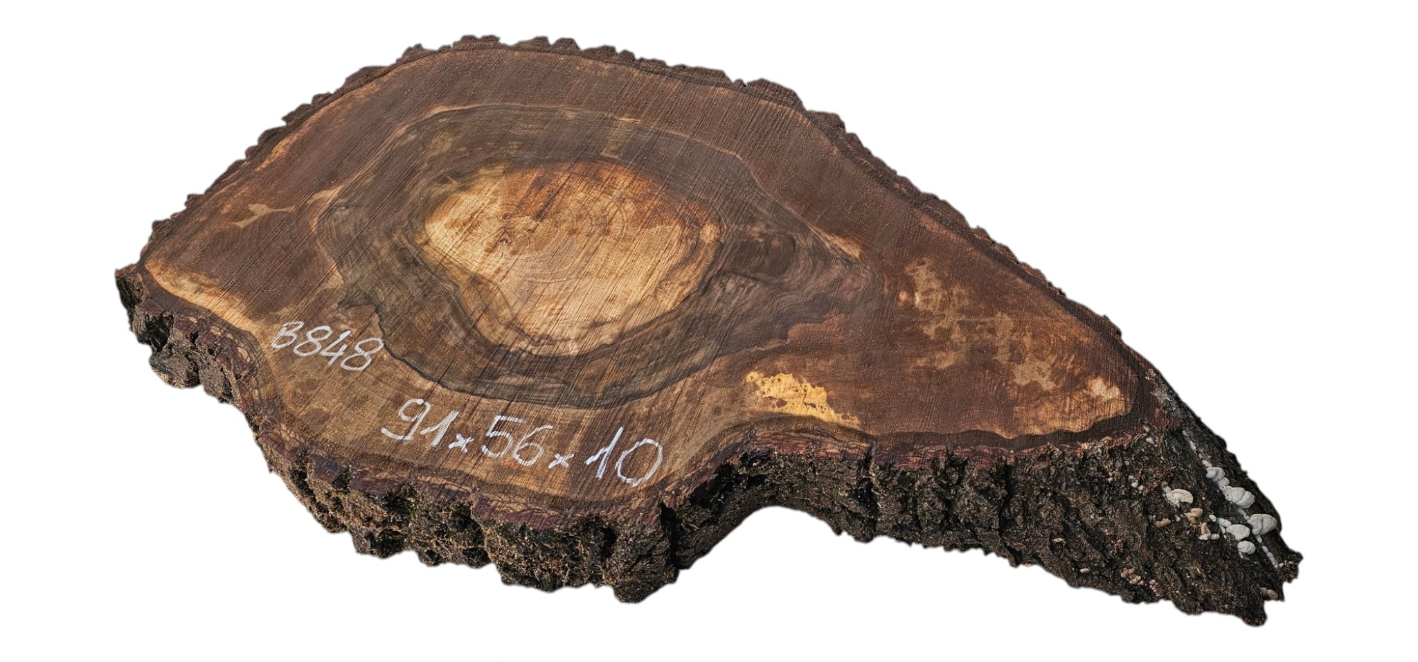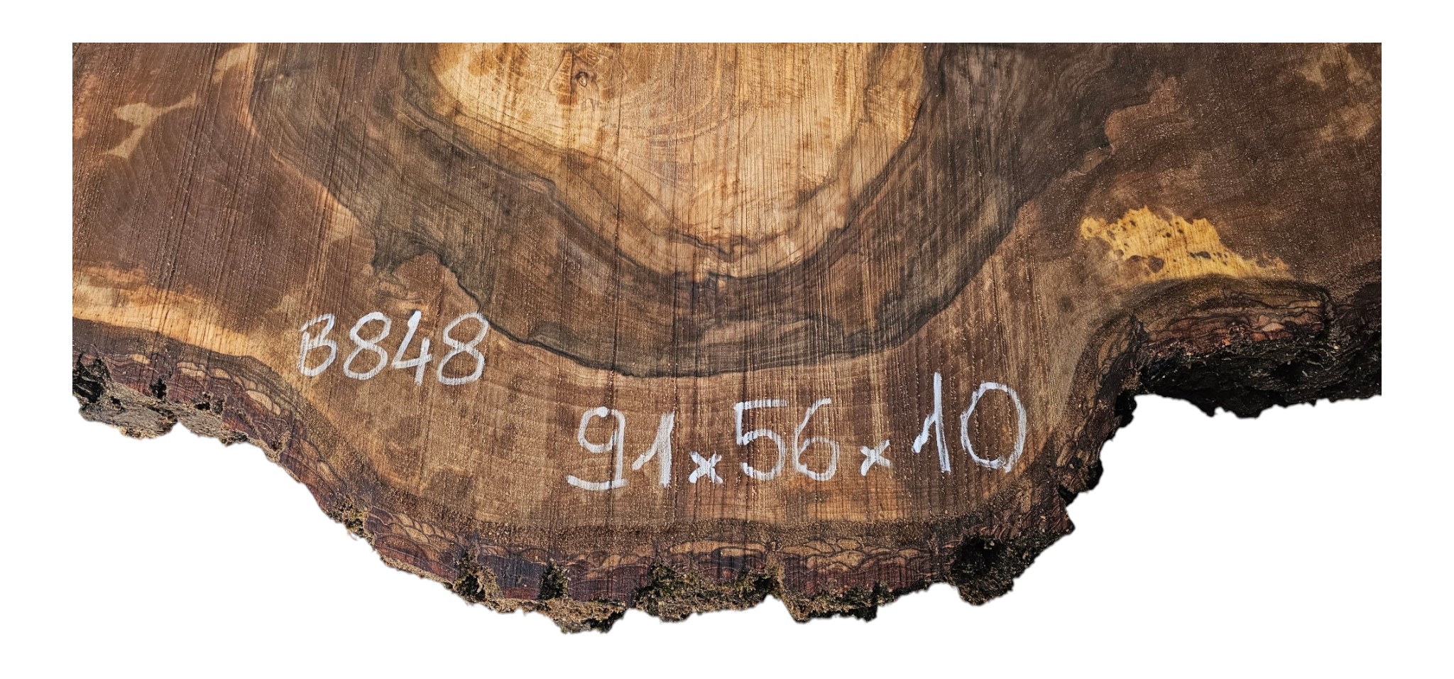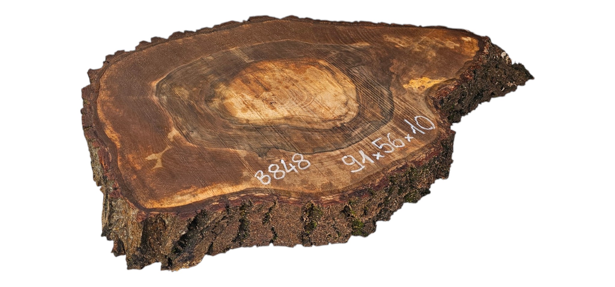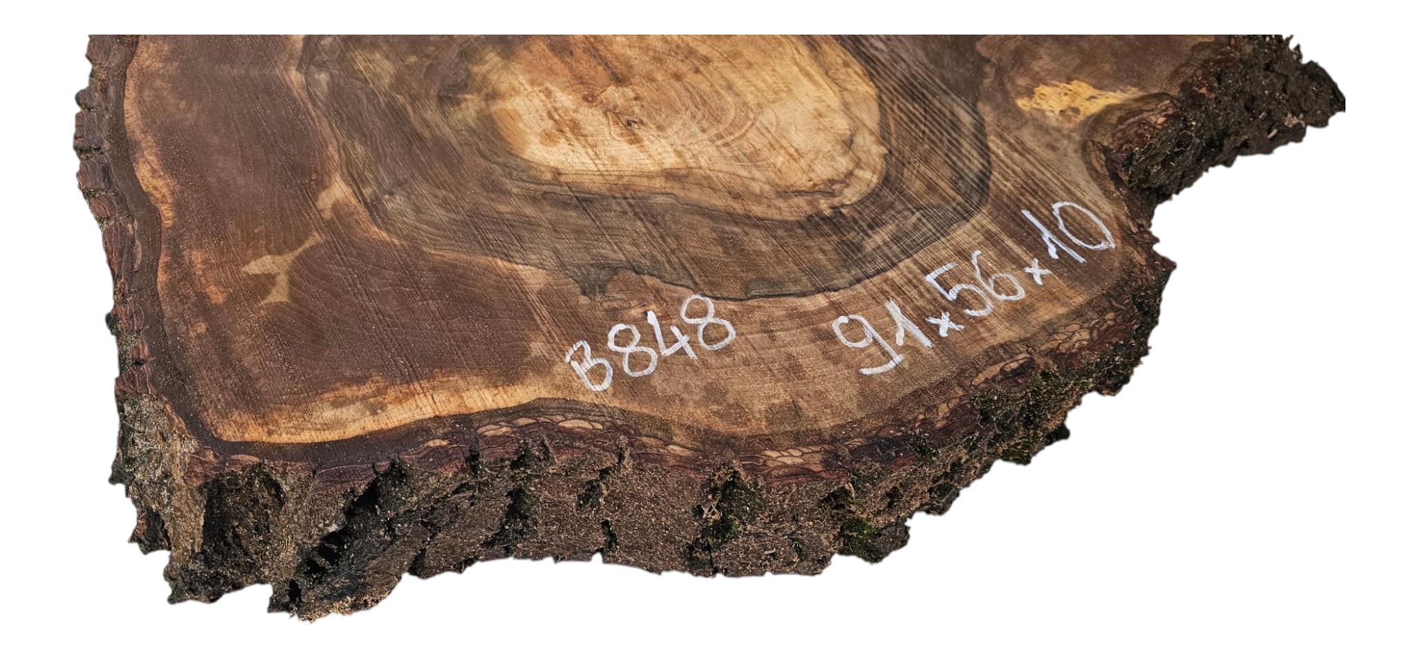 Zdjęcia robimy od razu po przecięciu, żeby jak najlepiej pokazać w jaki sposób można wyprowadzić plaster i podkreślić jego strukturę. W procesie suszenia naturalną rzeczą są pęknięcia materiału powstałe w skutek oddawania wilgoci oraz powierzchowna zmiana barwy. Zdjęcie nr 2 w galerii przedstawia stan plastra po wyciągnięciu z suszarni.