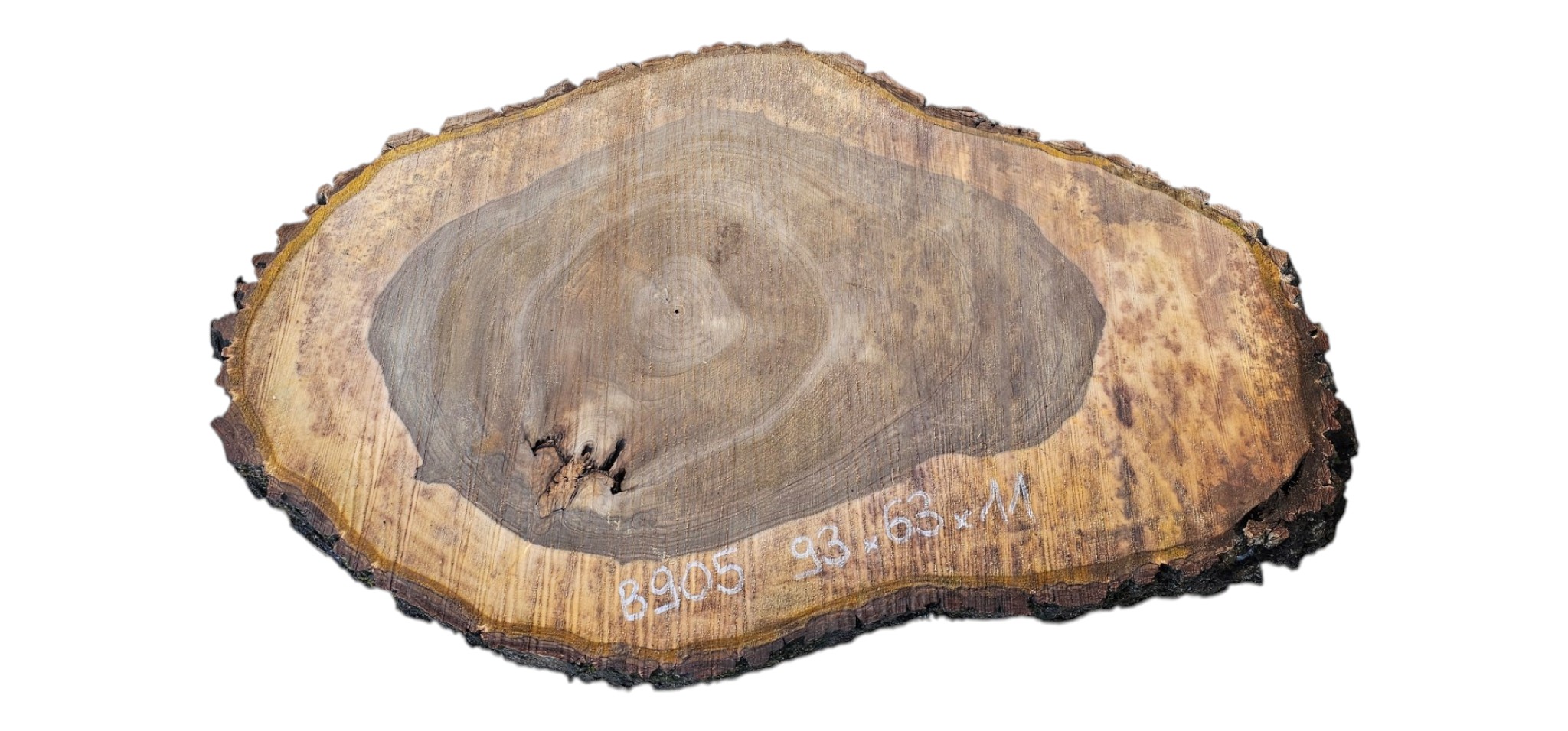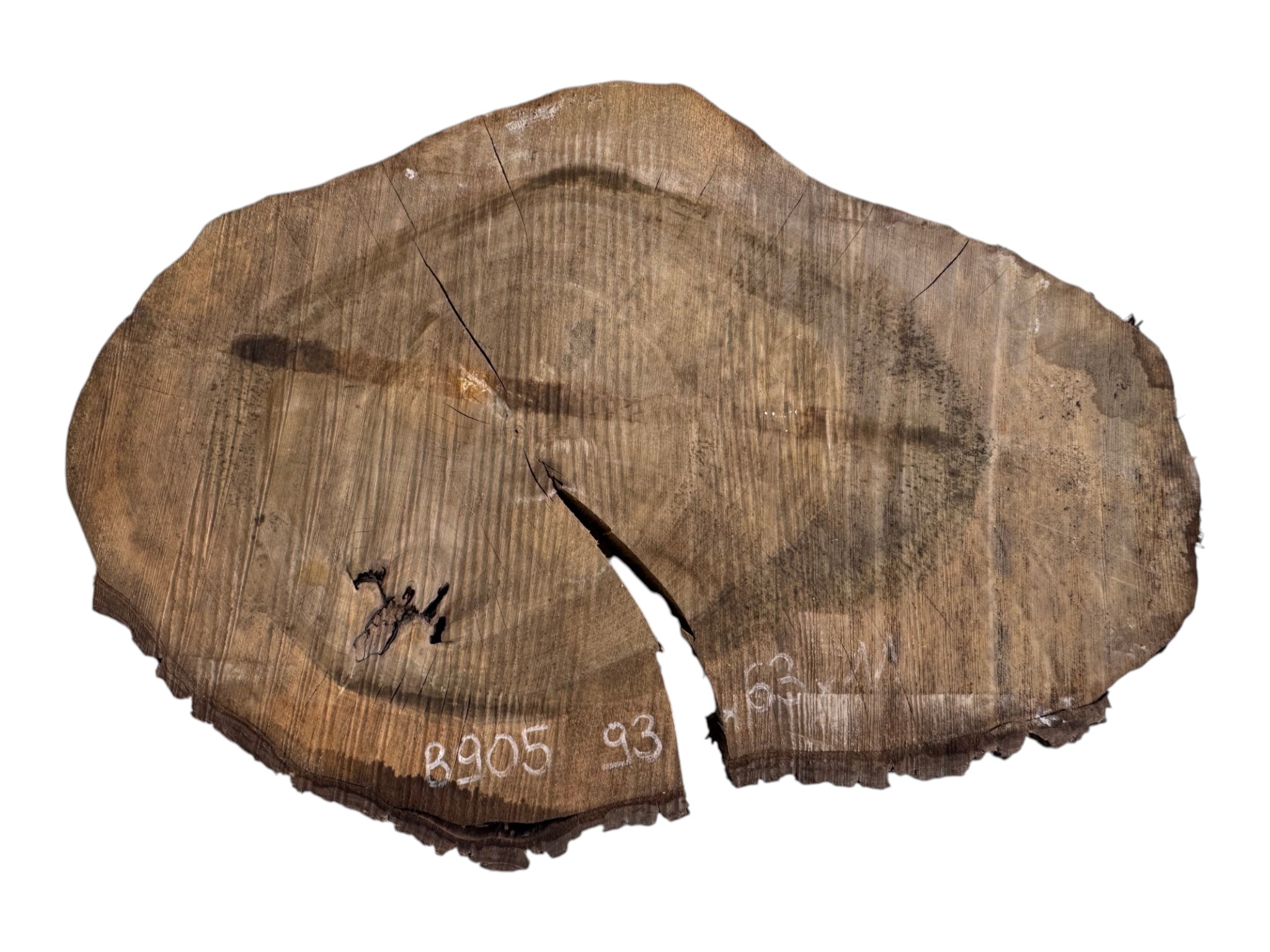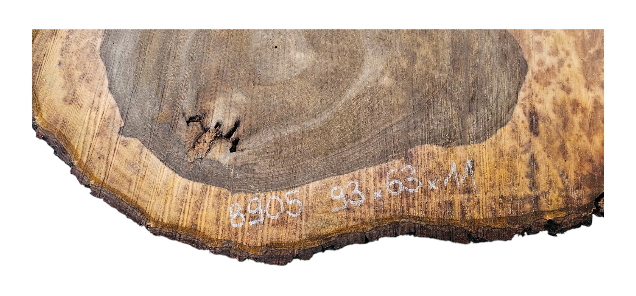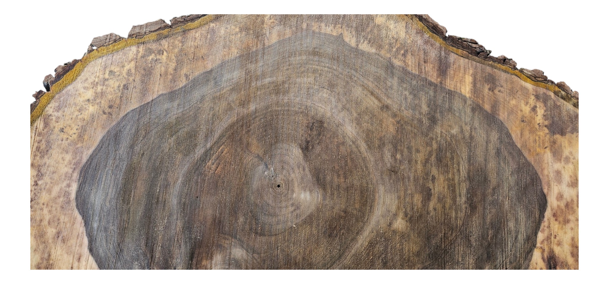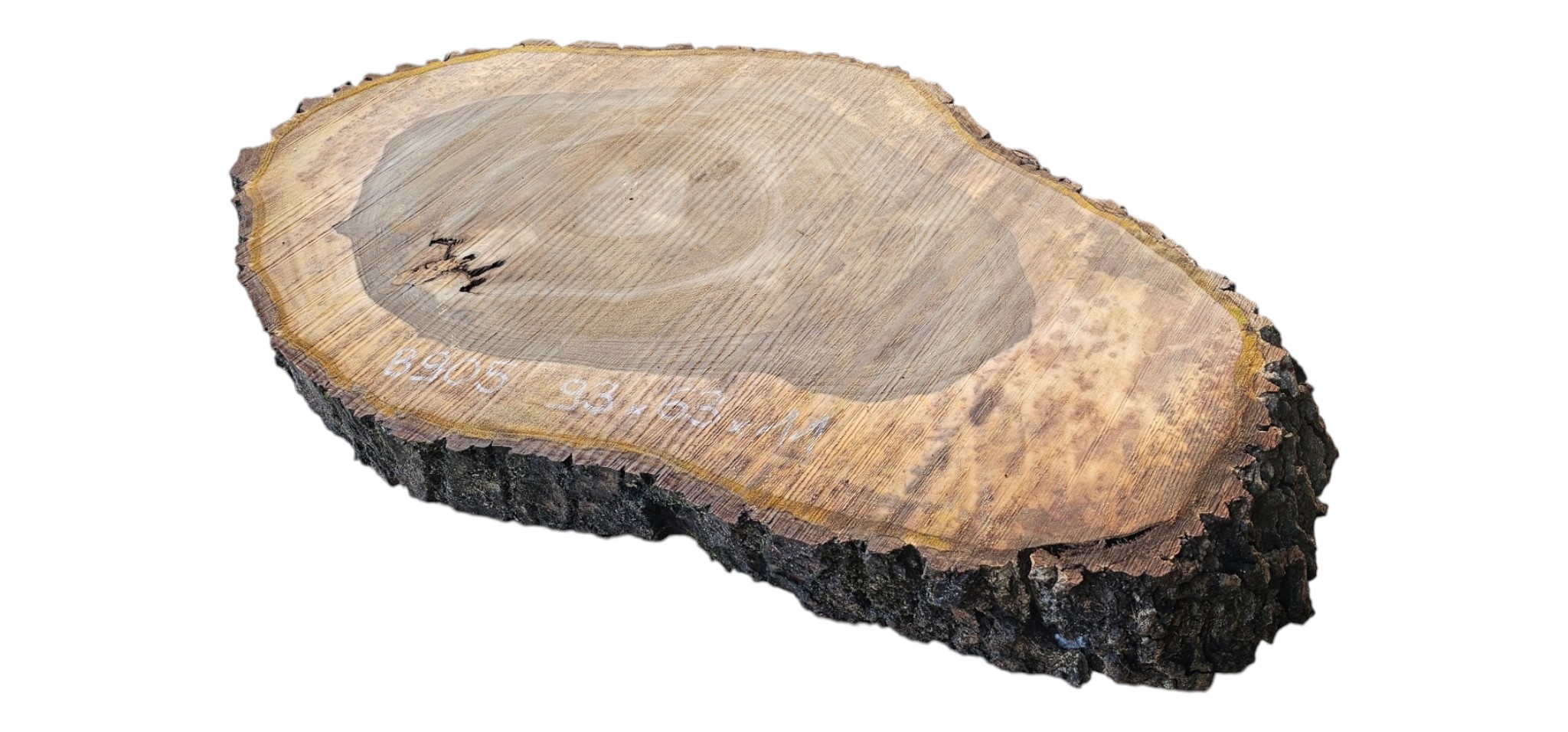 Zdjęcia robimy od razu po przecięciu, żeby jak najlepiej pokazać w jaki sposób można wyprowadzić plaster i podkreślić jego strukturę. W procesie suszenia naturalną rzeczą są pęknięcia materiału powstałe w skutek oddawania wilgoci oraz powierzchowna zmiana barwy. Zdjęcie nr 2 w galerii przedstawia stan plastra po wyciągnięciu z suszarni.