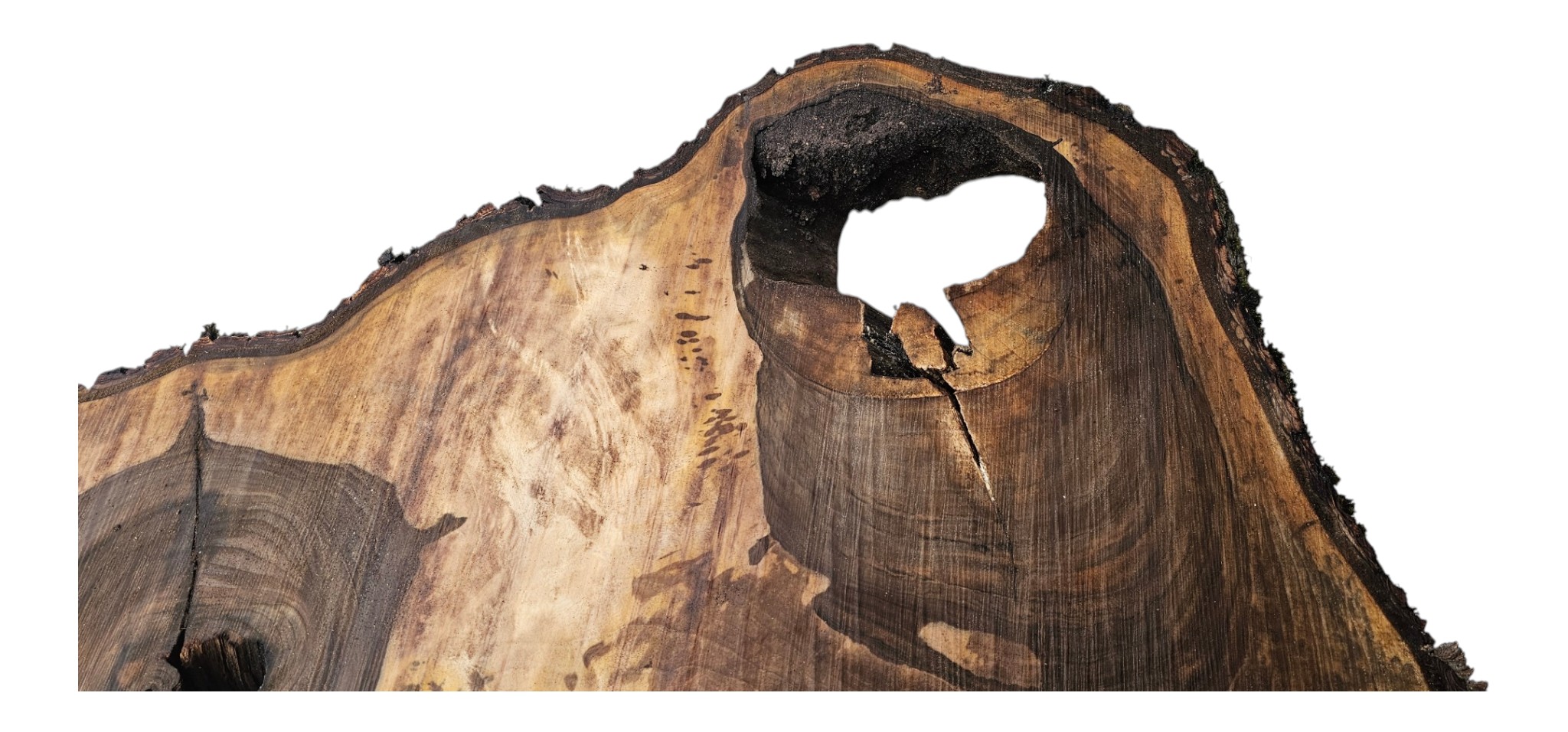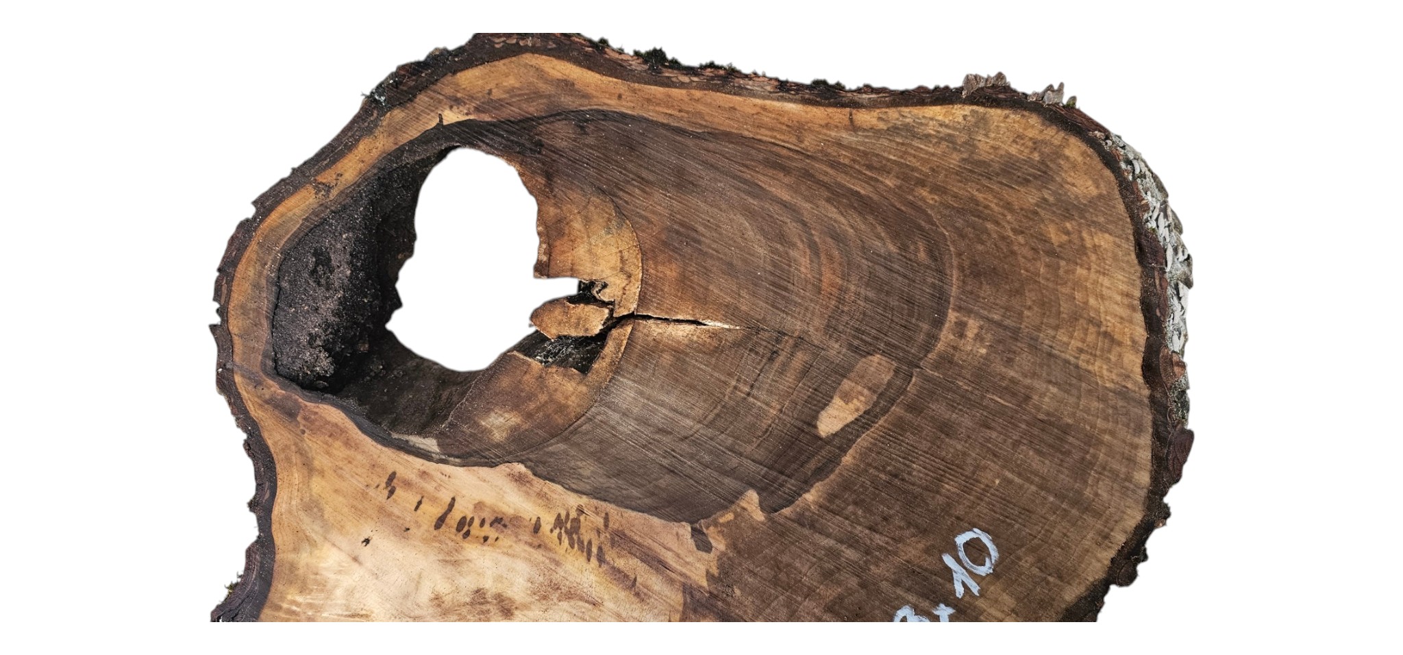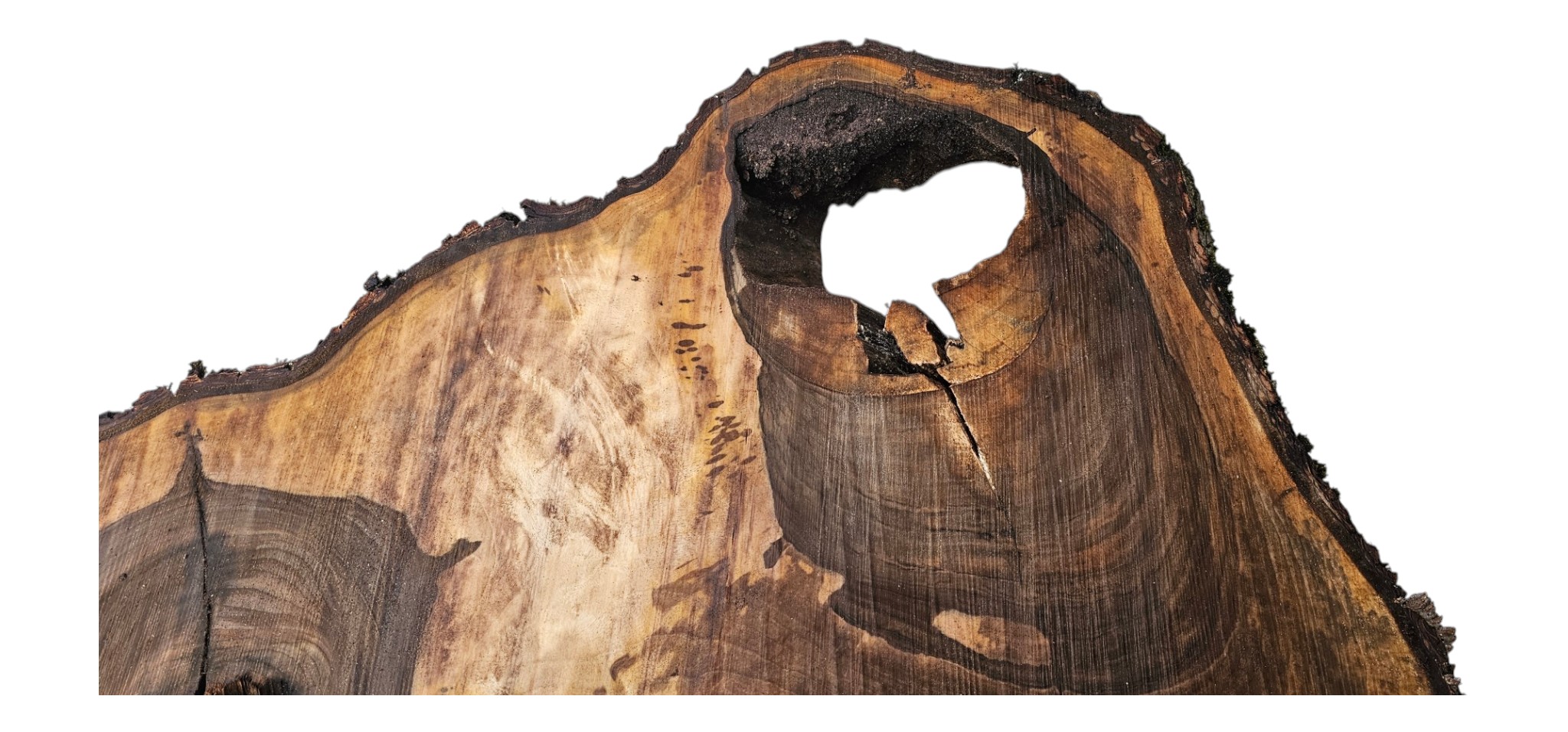 Zdjęcia robimy od razu po przecięciu, żeby jak najlepiej pokazać w jaki sposób można wyprowadzić plaster i podkreślić jego strukturę. W procesie suszenia naturalną rzeczą są pęknięcia materiału powstałe w skutek oddawania wilgoci oraz powierzchowna zmiana barwy. Zdjęcie nr 2 w galerii przedstawia stan plastra po wyciągnięciu z suszarni.