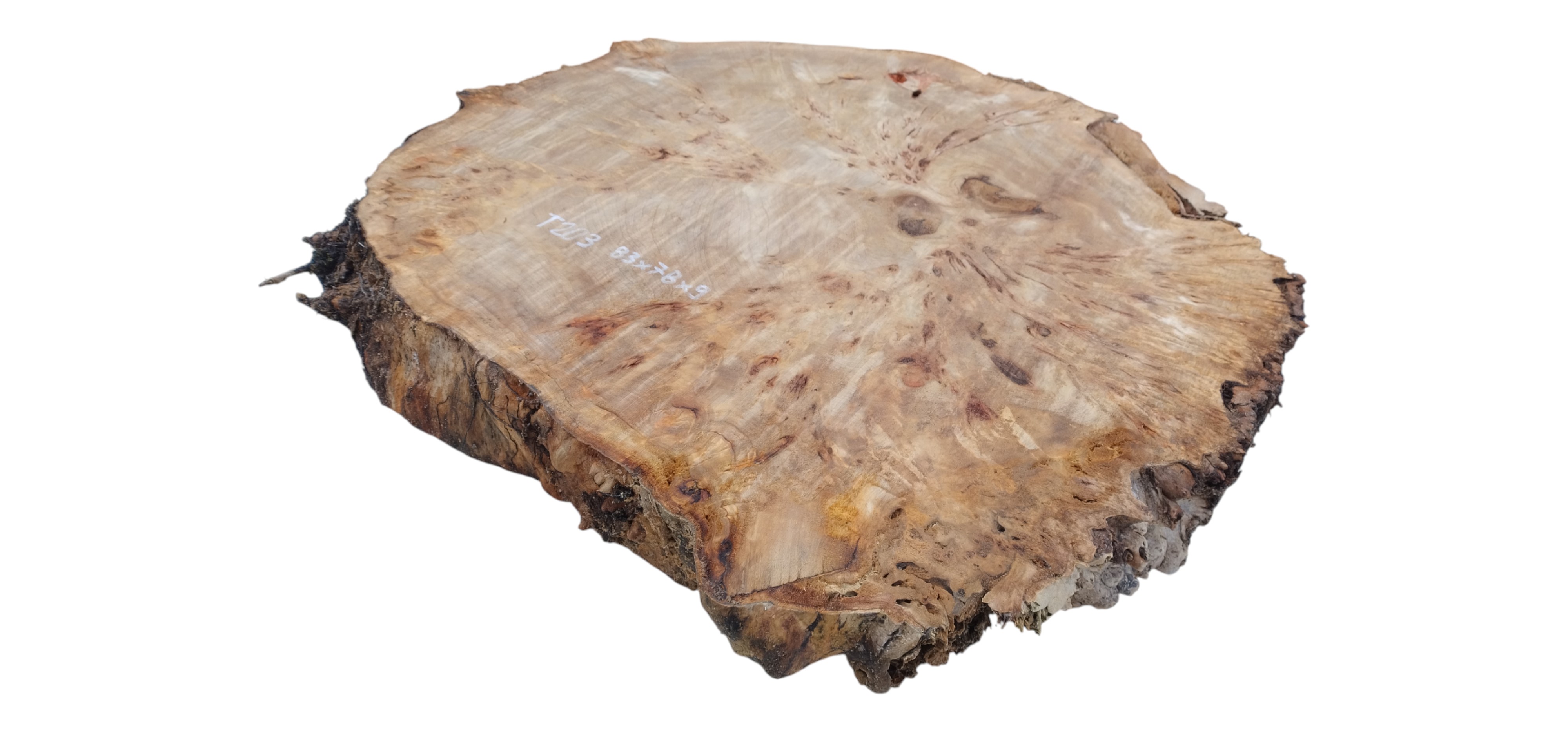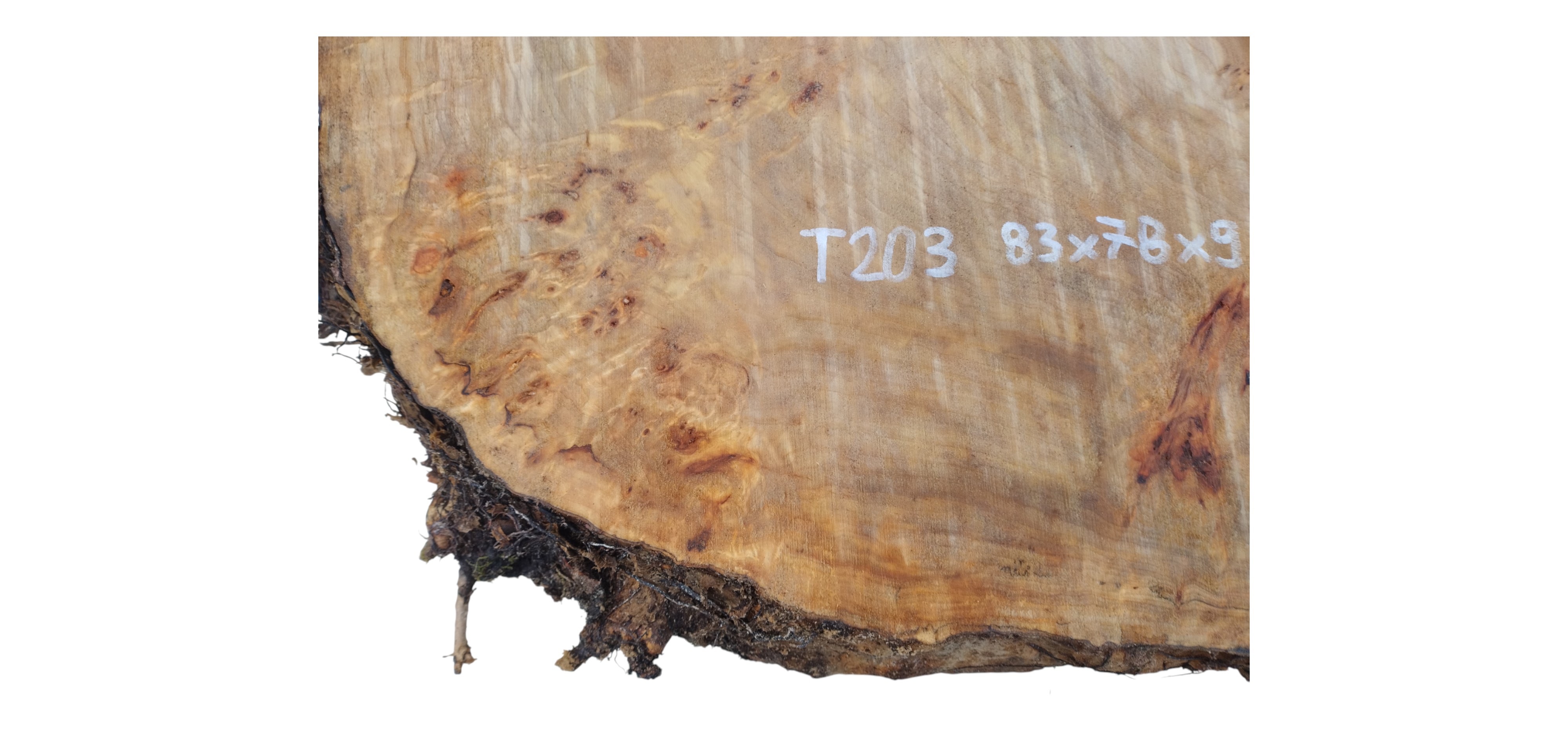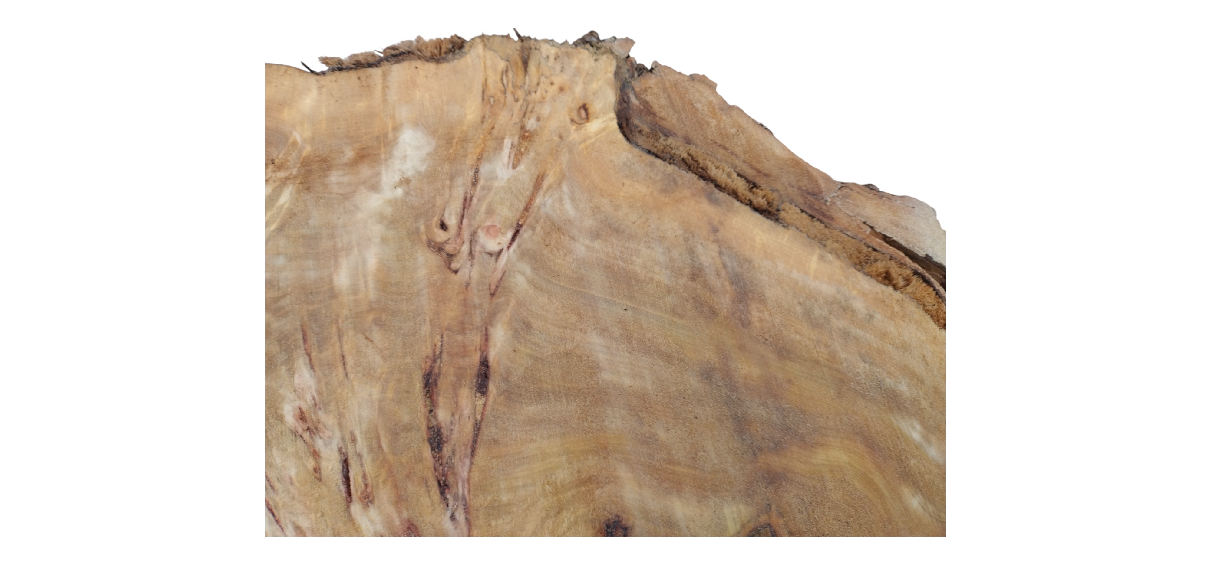 Zdjęcia robimy od razu po przecięciu, żeby jak najlepiej pokazać w jaki sposób można wyprowadzić plaster i podkreślić jego strukturę. W procesie suszenia naturalną rzeczą są pęknięcia materiału powstałe w skutek oddawania wilgoci oraz powierzchowna zmiana barwy. Zdjęcie nr 2 w galerii przedstawia stan plastra po wyciągnięciu z suszarni.