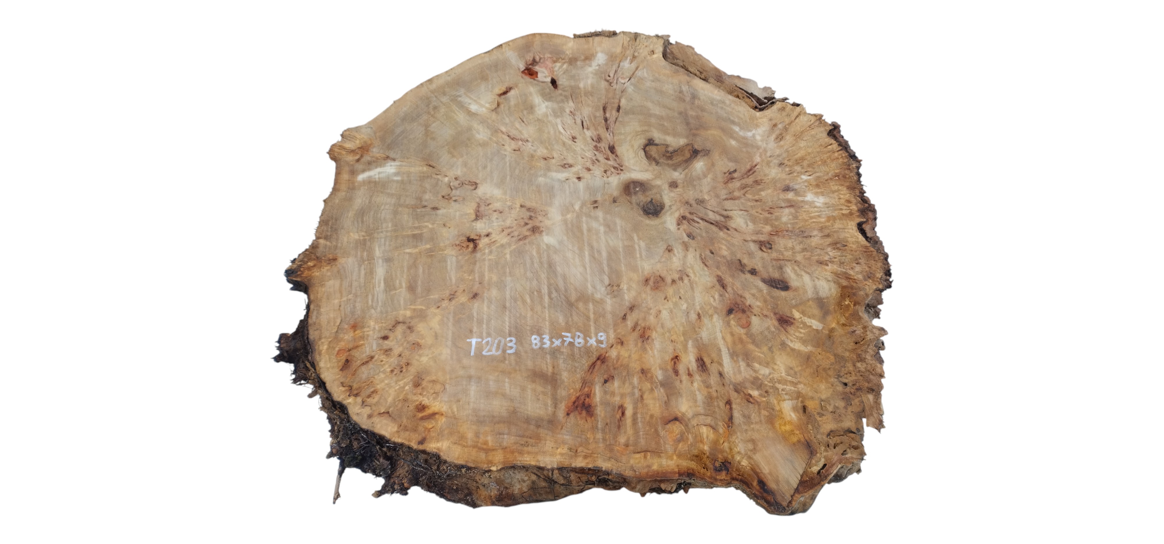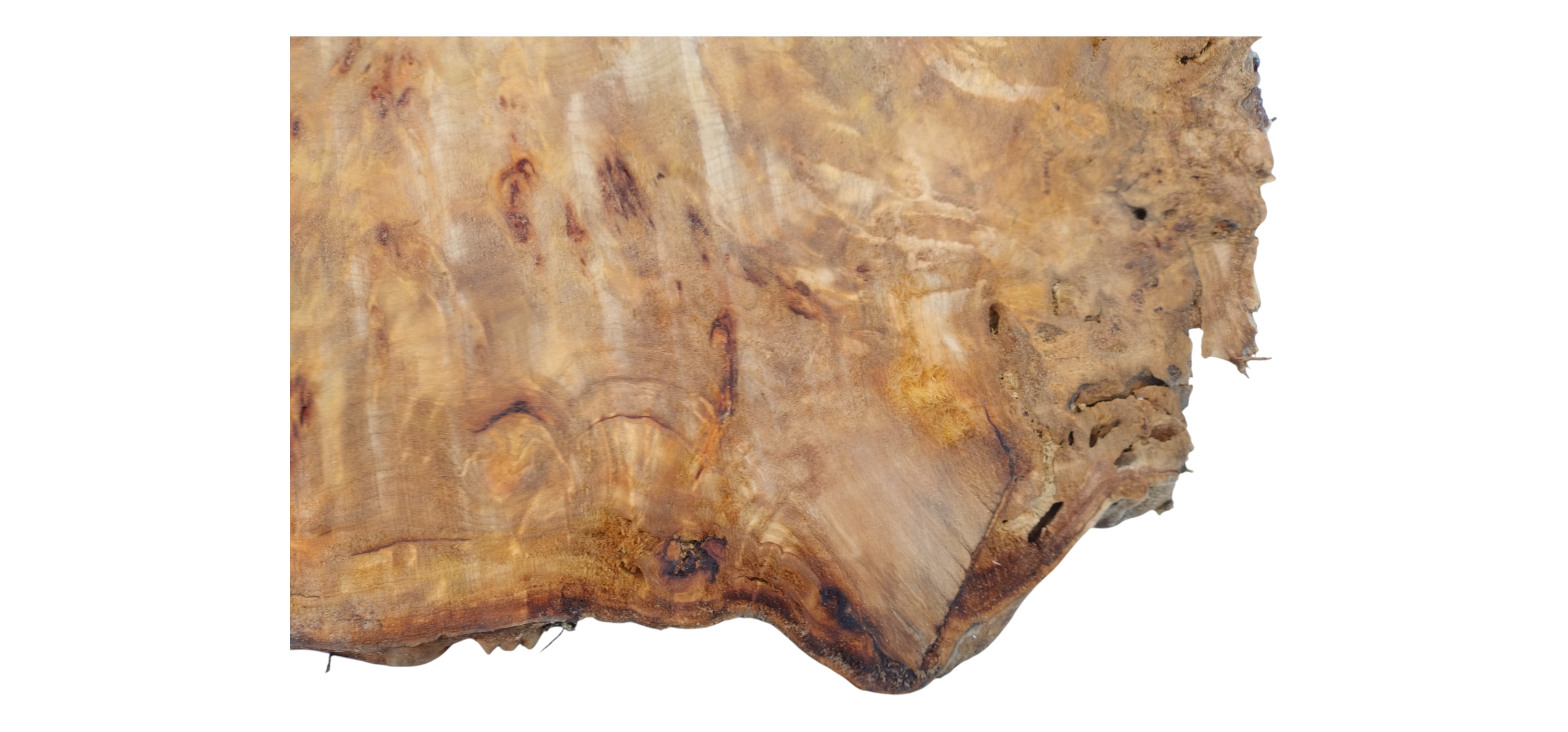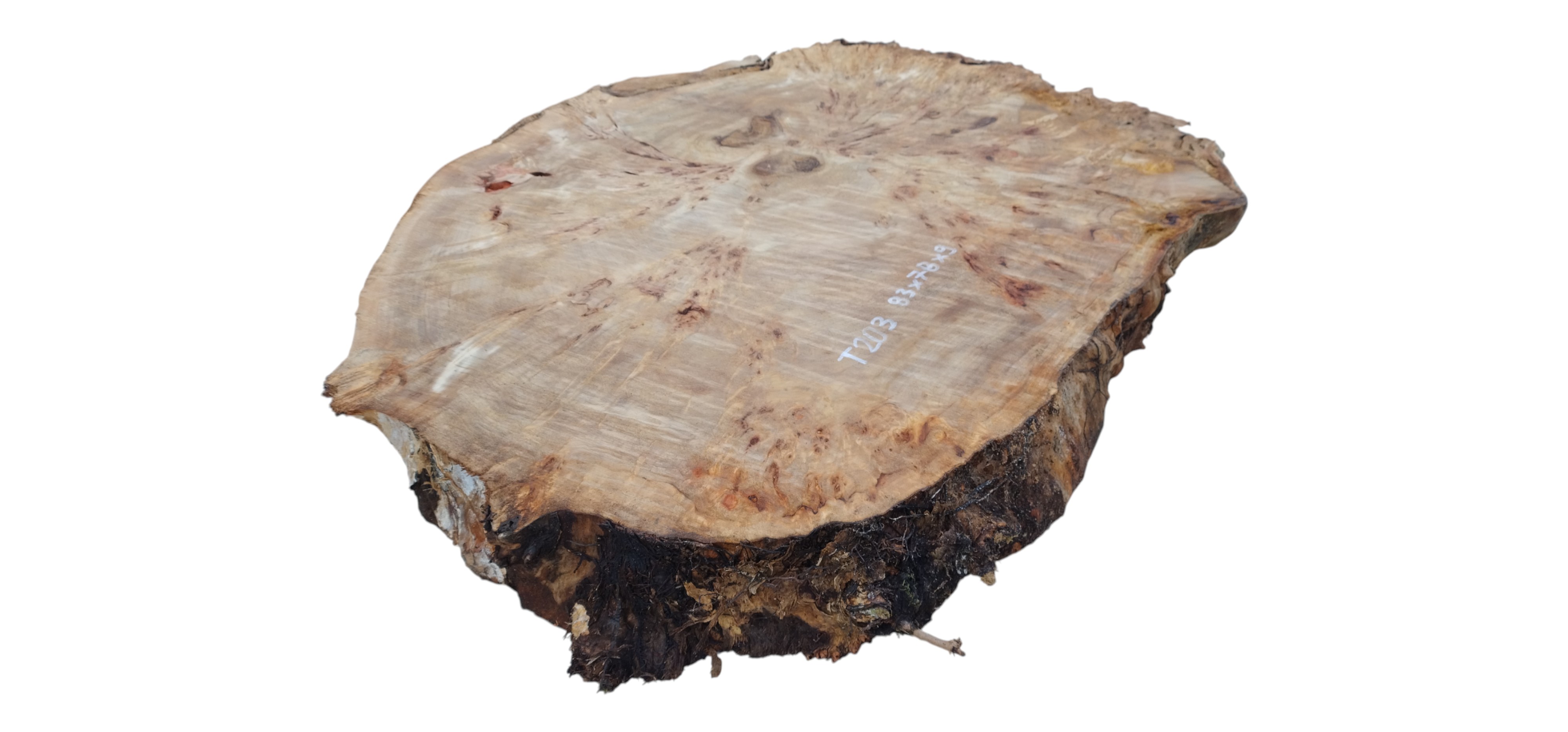 Zdjęcia robimy od razu po przecięciu, żeby jak najlepiej pokazać w jaki sposób można wyprowadzić plaster i podkreślić jego strukturę. W procesie suszenia naturalną rzeczą są pęknięcia materiału powstałe w skutek oddawania wilgoci oraz powierzchowna zmiana barwy. Zdjęcie nr 2 w galerii przedstawia stan plastra po wyciągnięciu z suszarni.