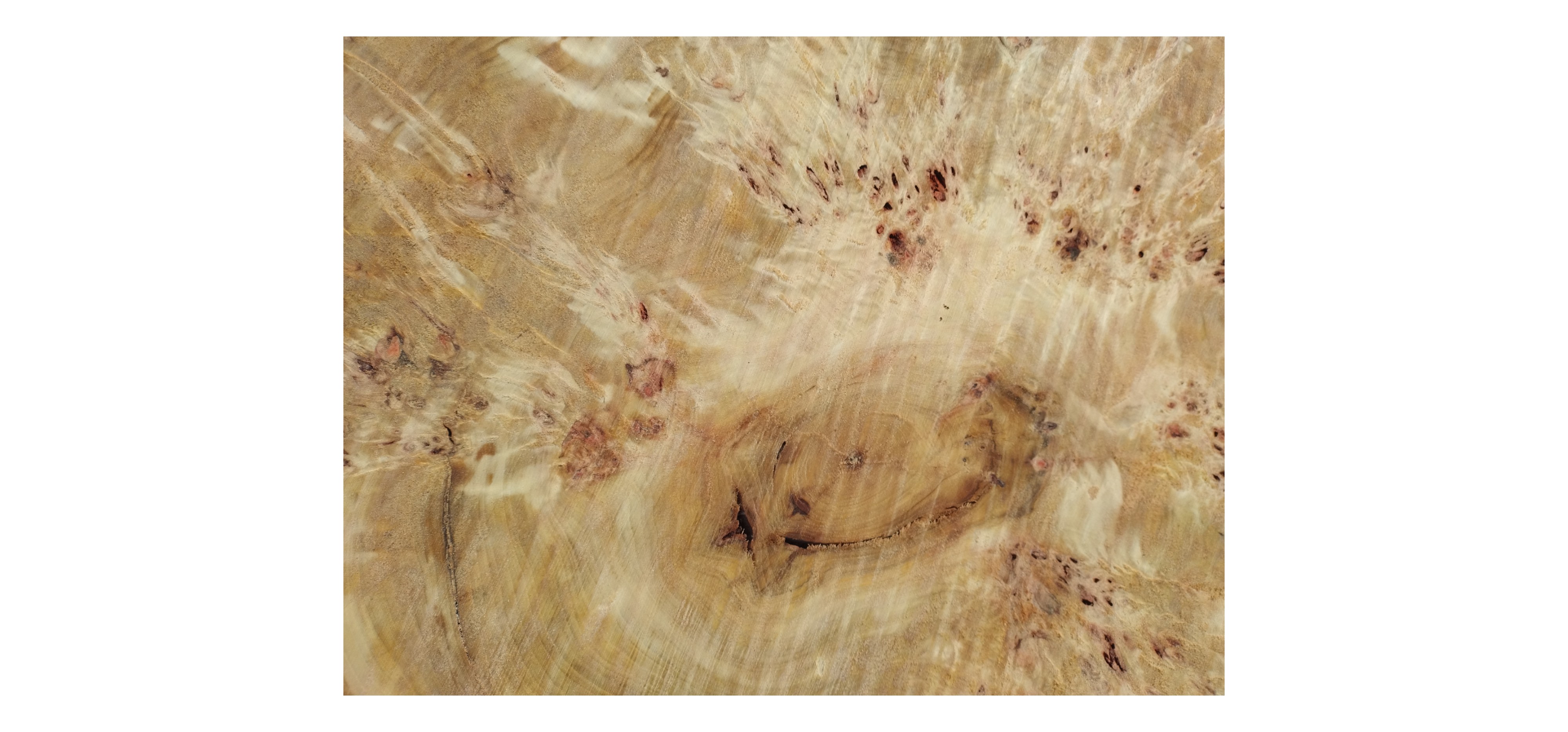 Zdjęcia robimy od razu po przecięciu, żeby jak najlepiej pokazać w jaki sposób można wyprowadzić plaster i podkreślić jego strukturę. W procesie suszenia naturalną rzeczą są pęknięcia materiału powstałe w skutek oddawania wilgoci oraz powierzchowna zmiana barwy. Zdjęcie nr 2 w galerii przedstawia stan plastra po wyciągnięciu z suszarni.